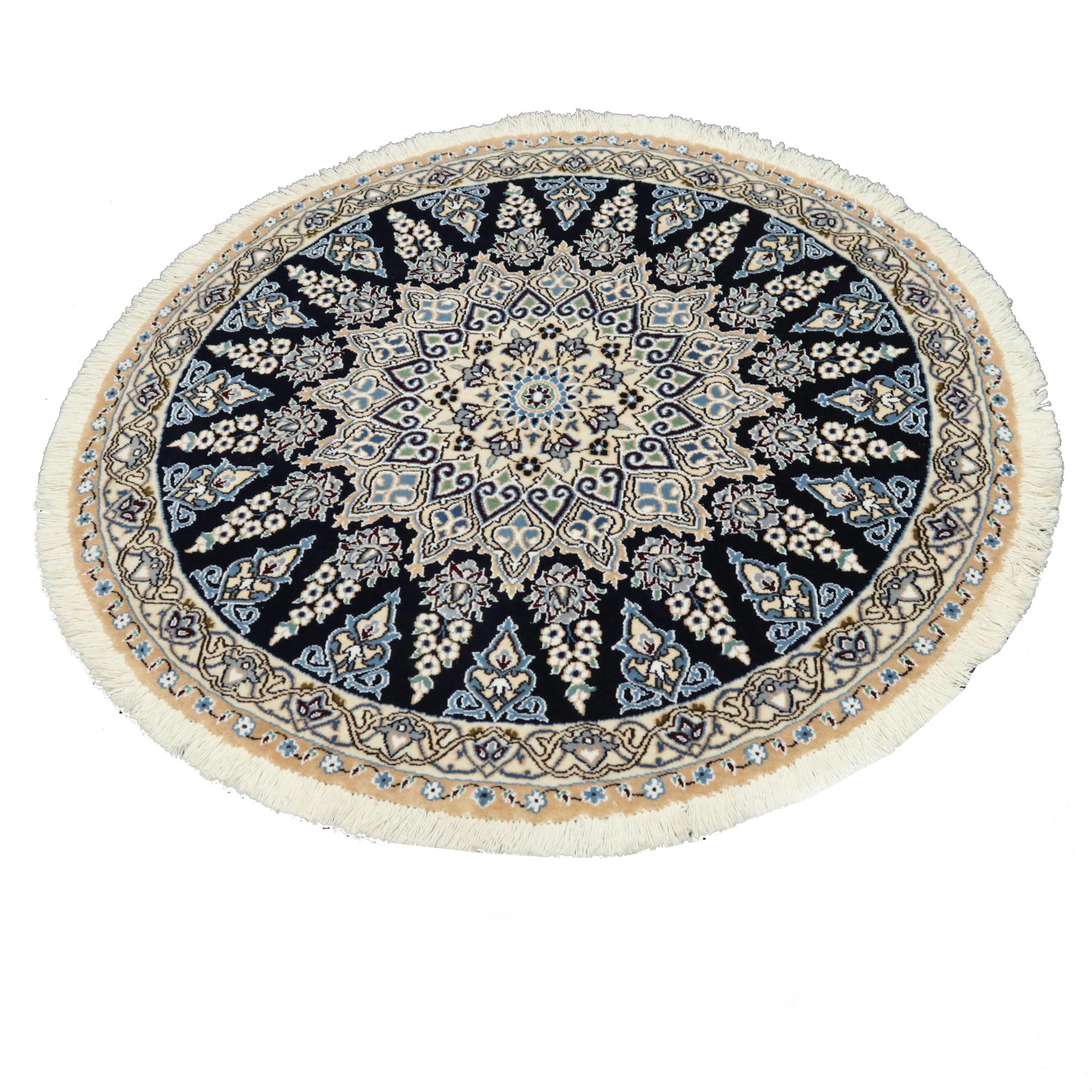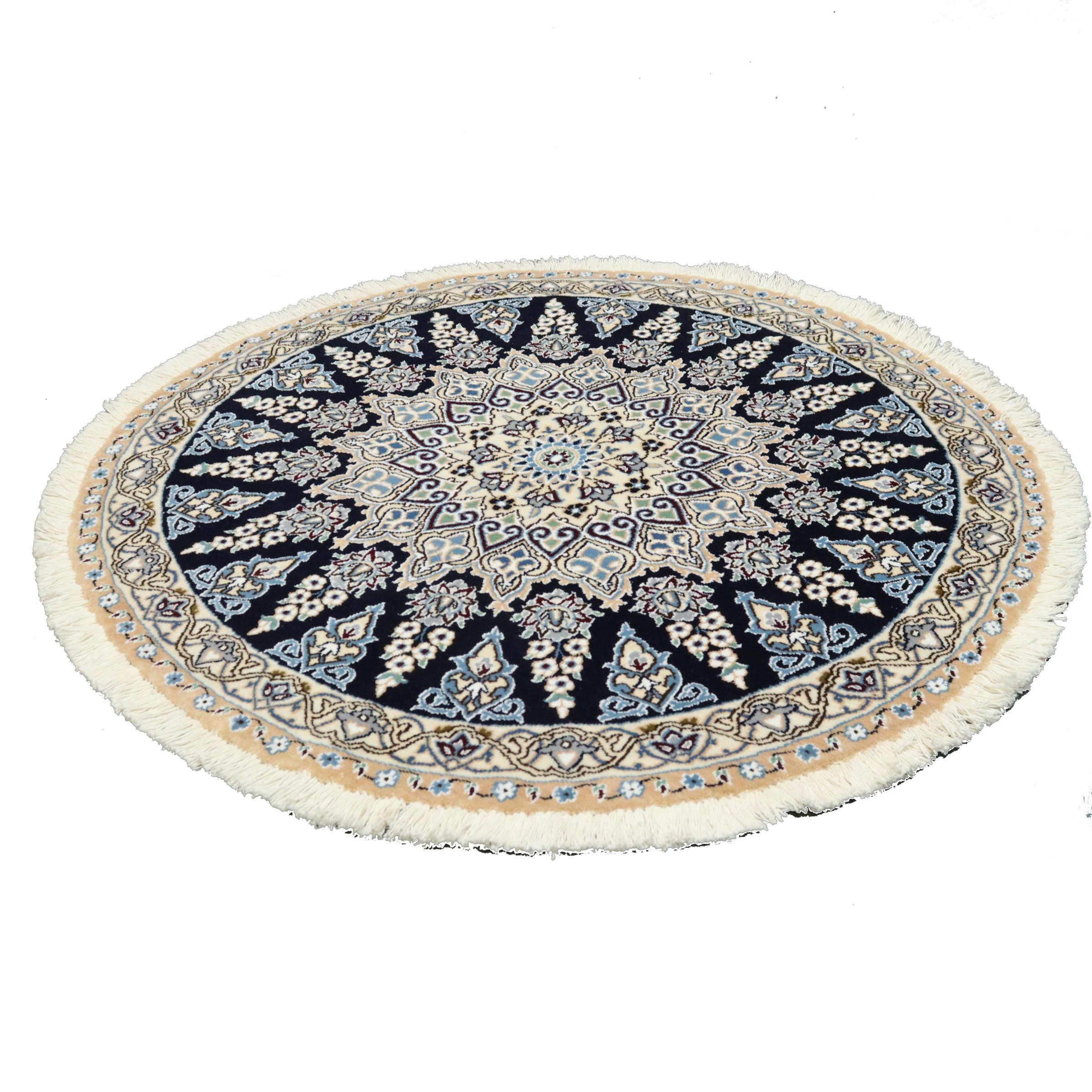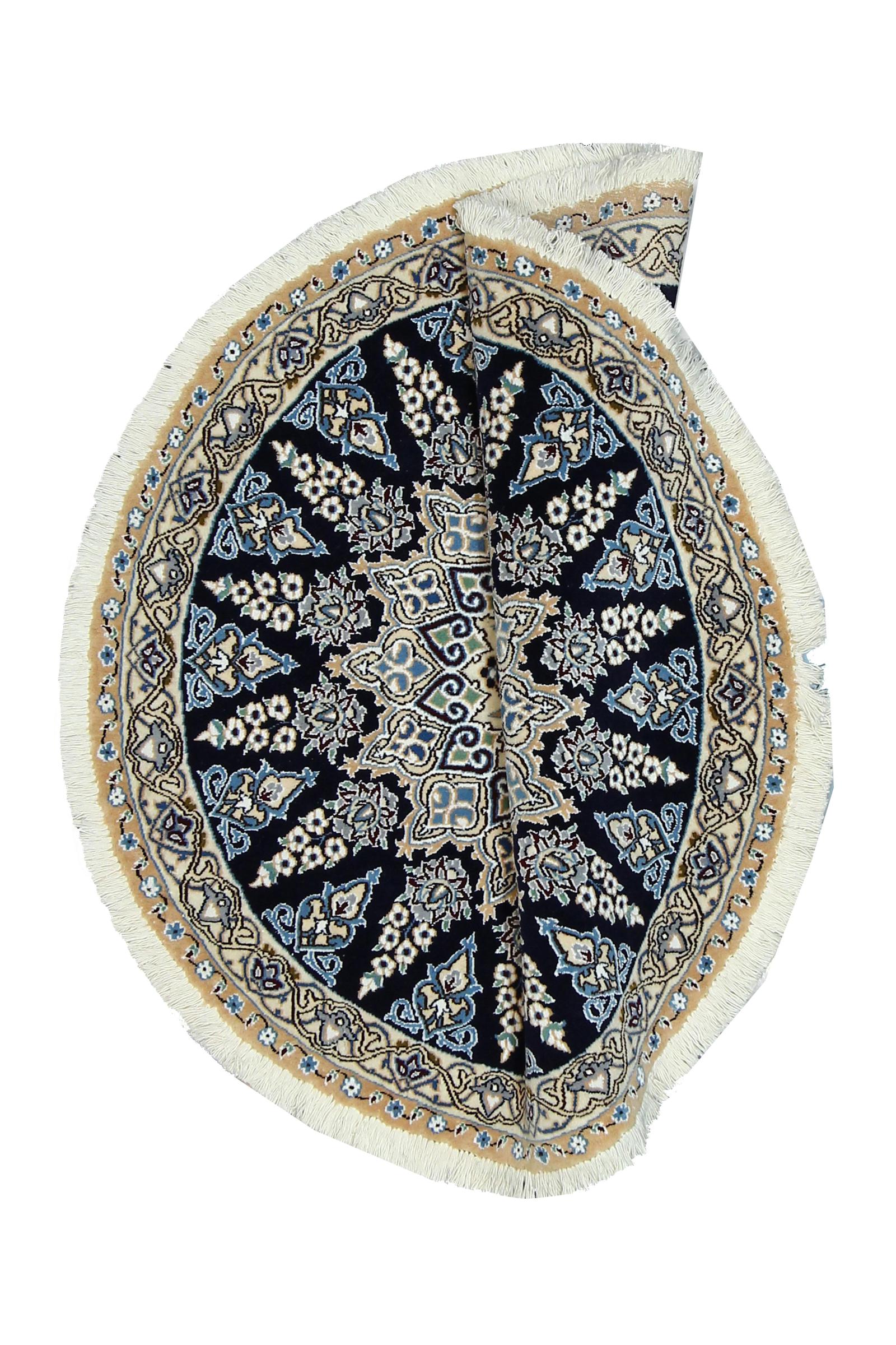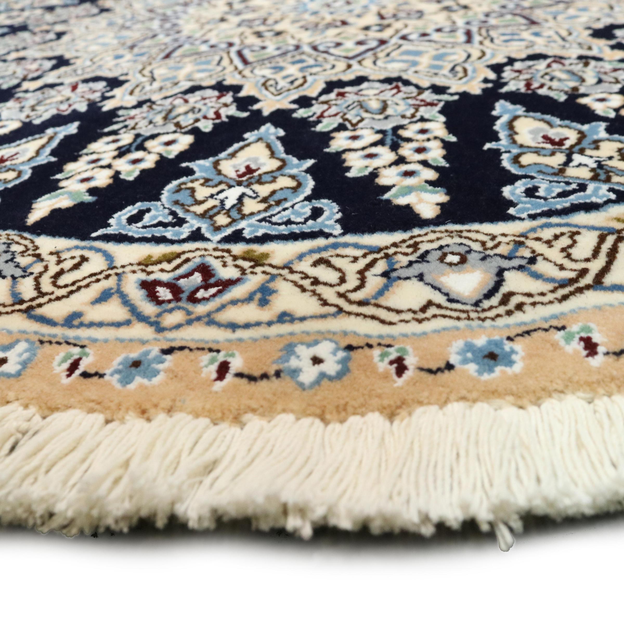 Les tapis de la ville de Nain, à la frontière de l'un des plus grands déserts d'Iran, comptent parmi les plus célèbres tapis persans du monde. Leur design typique est sans équivoque avec des ornements floraux, un médaillon central et des nuances de beige et de rouge ou de bleu. Grâce à leurs désignations 4La, 6La, 9La et 12La, les finesses d'un tapis Nain peuvent être vues d'un seul coup d'œil. Plus le chiffre "La" est bas, plus la densité des nœuds est élevée et donc plus le tapis est fin.