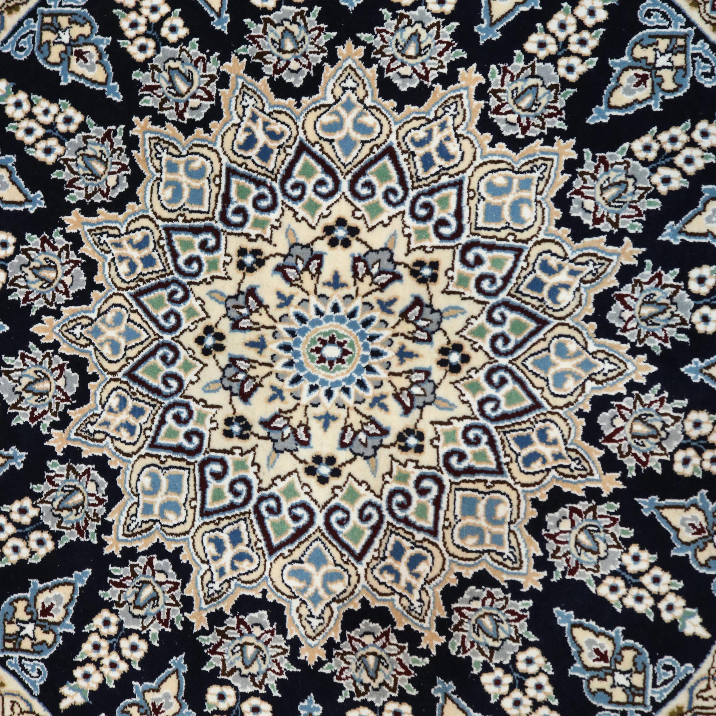 Réf. Article: 267391003865118 Taille: 111x113 cm Épaisseur: ap. 8 mm Densité de nouage: 360 000 - 400 000 / m² Fabrication: Noué à la main Velours: Laine avec de la soie Chaîne: Coton Origine: Persie / Iran Âge: Nouveau Poids: ap. 4 kg Nombre en stock: Unique - Seulement 1 en stock