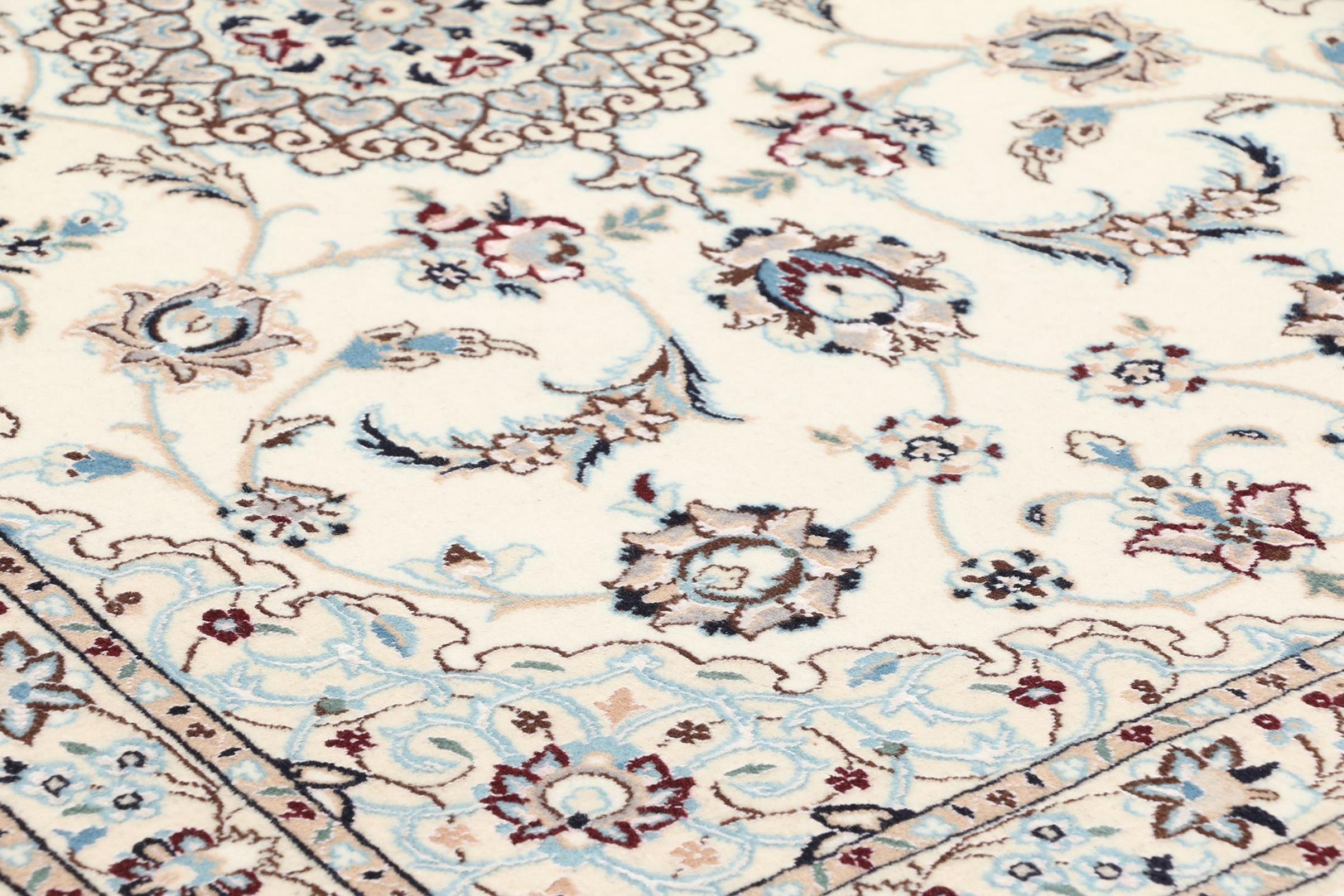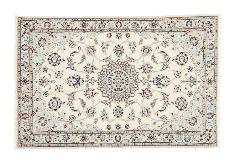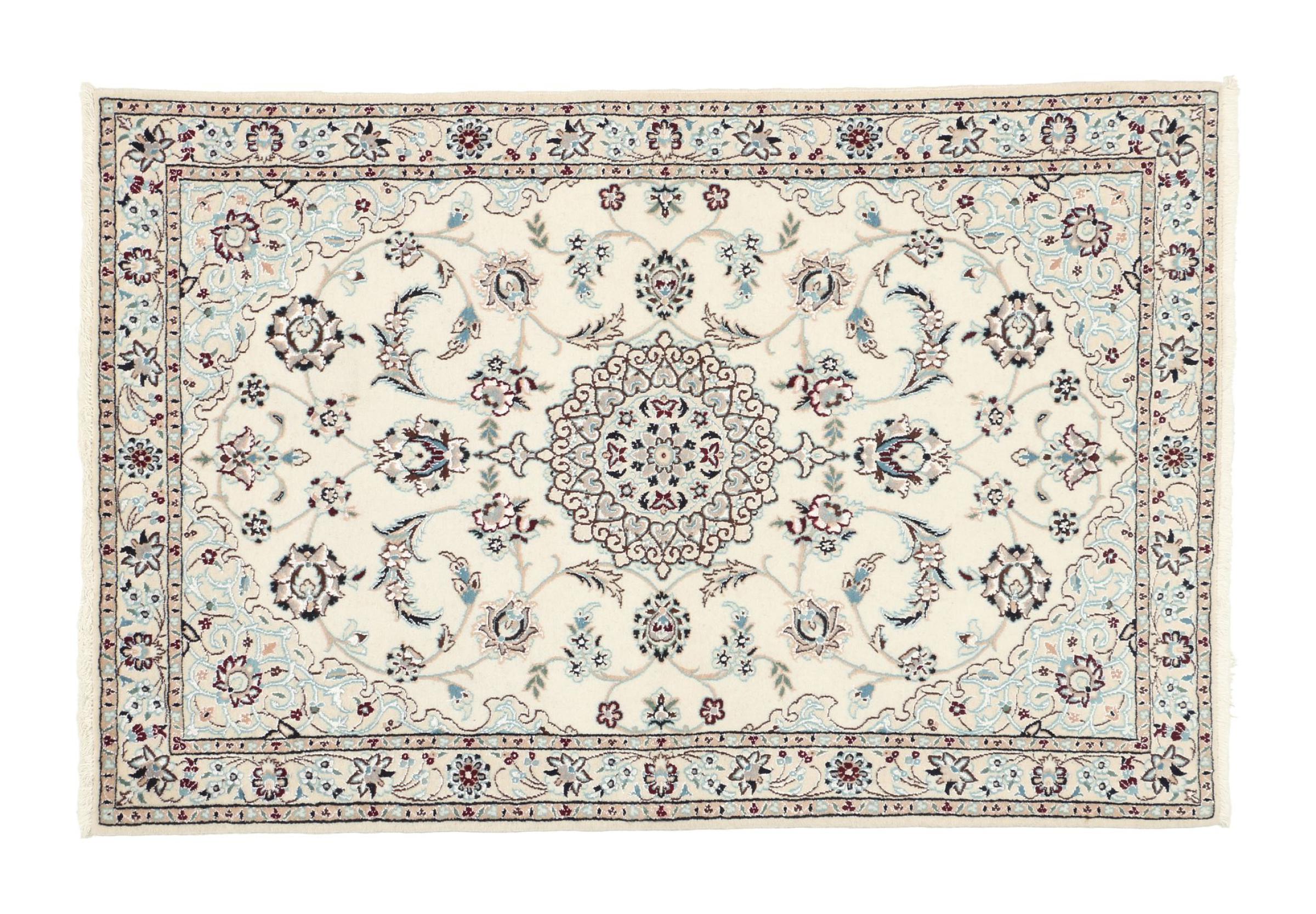 Les tapis de la ville de Nain, à la frontière de l'un des plus grands déserts d'Iran, comptent parmi les plus célèbres tapis persans du monde. Leur design typique est sans équivoque avec des ornements floraux, un médaillon central et des nuances de beige et de rouge ou de bleu. Grâce à leurs désignations 4La, 6La, 9La et 12La, les finesses d'un tapis Nain peuvent être vues d'un seul coup d'œil. Plus le chiffre "La" est bas, plus la densité des nœuds est élevée et donc plus le tapis est fin.