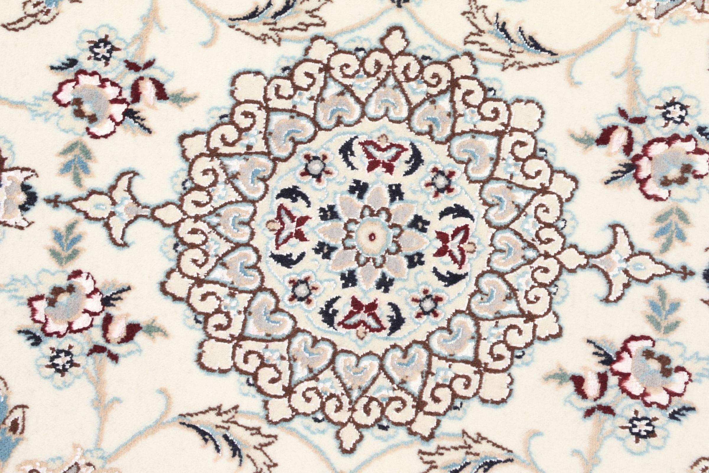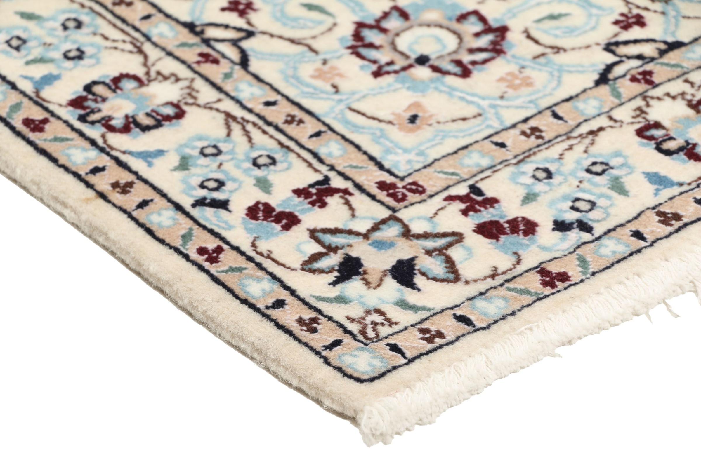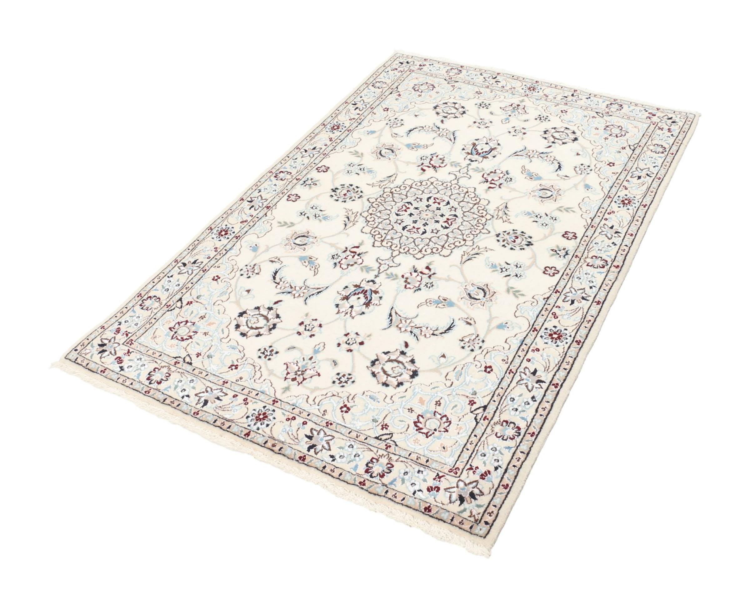 Les tapis de la ville de Nain, à la frontière de l'un des plus grands déserts d'Iran, comptent parmi les plus célèbres tapis persans du monde. Leur design typique est sans équivoque avec des ornements floraux, un médaillon central et des nuances de beige et de rouge ou de bleu. Grâce à leurs désignations 4La, 6La, 9La et 12La, les finesses d'un tapis Nain peuvent être vues d'un seul coup d'œil. Plus le chiffre "La" est bas, plus la densité des nœuds est élevée et donc plus le tapis est fin.