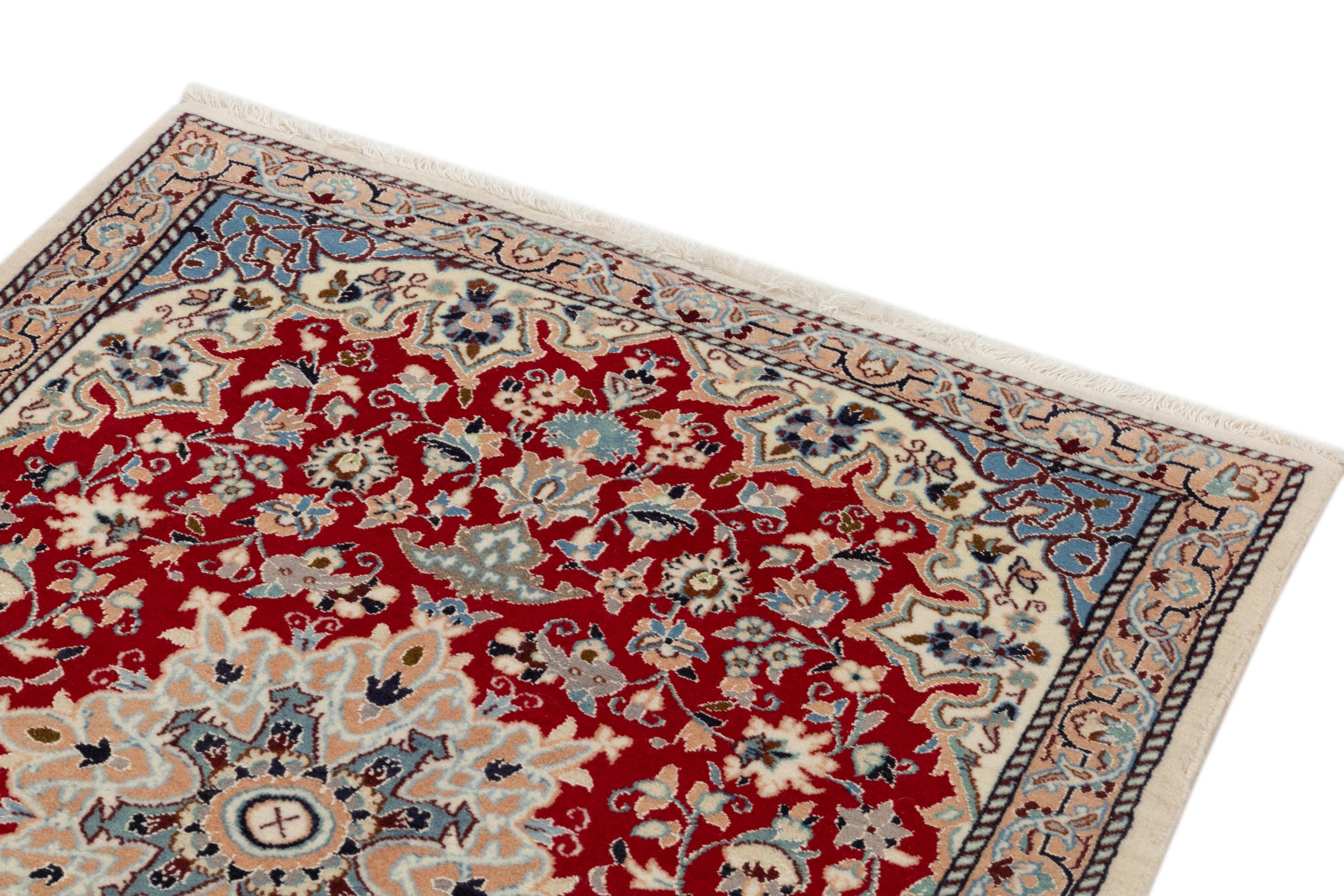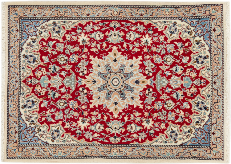Ce tapis vient d'Iran (anciennement Perse) et, en tant que tapis persan, il jouit probablement de la plus haute réputation parmi tous les types de tapis noués à la main. Aucune autre région n'a une aussi longue tradition de nouage de tapis que l'Iran. C'est donc ici que viennent les tapis probablement les plus fins et les plus élaborés. La robustesse, la durabilité et la qualité du nœud persan sont encore inégalées aujourd'hui. Les tapis persans sont généralement nommés d'après leur région d'origine. Ainsi, un tapis Nain, un Ghom ainsi qu'un tapis d'Ispahan proviennent de la ville du même nom en Iran.