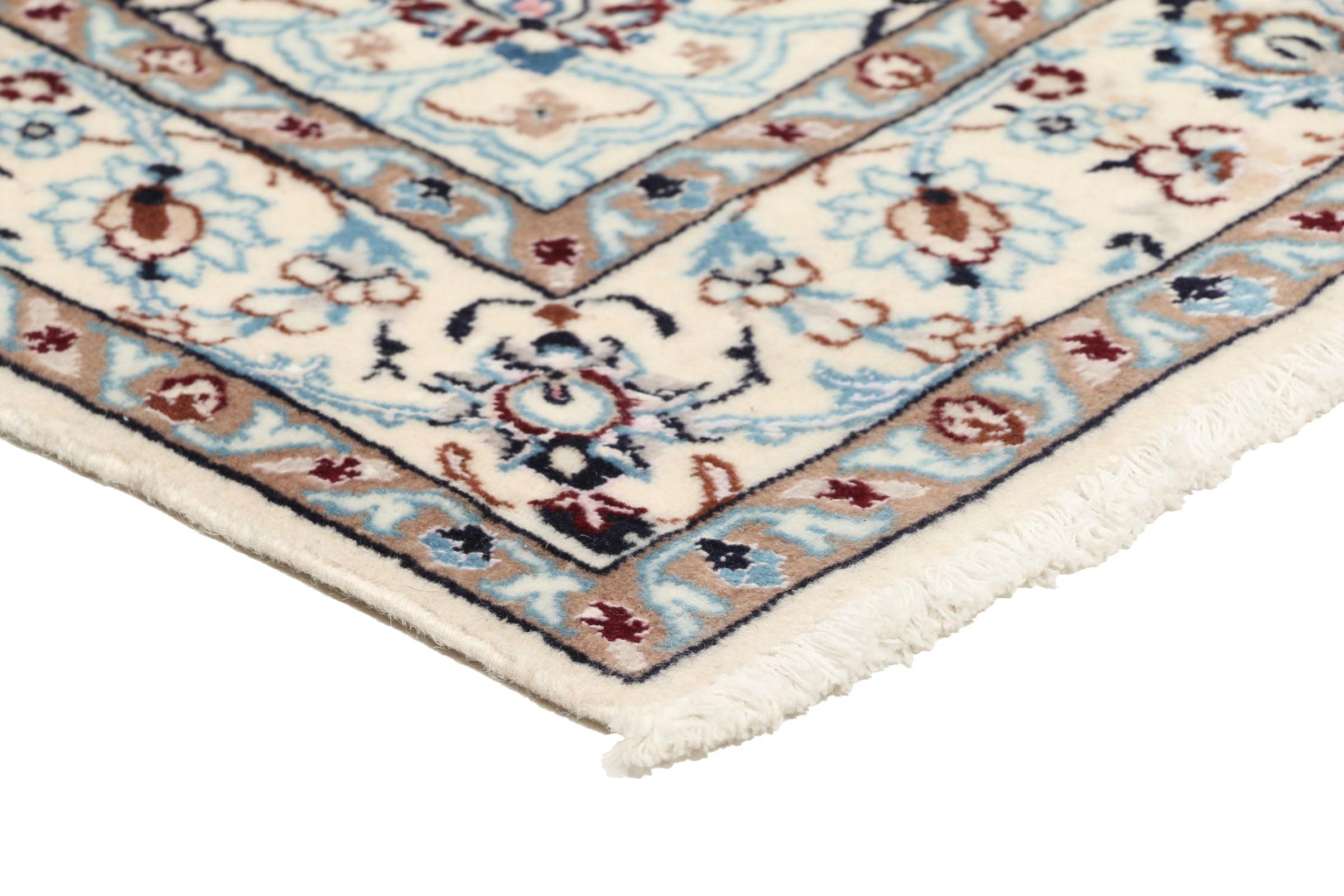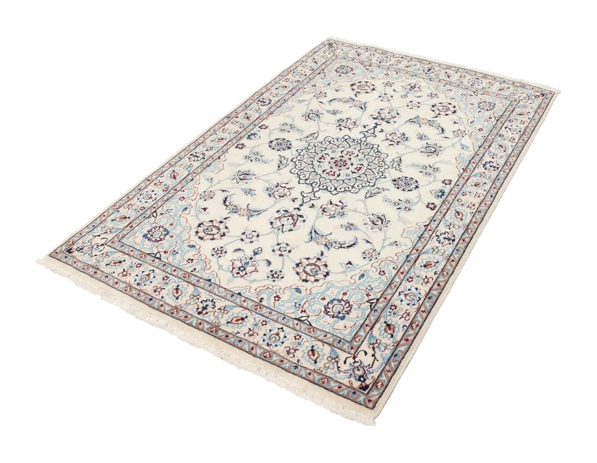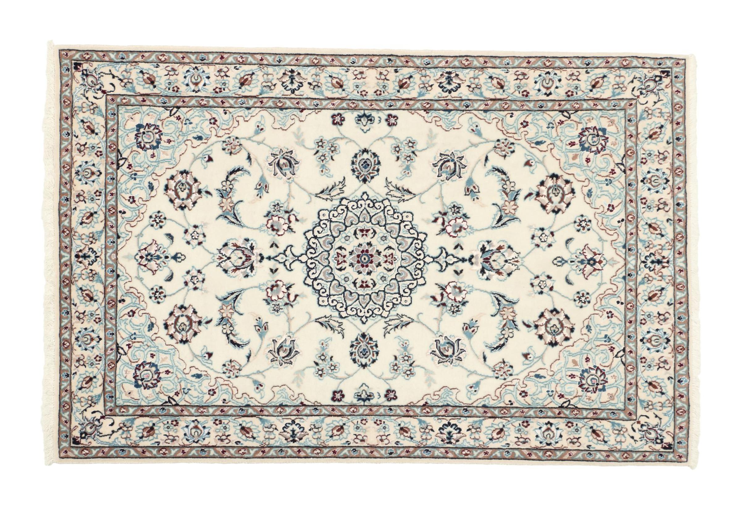 Les tapis de la ville de Nain, à la frontière de l'un des plus grands déserts d'Iran, comptent parmi les plus célèbres tapis persans du monde. Leur design typique est sans équivoque avec des ornements floraux, un médaillon central et des nuances de beige et de rouge ou de bleu. Grâce à leurs désignations 4La, 6La, 9La et 12La, les finesses d'un tapis Nain peuvent être vues d'un seul coup d'œil. Plus le chiffre "La" est bas, plus la densité des nœuds est élevée et donc plus le tapis est fin.