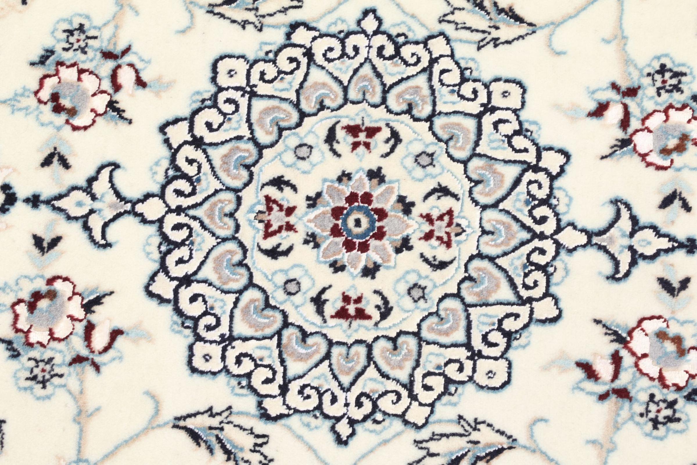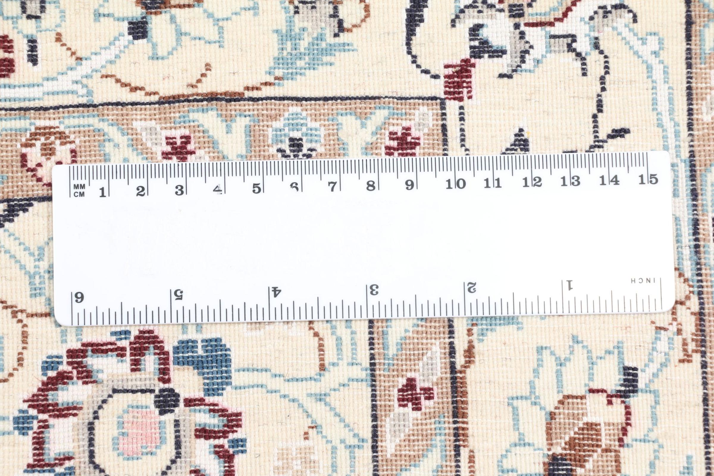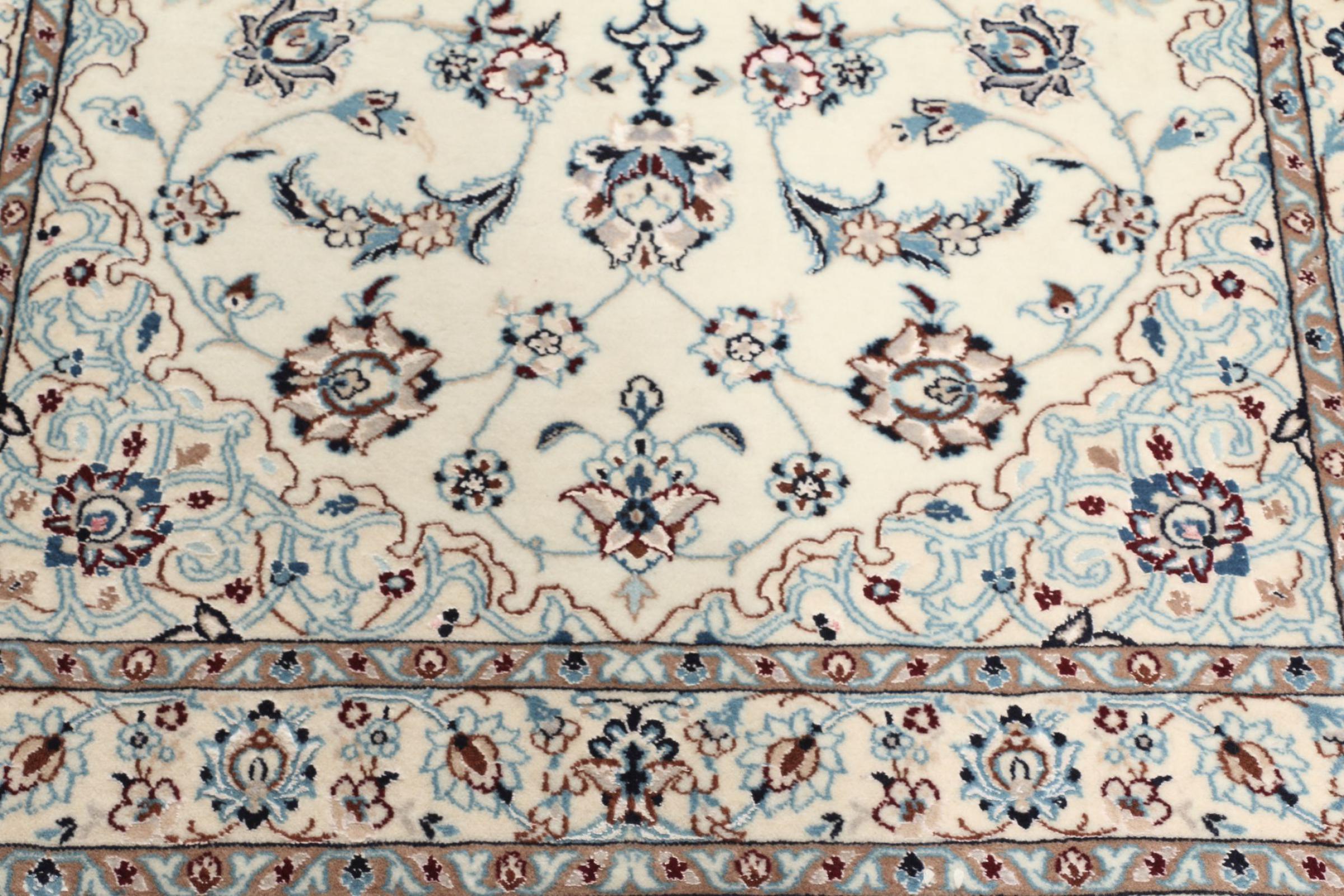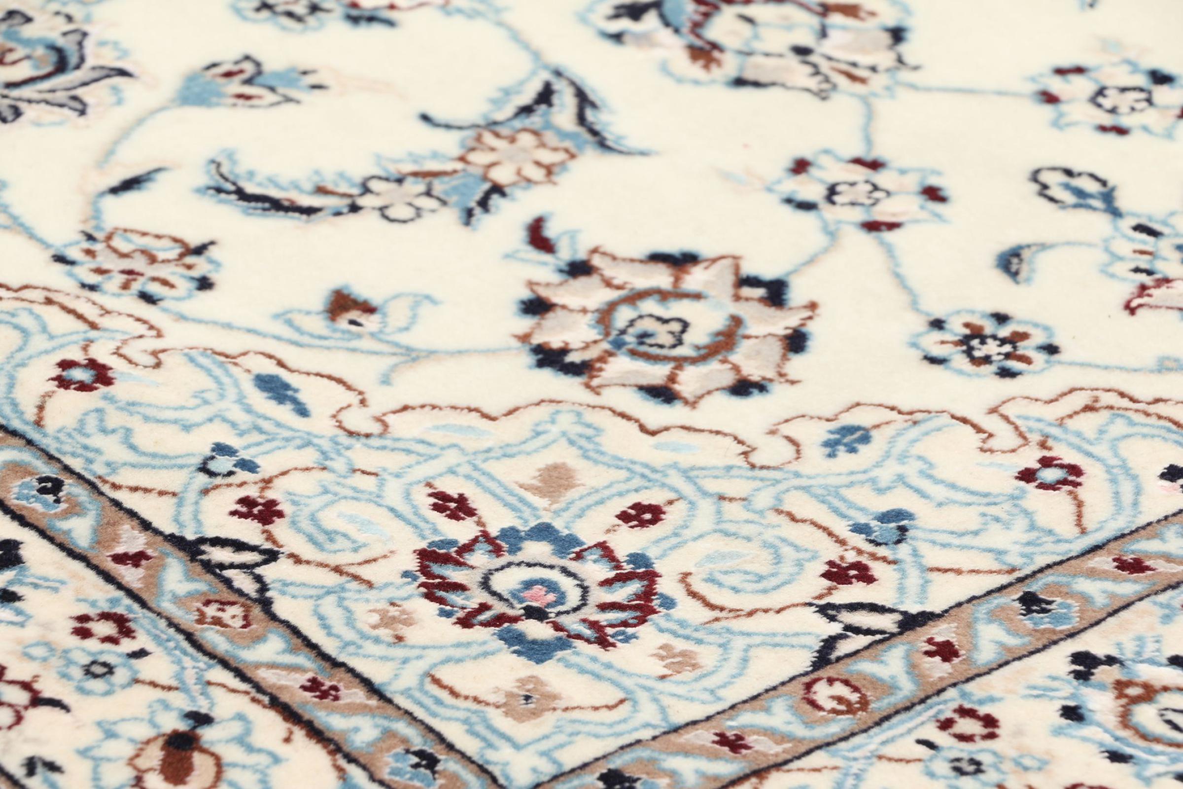 Les tapis de la ville de Nain, à la frontière de l'un des plus grands déserts d'Iran, comptent parmi les plus célèbres tapis persans du monde. Leur design typique est sans équivoque avec des ornements floraux, un médaillon central et des nuances de beige et de rouge ou de bleu. Grâce à leurs désignations 4La, 6La, 9La et 12La, les finesses d'un tapis Nain peuvent être vues d'un seul coup d'œil. Plus le chiffre "La" est bas, plus la densité des nœuds est élevée et donc plus le tapis est fin.
