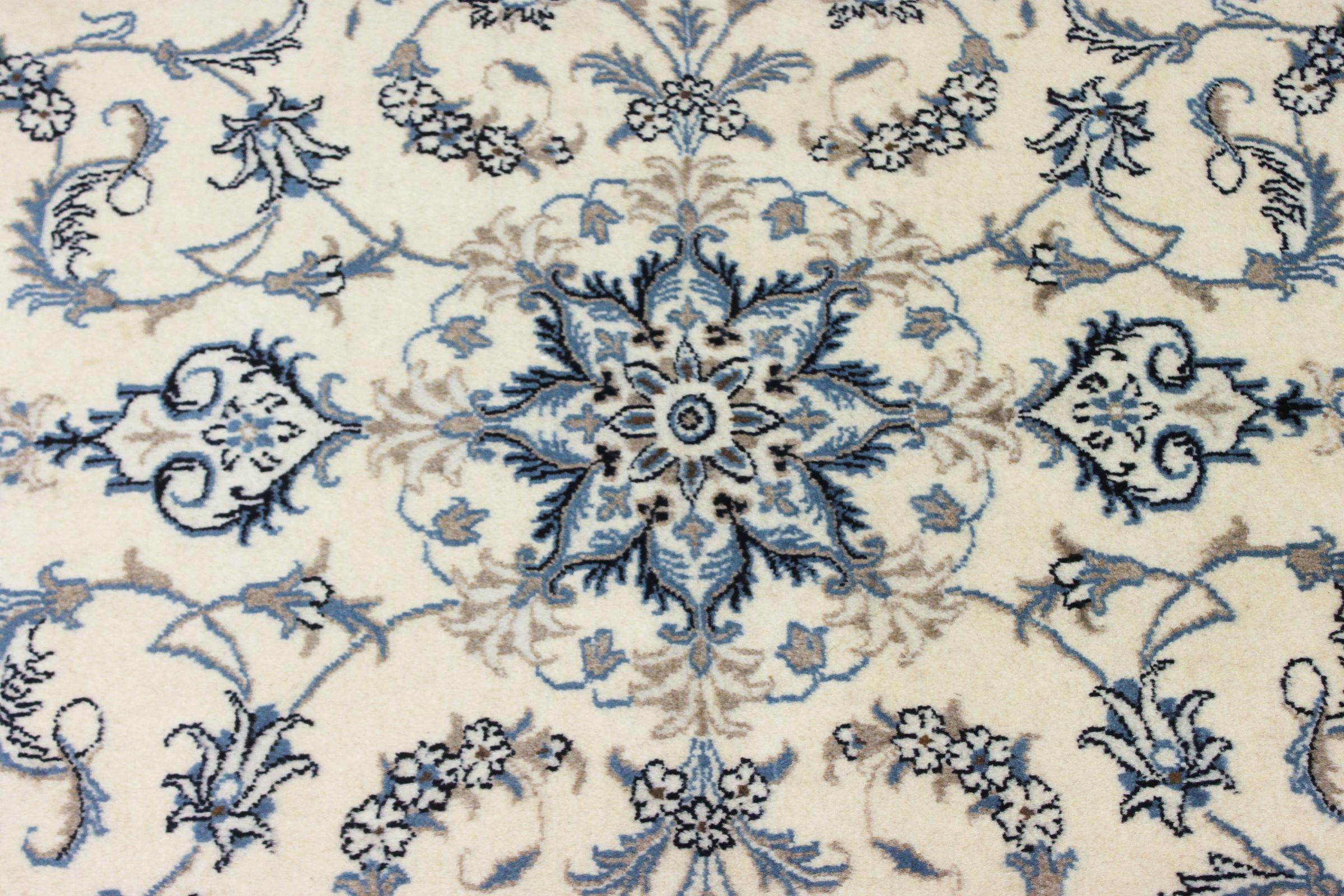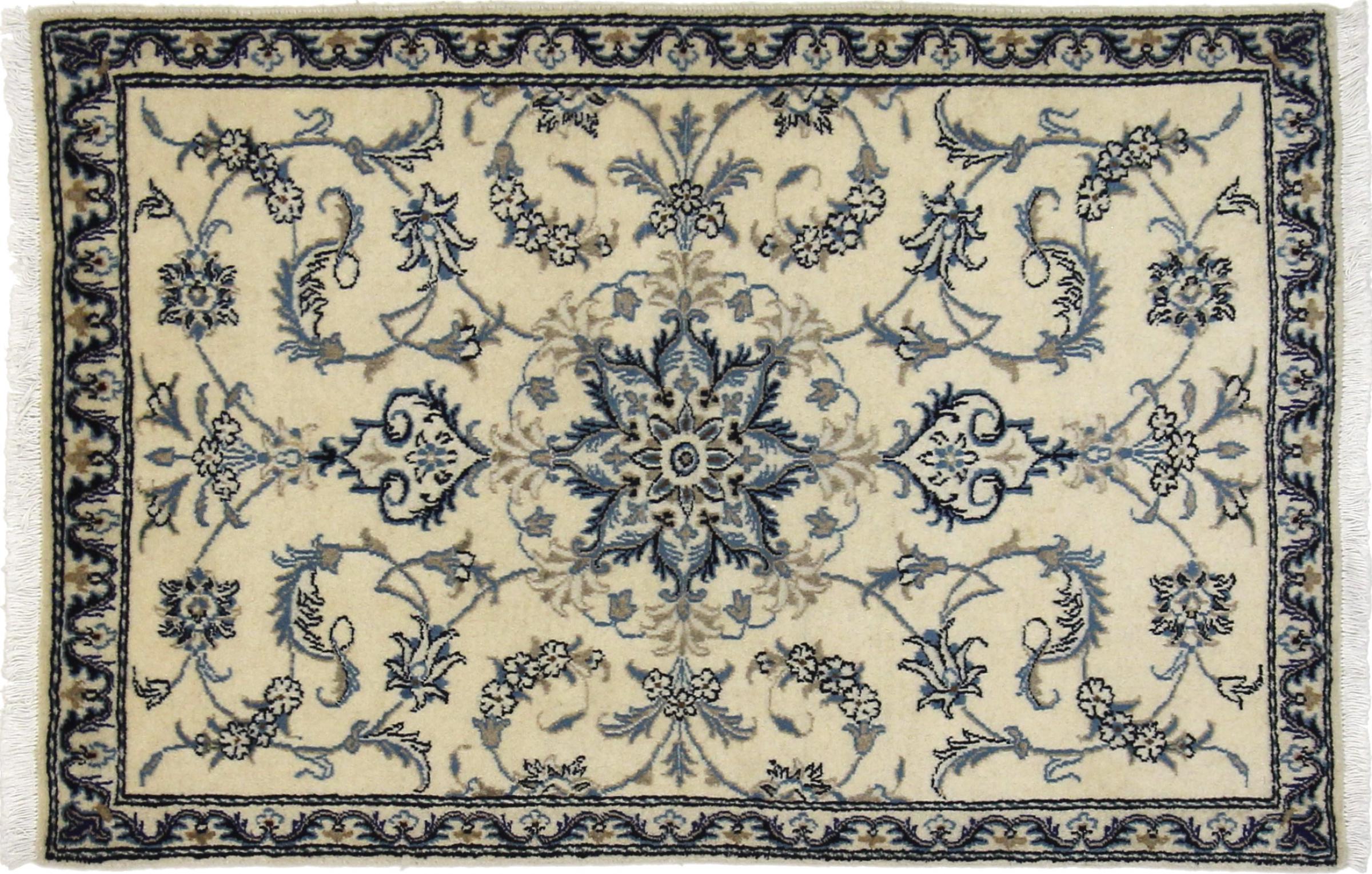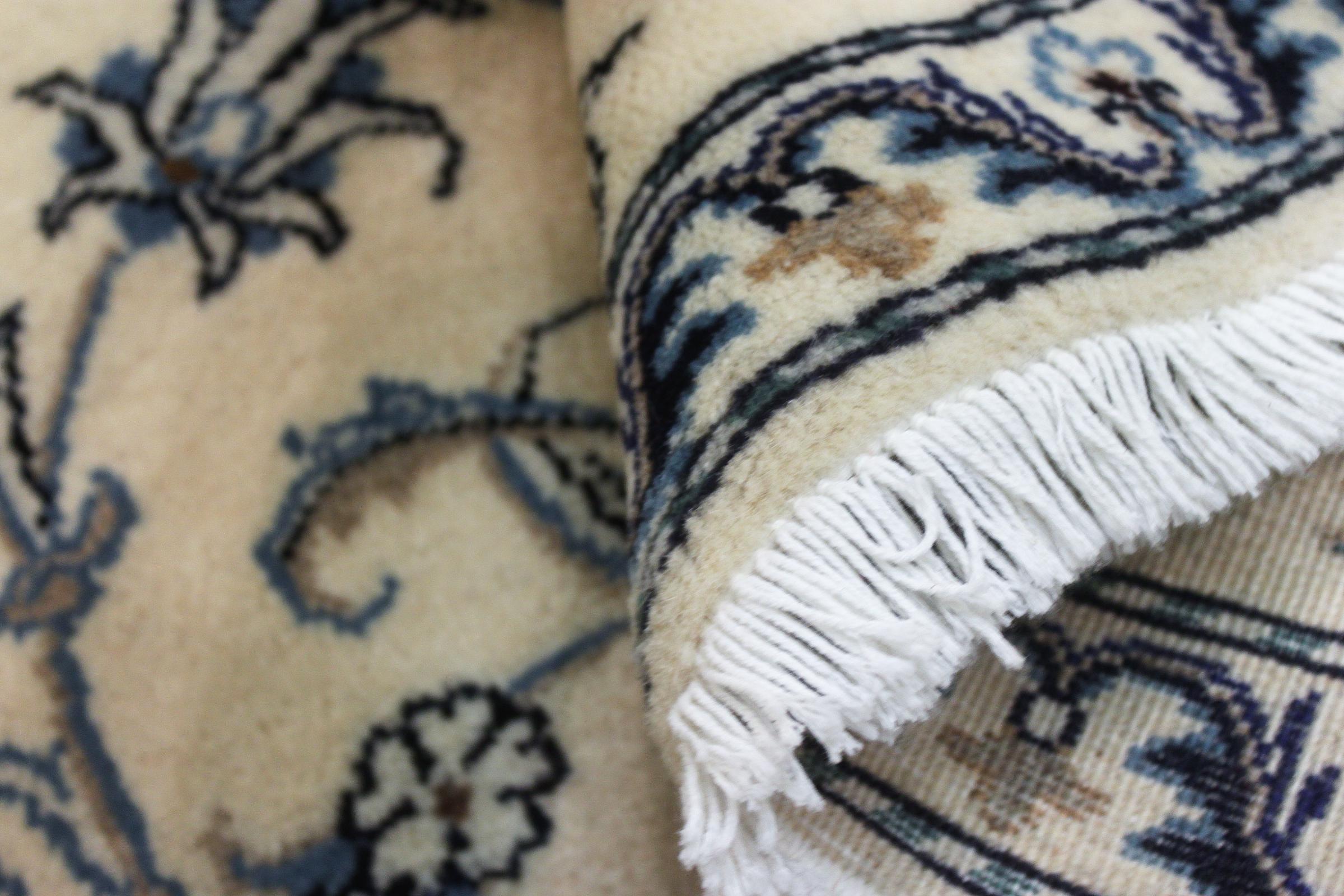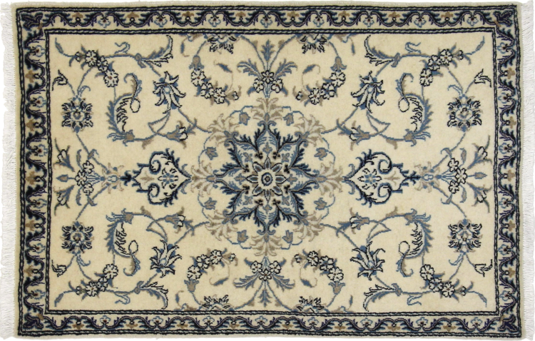 Les tapis de la ville de Nain, à la frontière de l'un des plus grands déserts d'Iran, comptent parmi les plus célèbres tapis persans du monde. Leur design typique est sans équivoque avec des ornements floraux, un médaillon central et des nuances de beige et de rouge ou de bleu. Grâce à leurs désignations 4La, 6La, 9La et 12La, les finesses d'un tapis Nain peuvent être vues d'un seul coup d'œil. Plus le chiffre "La" est bas, plus la densité des nœuds est élevée et donc plus le tapis est fin.