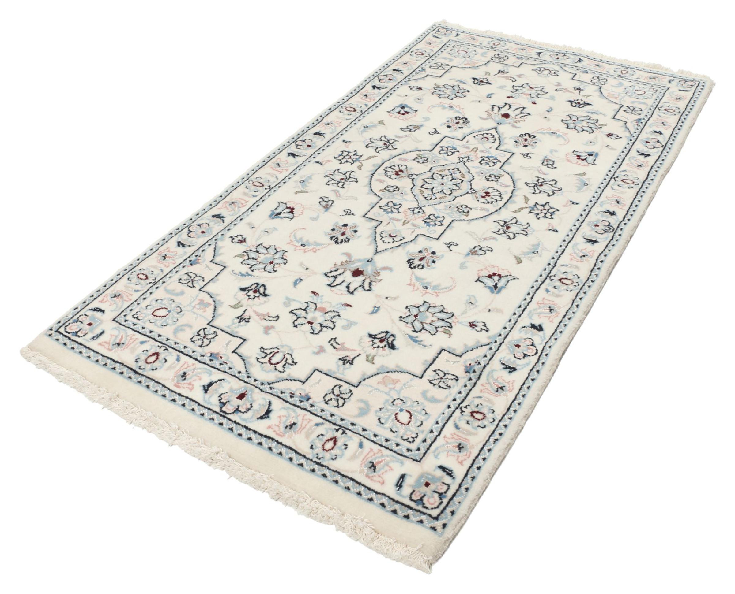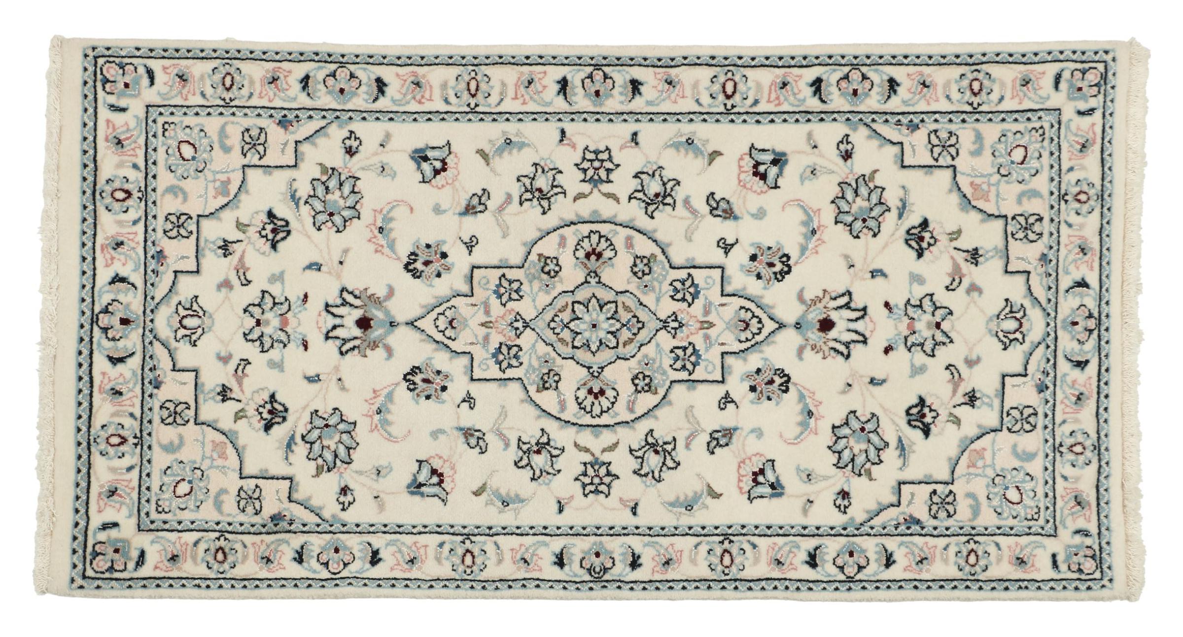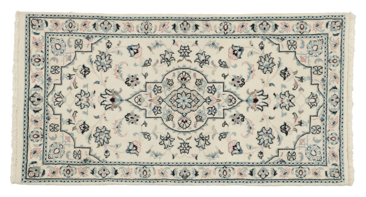 Les tapis de la ville de Nain, à la frontière de l'un des plus grands déserts d'Iran, comptent parmi les plus célèbres tapis persans du monde. Leur design typique est sans équivoque avec des ornements floraux, un médaillon central et des nuances de beige et de rouge ou de bleu. Grâce à leurs désignations 4La, 6La, 9La et 12La, les finesses d'un tapis Nain peuvent être vues d'un seul coup d'œil. Plus le chiffre "La" est bas, plus la densité des nœuds est élevée et donc plus le tapis est fin.