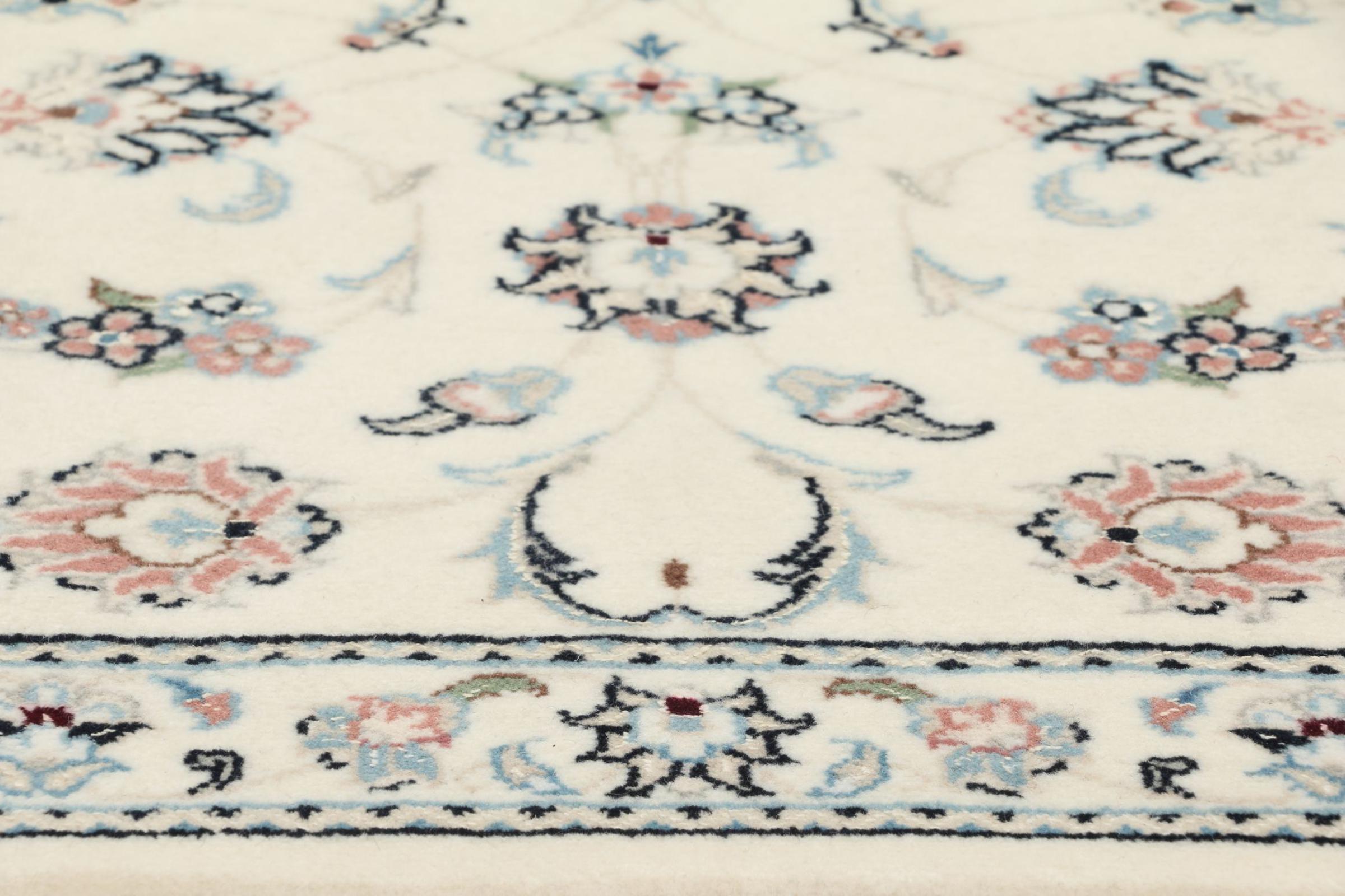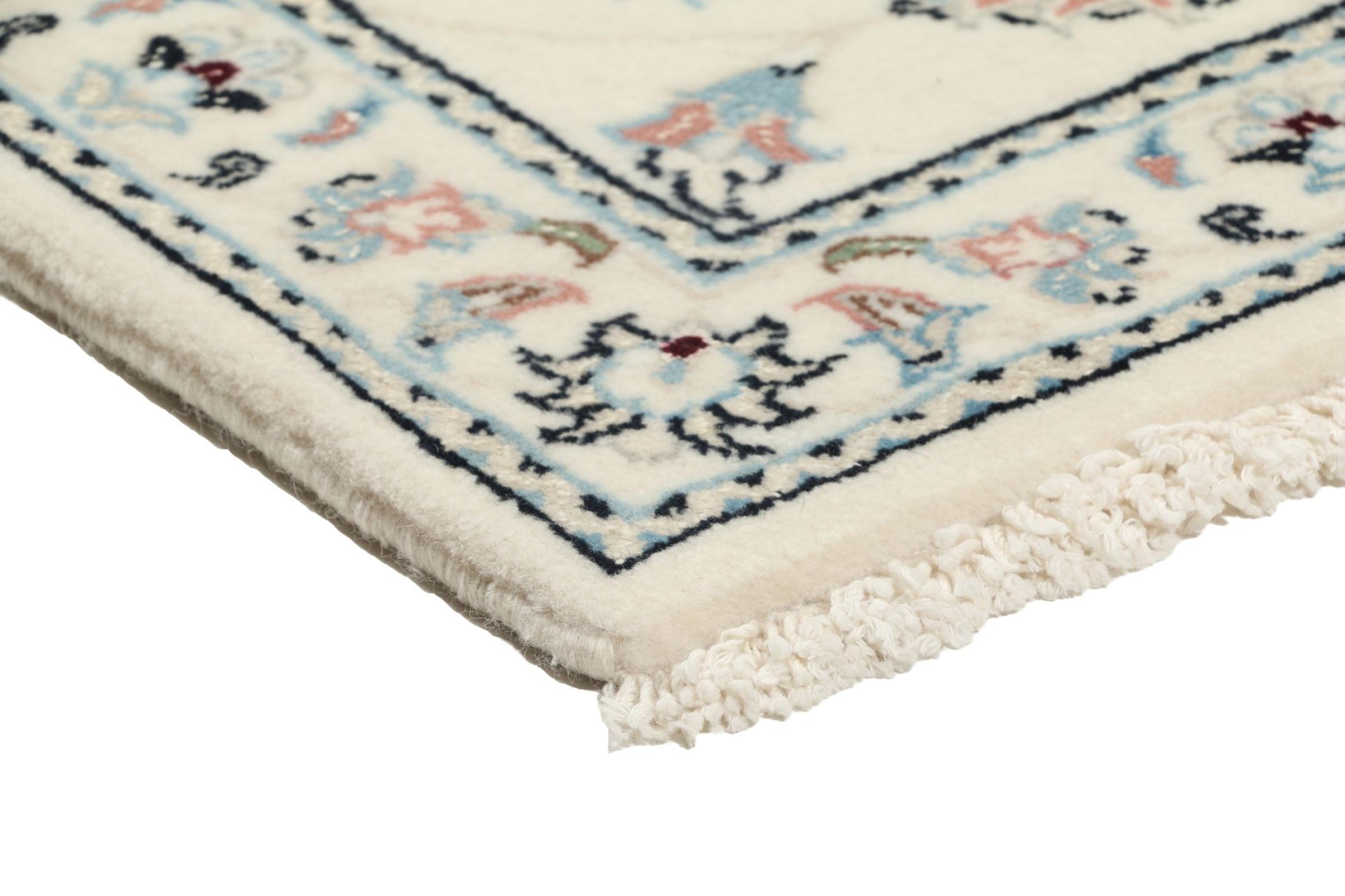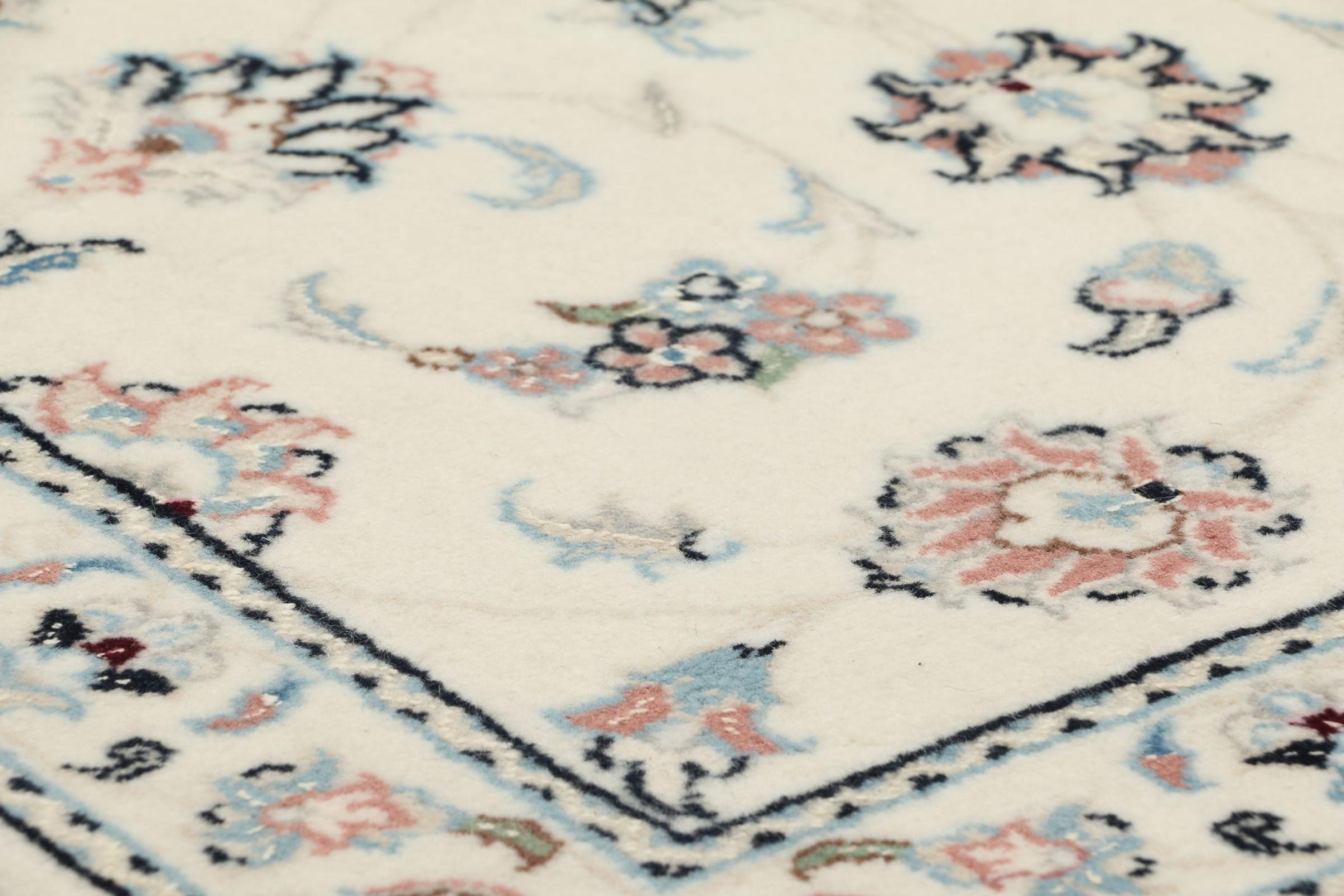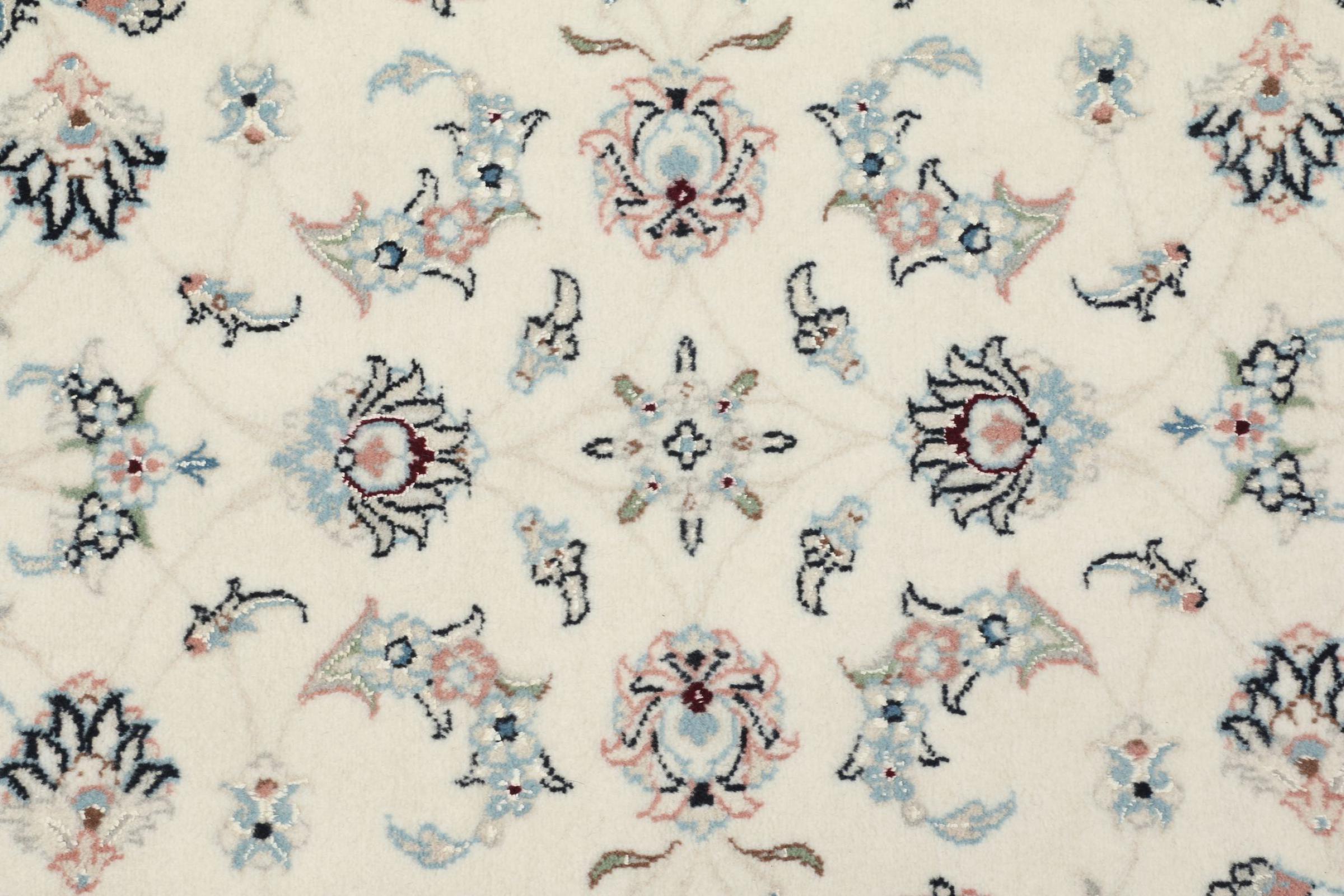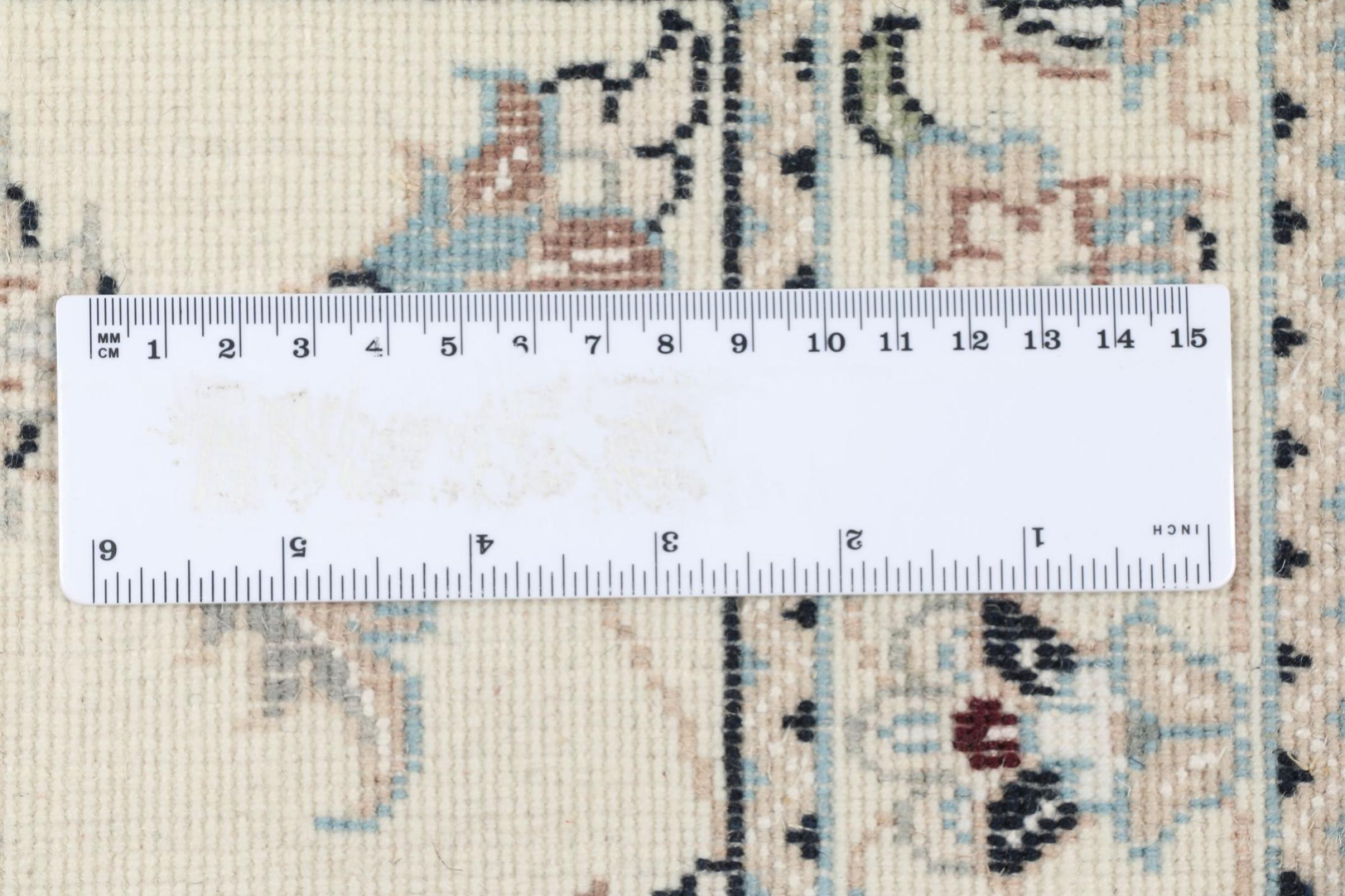 Ce tapis Nain est classifié 9La. La bonne qualité et le splendide design oriental avec ses motifs curvilignes inspirent chacun d’entre nous. Ce tapis persan était noué a la main avec de la laine précieuse et de la soie naturelle à Nain, une ville située à l’extrémité ouest du désert Dasht-e-Kavir.