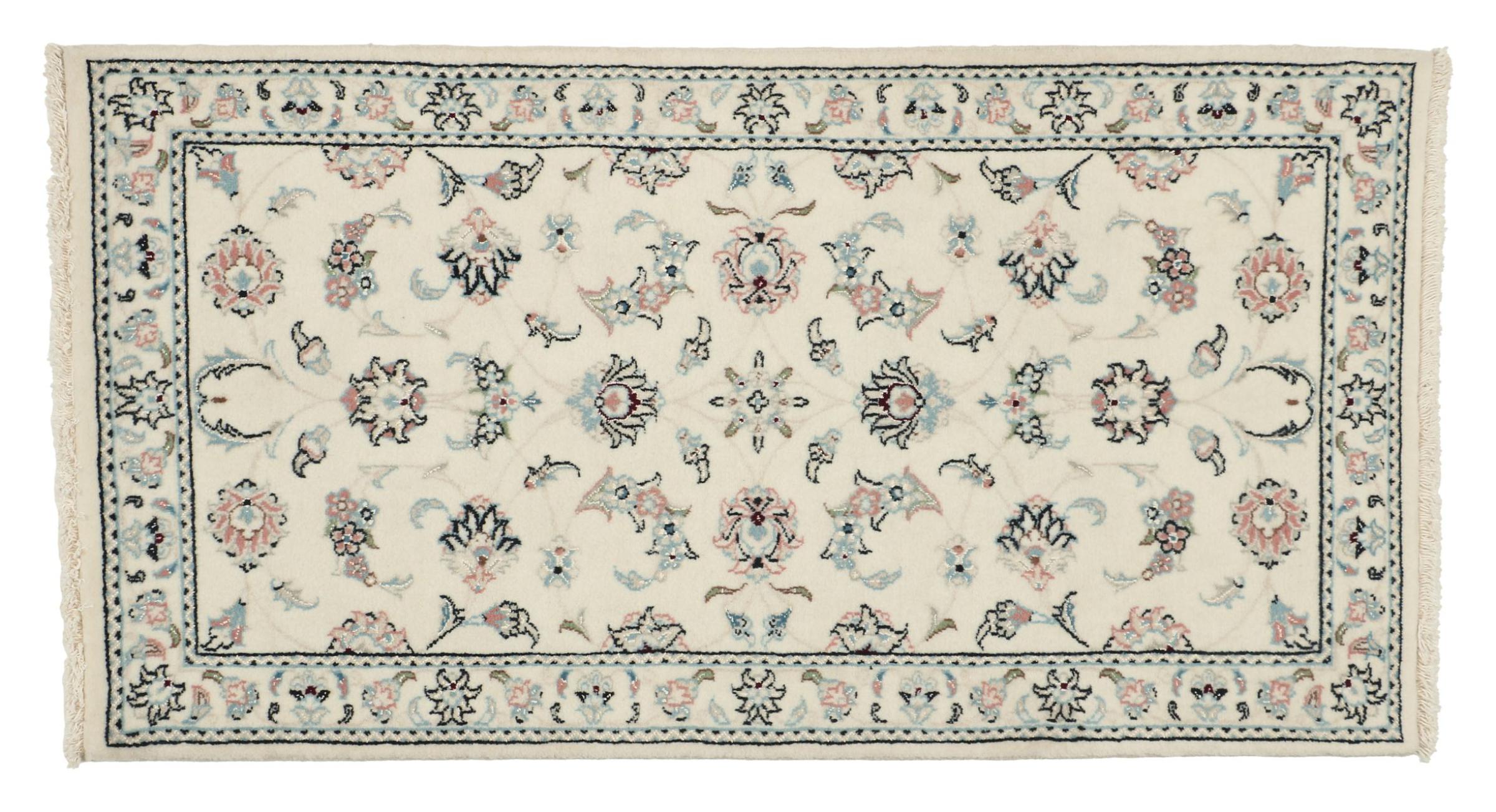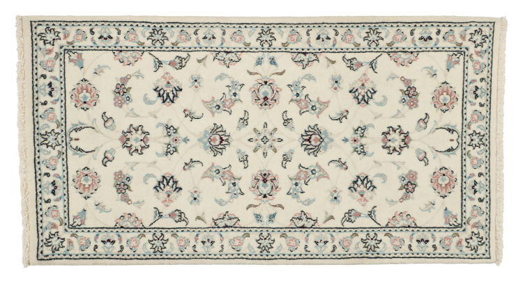 Les tapis de la ville de Nain, à la frontière de l'un des plus grands déserts d'Iran, comptent parmi les plus célèbres tapis persans du monde. Leur design typique est sans équivoque avec des ornements floraux, un médaillon central et des nuances de beige et de rouge ou de bleu. Grâce à leurs désignations 4La, 6La, 9La et 12La, les finesses d'un tapis Nain peuvent être vues d'un seul coup d'œil. Plus le chiffre "La" est bas, plus la densité des nœuds est élevée et donc plus le tapis est fin.