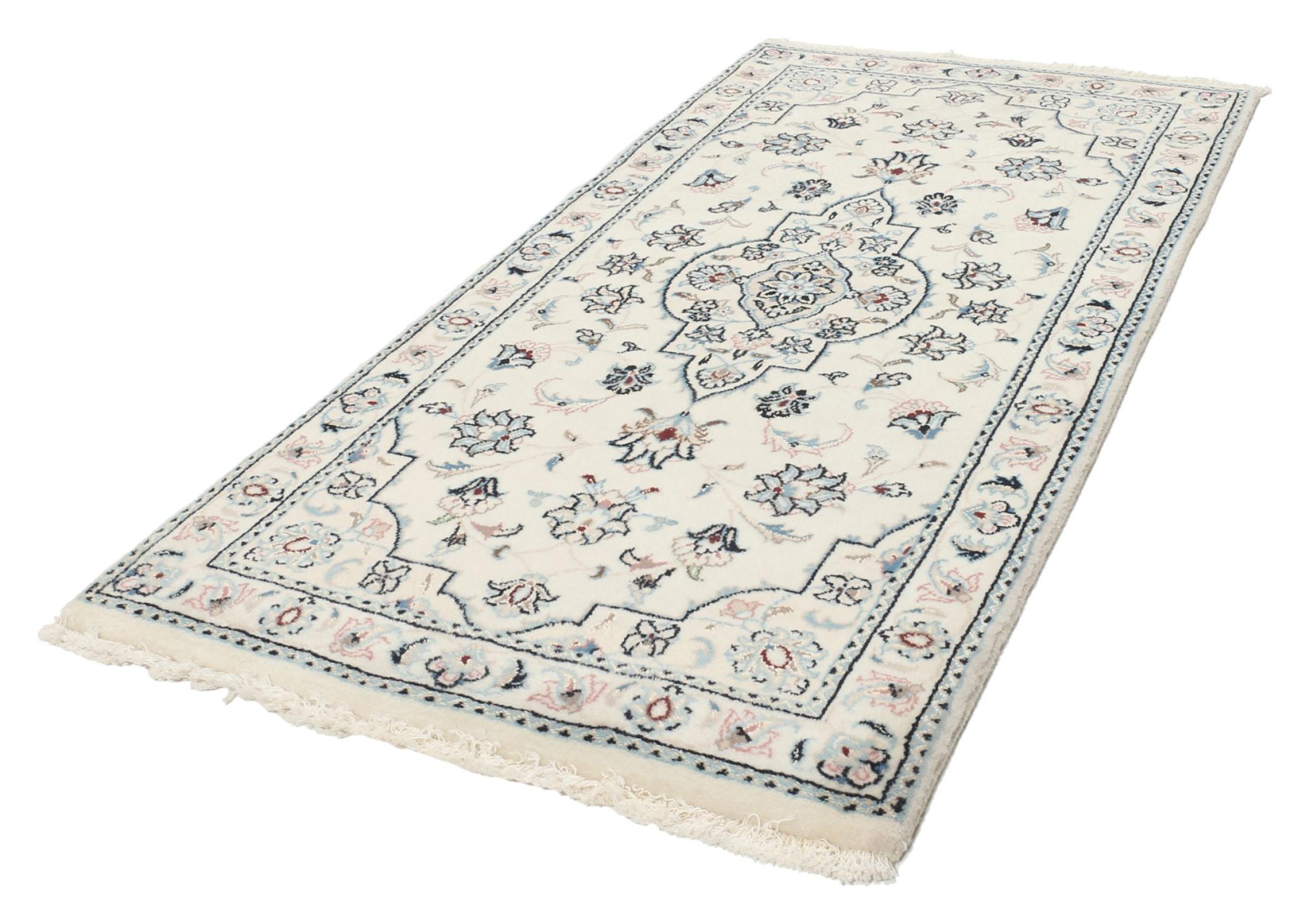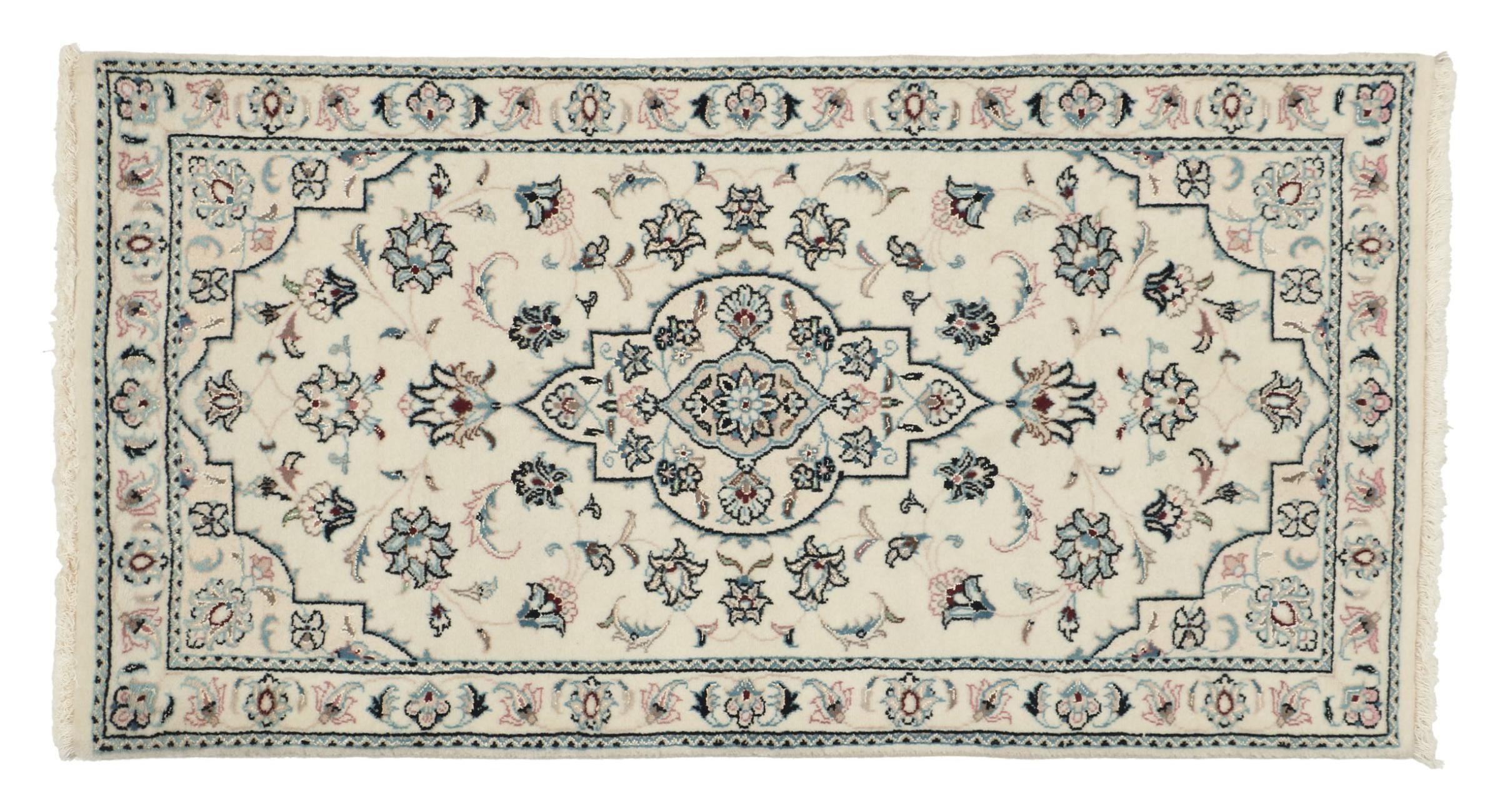 Les tapis de la ville de Nain, à la frontière de l'un des plus grands déserts d'Iran, comptent parmi les plus célèbres tapis persans du monde. Leur design typique est sans équivoque avec des ornements floraux, un médaillon central et des nuances de beige et de rouge ou de bleu. Grâce à leurs désignations 4La, 6La, 9La et 12La, les finesses d'un tapis Nain peuvent être vues d'un seul coup d'œil. Plus le chiffre "La" est bas, plus la densité des nœuds est élevée et donc plus le tapis est fin.