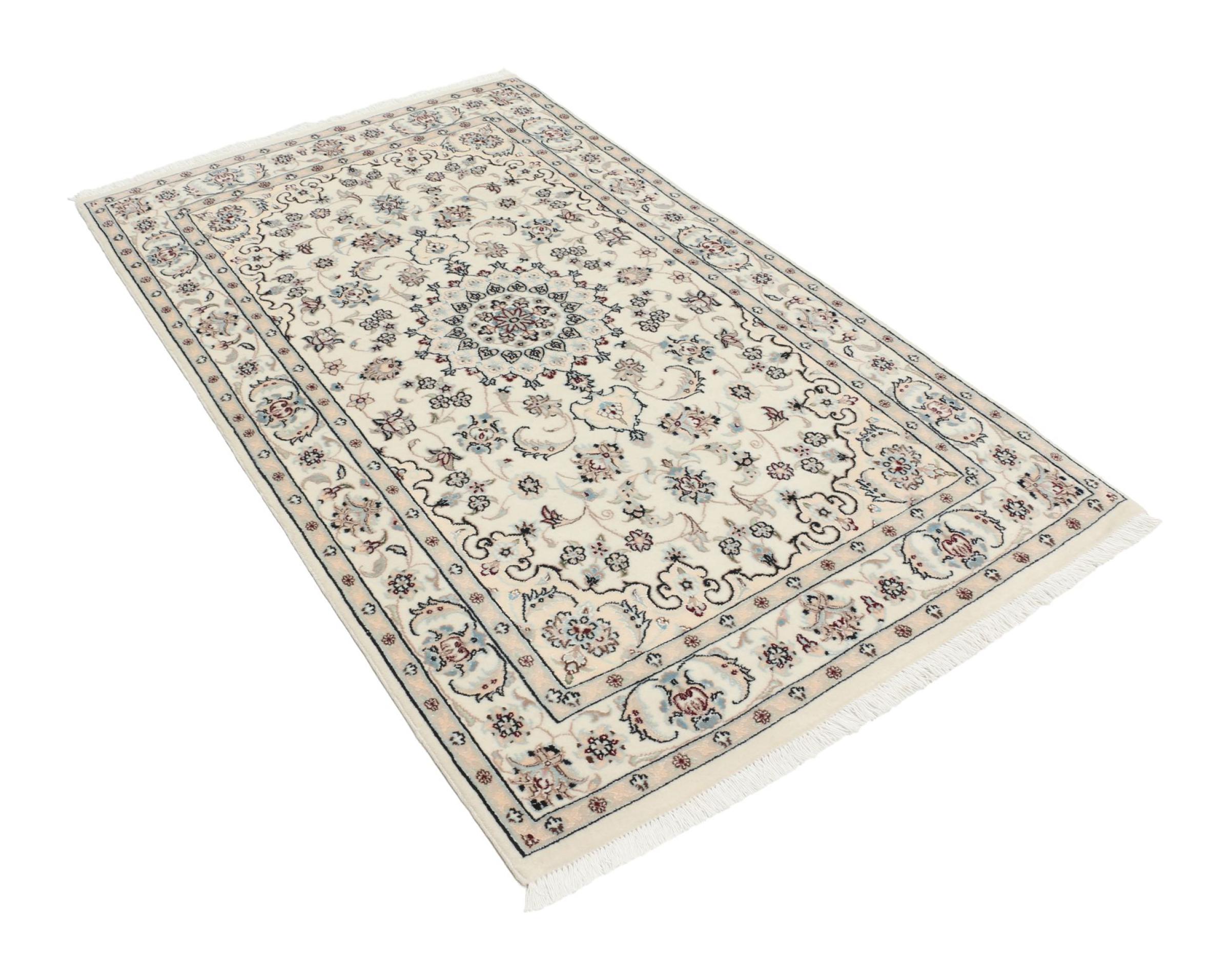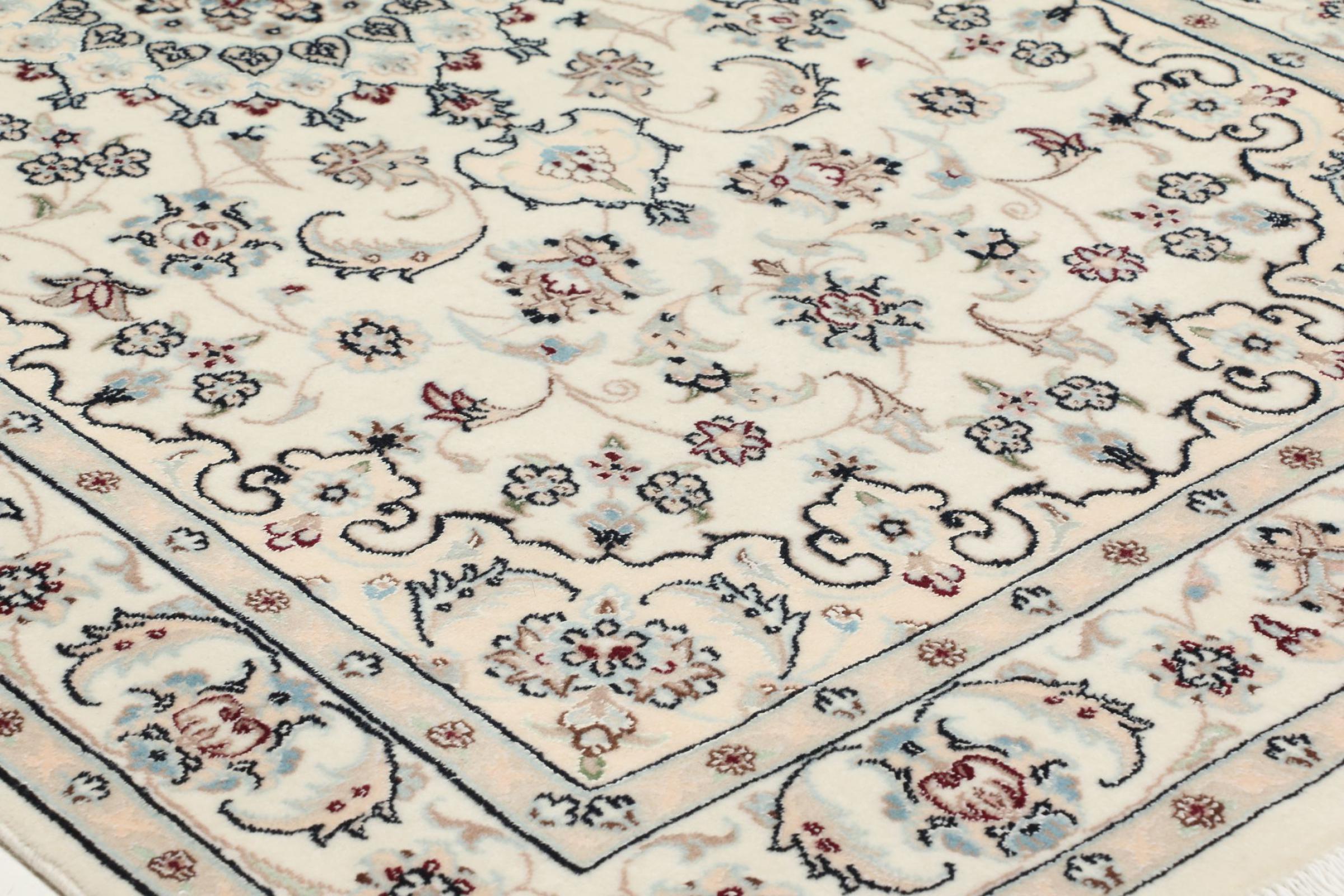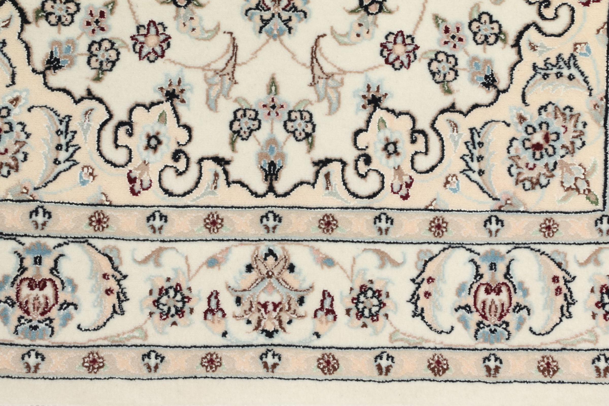 Les tapis de la ville de Nain, à la frontière de l'un des plus grands déserts d'Iran, comptent parmi les plus célèbres tapis persans du monde. Leur design typique est sans équivoque avec des ornements floraux, un médaillon central et des nuances de beige et de rouge ou de bleu. Grâce à leurs désignations 4La, 6La, 9La et 12La, les finesses d'un tapis Nain peuvent être vues d'un seul coup d'œil. Plus le chiffre "La" est bas, plus la densité des nœuds est élevée et donc plus le tapis est fin.