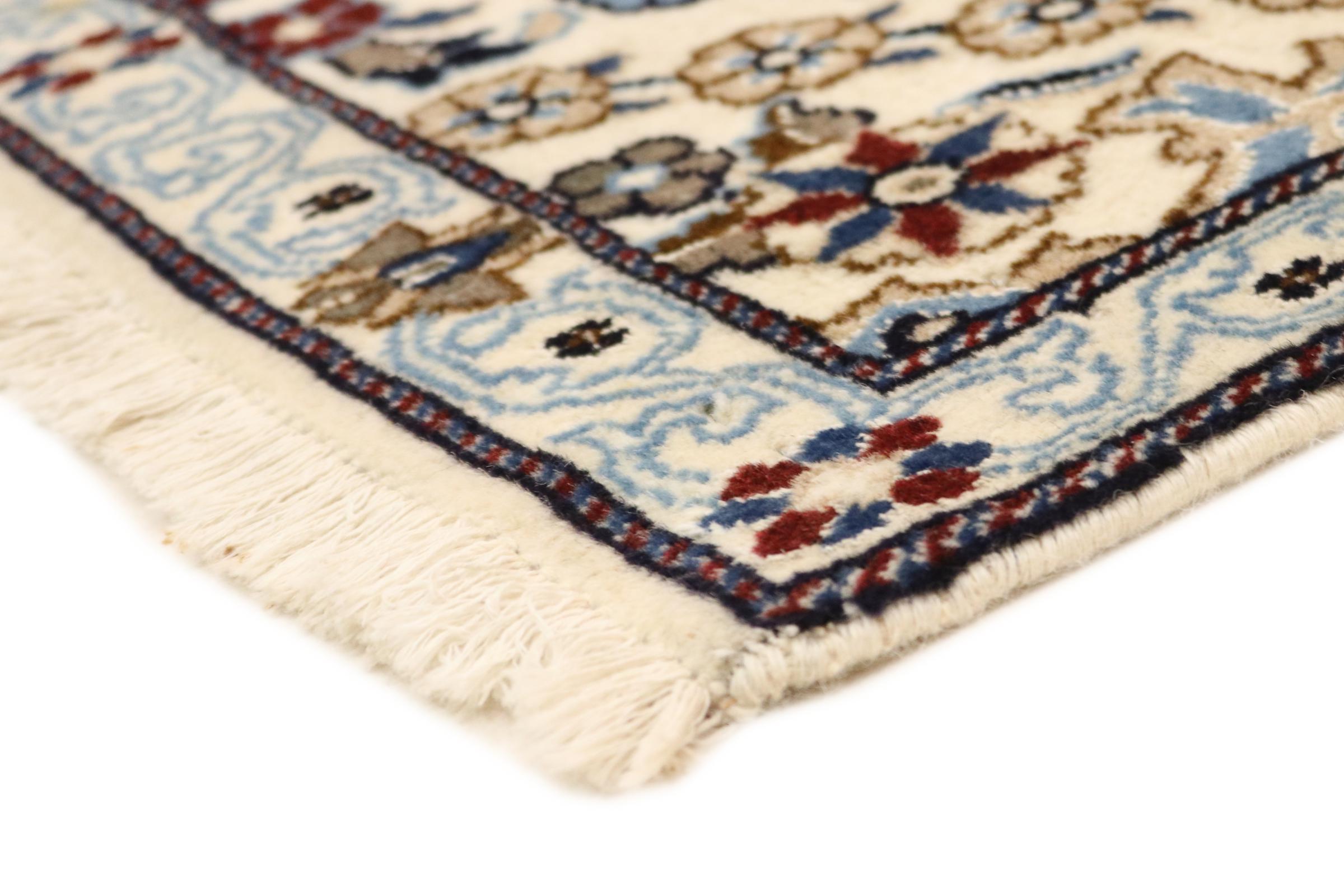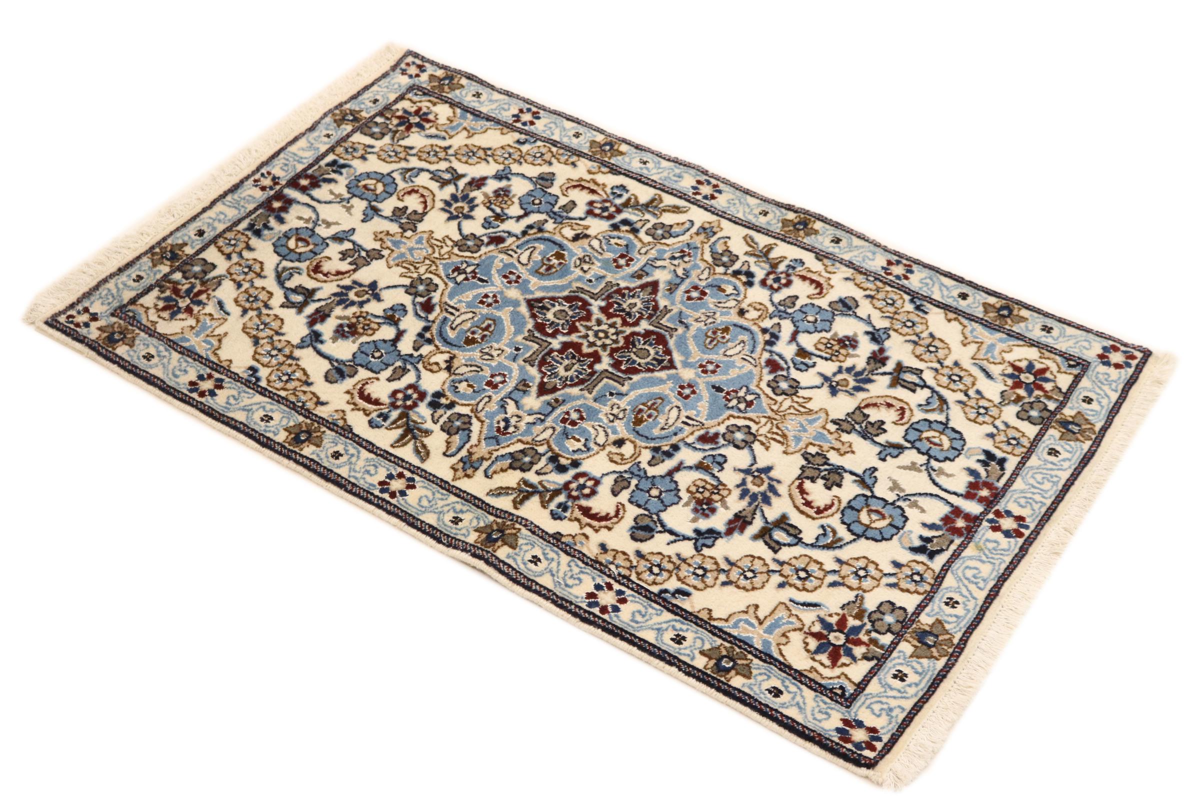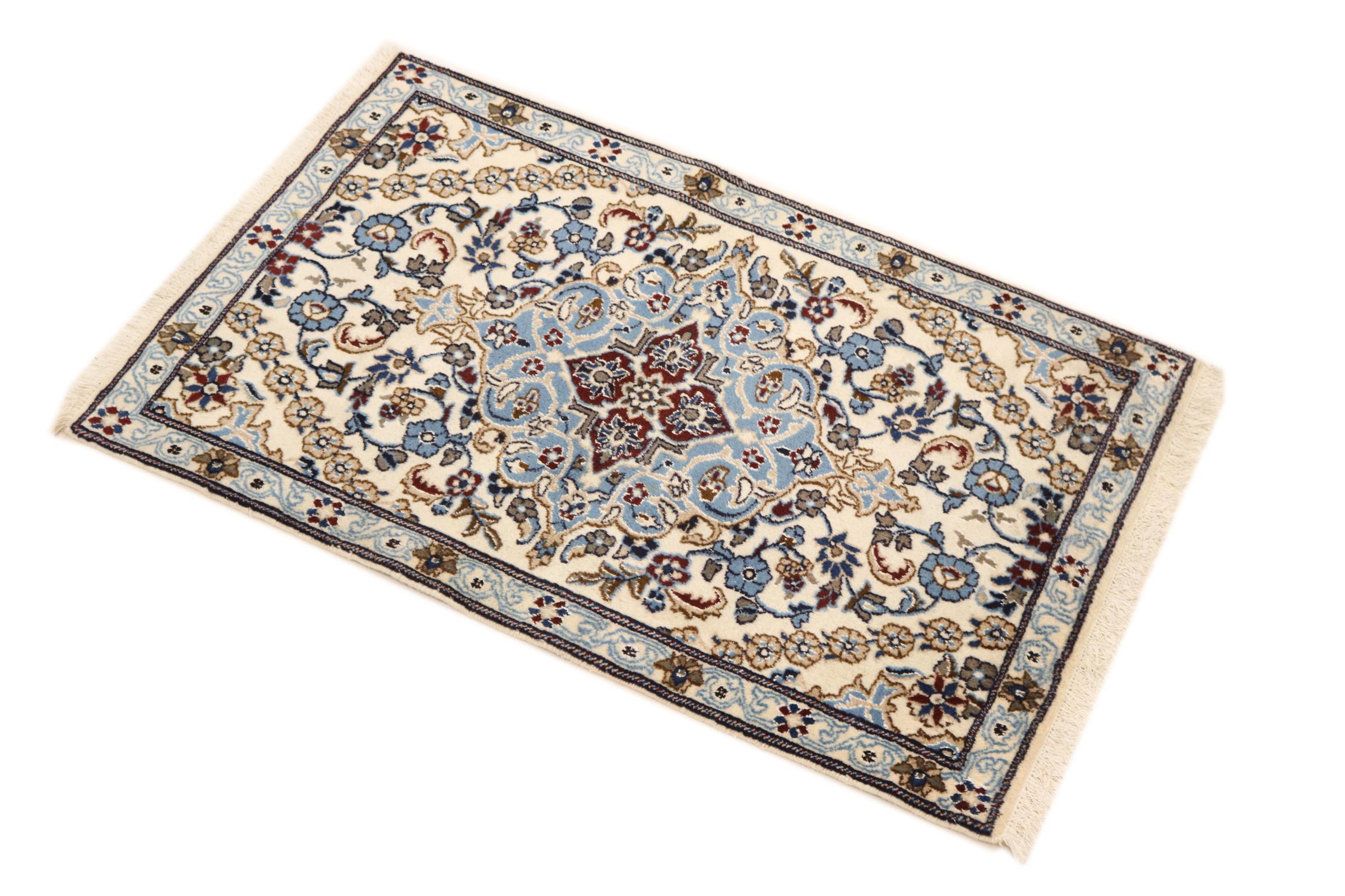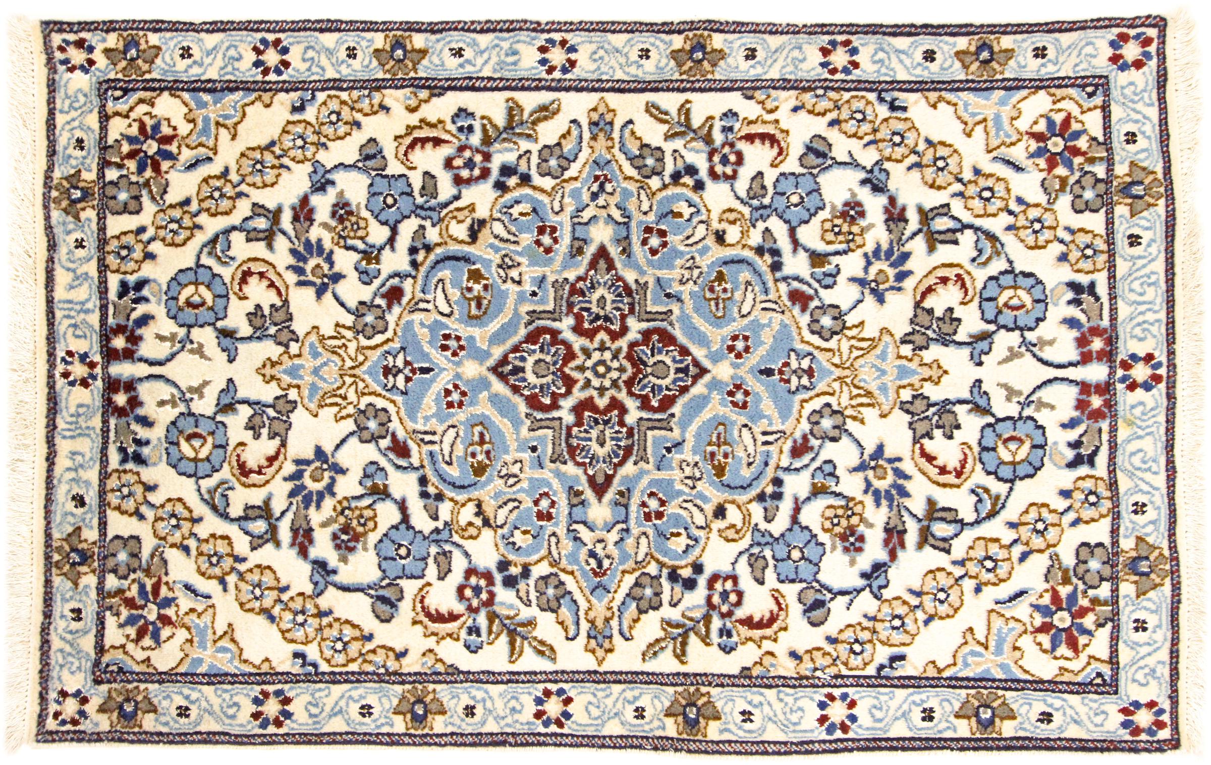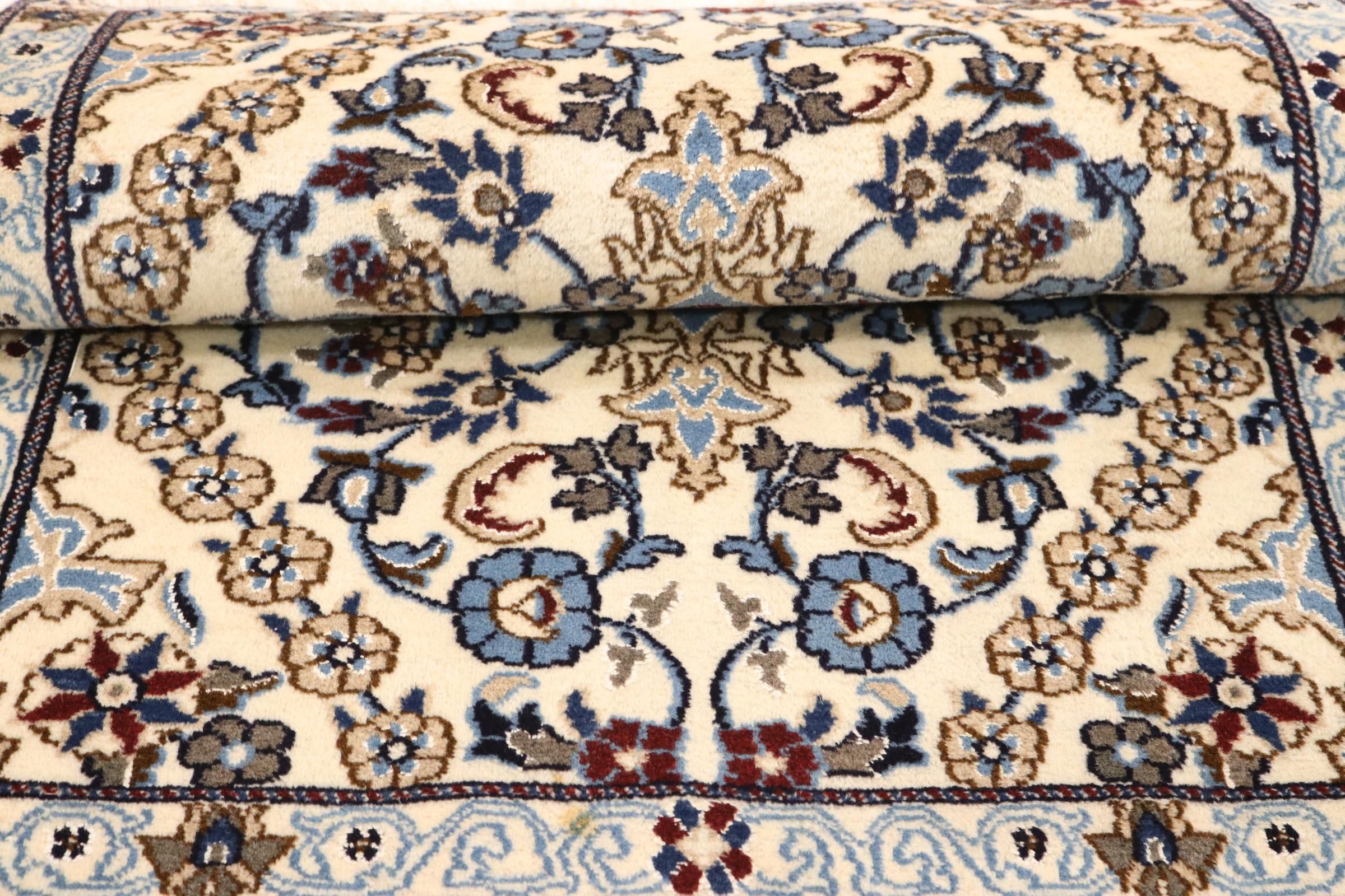 Les tapis de la ville de Nain, à la frontière de l'un des plus grands déserts d'Iran, comptent parmi les plus célèbres tapis persans du monde. Leur design typique est sans équivoque avec des ornements floraux, un médaillon central et des nuances de beige et de rouge ou de bleu. Grâce à leurs désignations 4La, 6La, 9La et 12La, les finesses d'un tapis Nain peuvent être vues d'un seul coup d'œil. Plus le chiffre "La" est bas, plus la densité des nœuds est élevée et donc plus le tapis est fin.