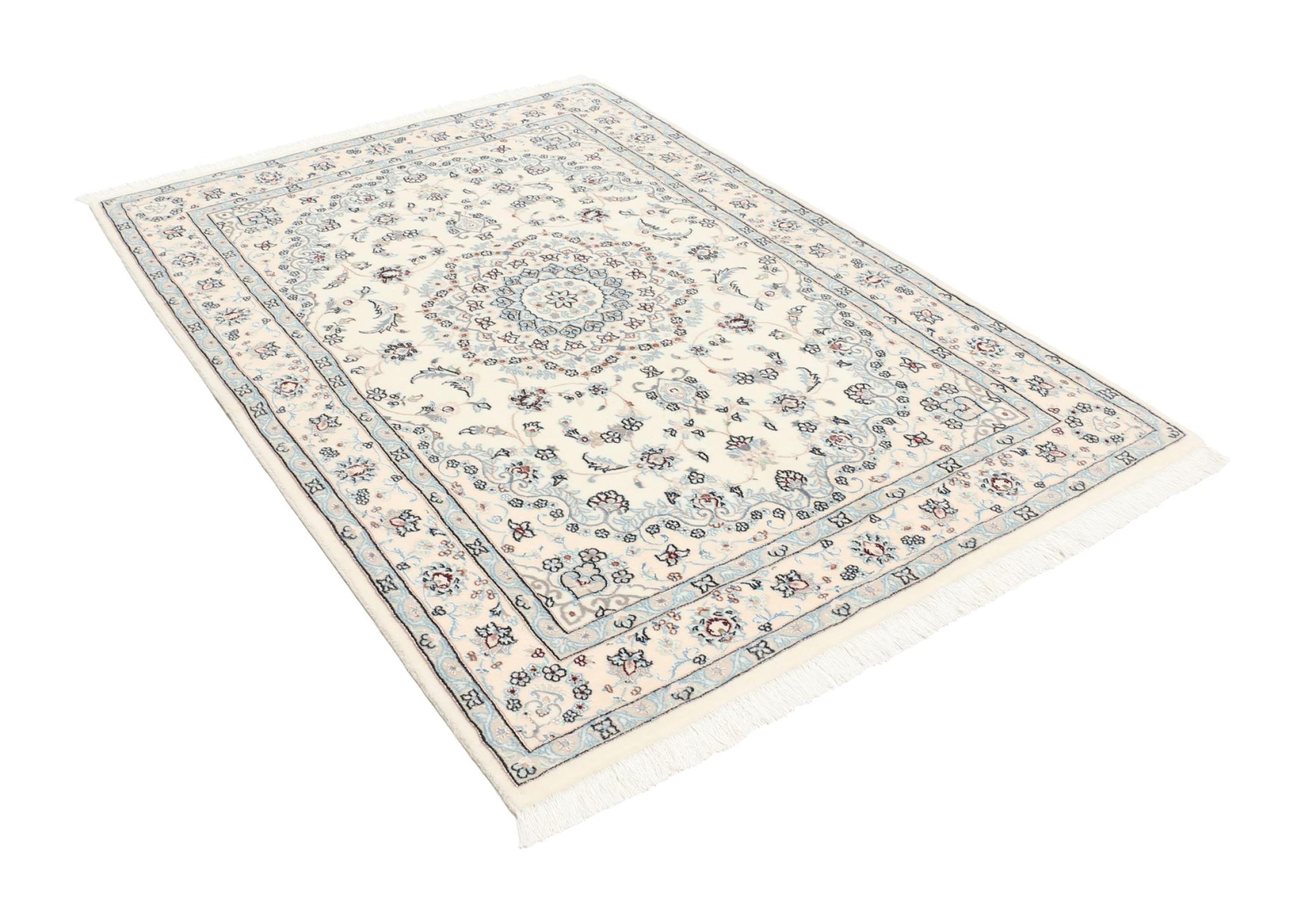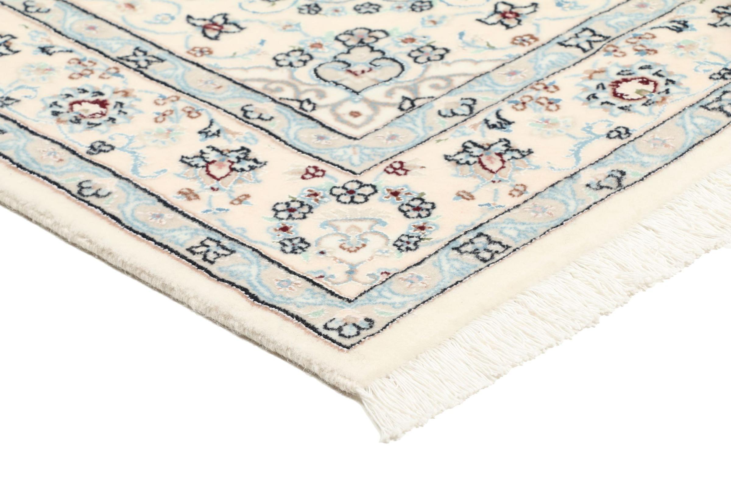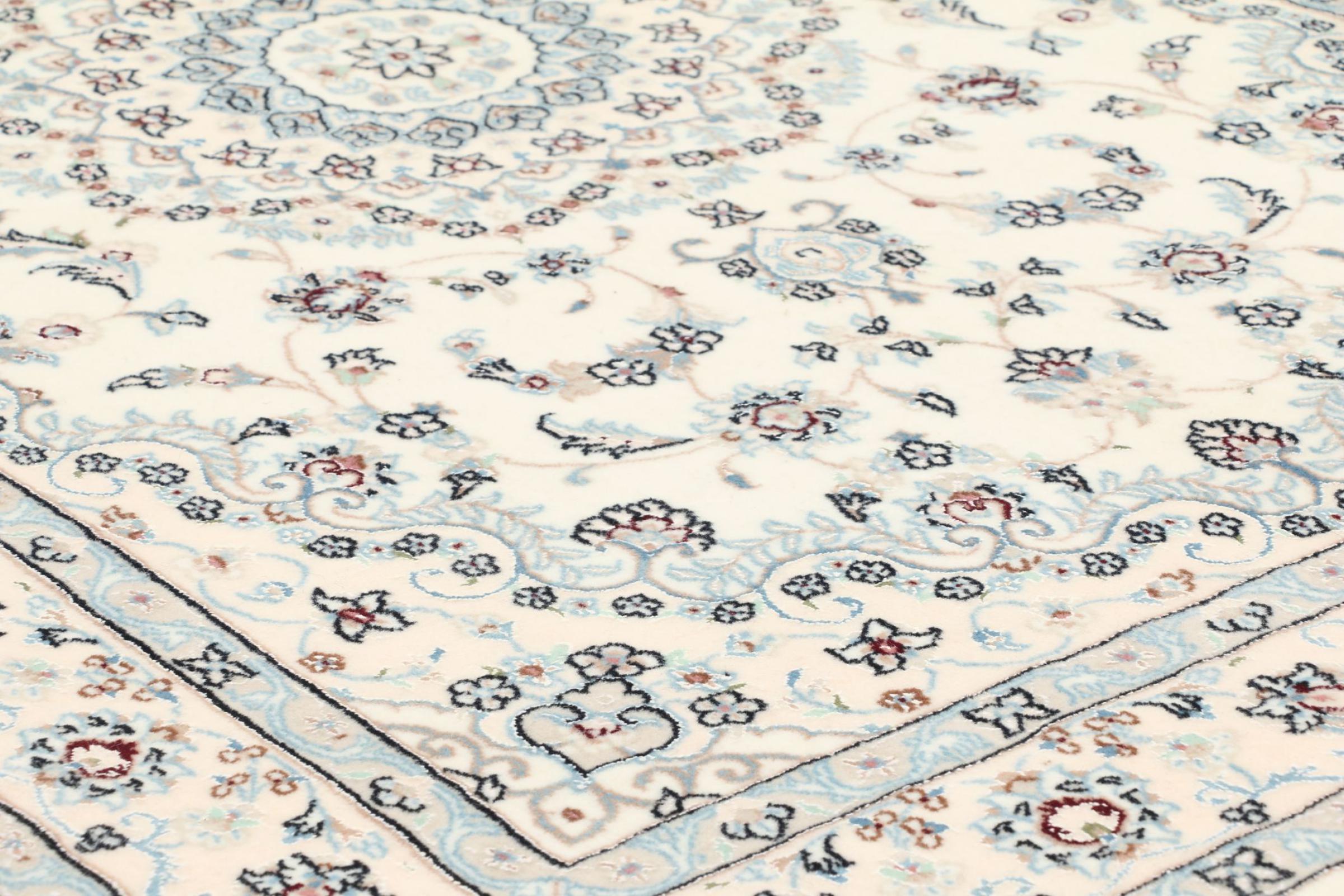 Les tapis de la ville de Nain, à la frontière de l'un des plus grands déserts d'Iran, comptent parmi les plus célèbres tapis persans du monde. Leur design typique est sans équivoque avec des ornements floraux, un médaillon central et des nuances de beige et de rouge ou de bleu. Grâce à leurs désignations 4La, 6La, 9La et 12La, les finesses d'un tapis Nain peuvent être vues d'un seul coup d'œil. Plus le chiffre "La" est bas, plus la densité des nœuds est élevée et donc plus le tapis est fin.