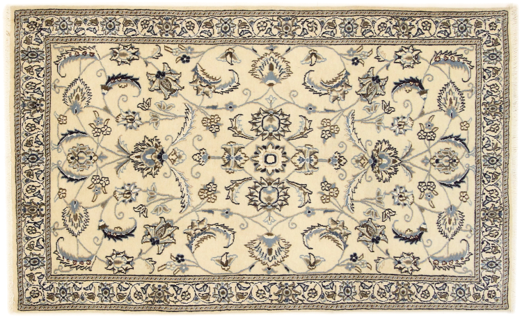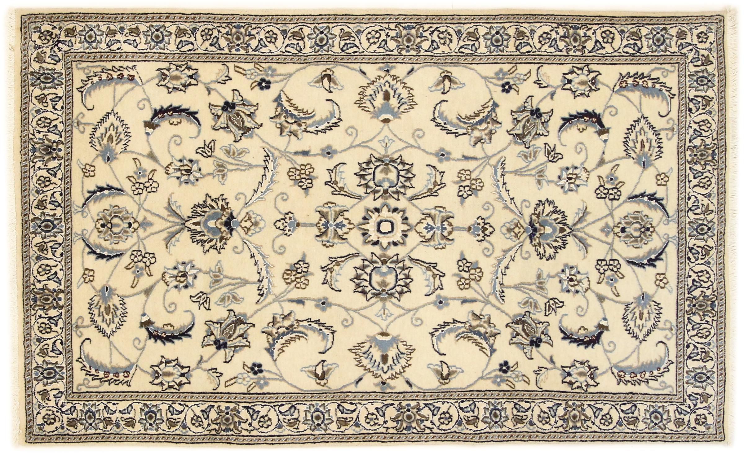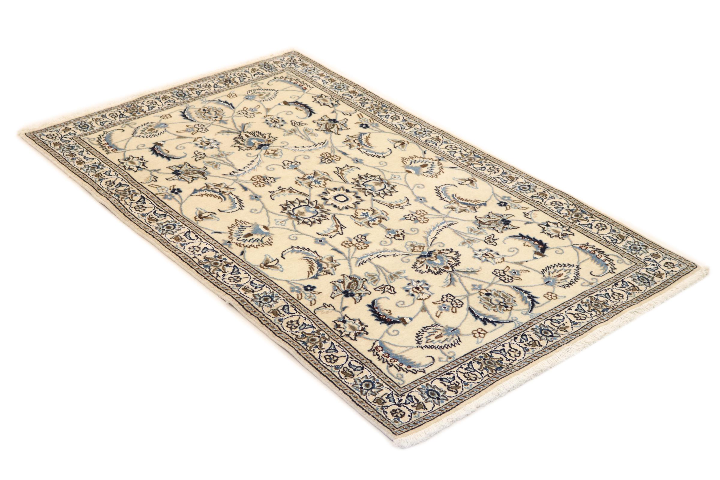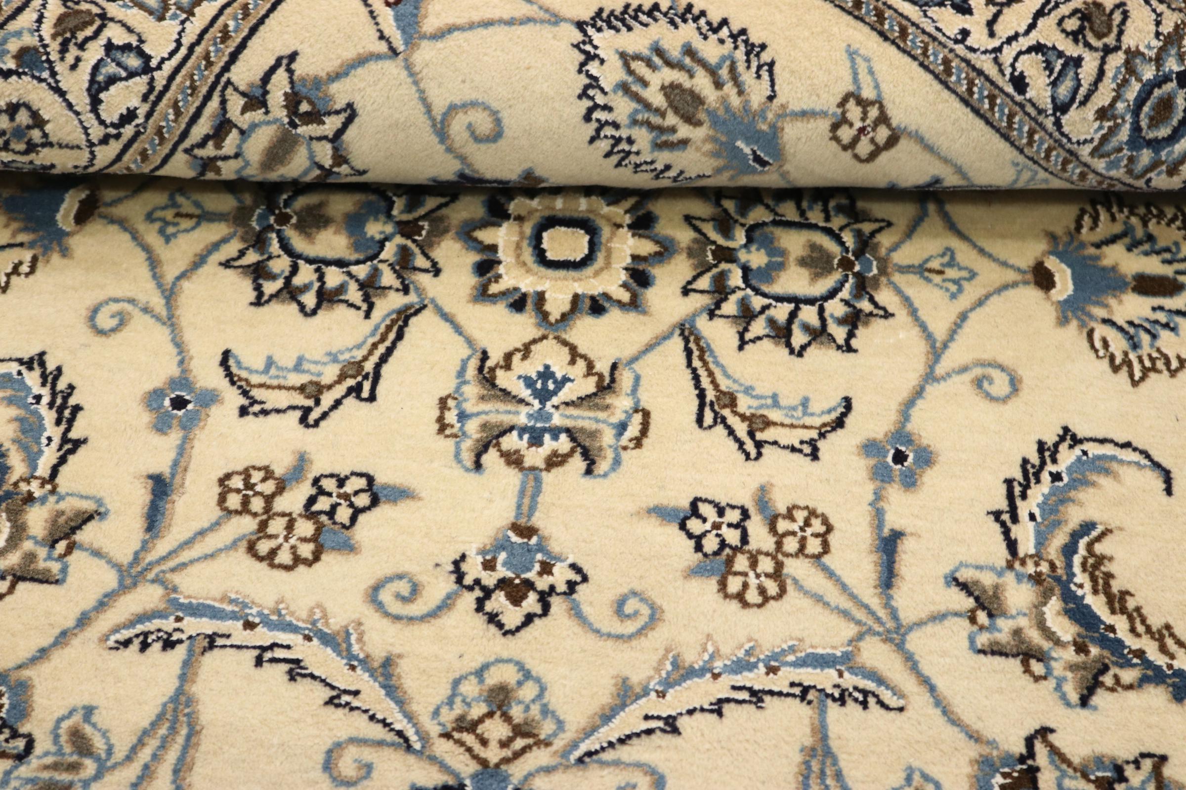 Les tapis de la ville de Nain, à la frontière de l'un des plus grands déserts d'Iran, comptent parmi les plus célèbres tapis persans du monde. Leur design typique est sans équivoque avec des ornements floraux, un médaillon central et des nuances de beige et de rouge ou de bleu. Grâce à leurs désignations 4La, 6La, 9La et 12La, les finesses d'un tapis Nain peuvent être vues d'un seul coup d'œil. Plus le chiffre "La" est bas, plus la densité des nœuds est élevée et donc plus le tapis est fin.