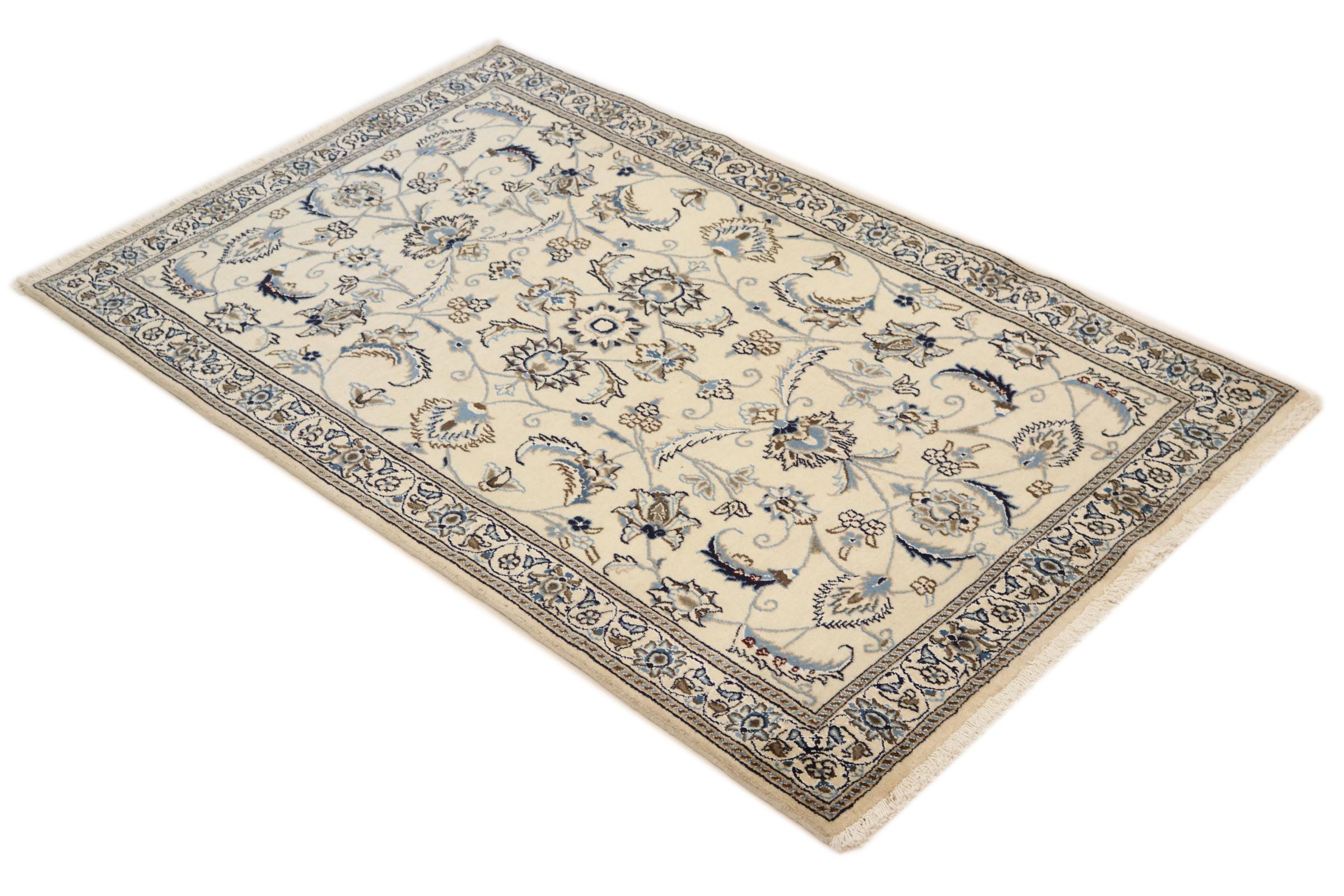 Ce tapis Nain appartient à la classe 12La. Il est élégant et précieux dans sa couleur typique des tapis Nain. Ce tapis persan a été tissé à la main dans la petite ville appelée Nain, qui réside près de la frontière ouest du désert Dascht – e – Kavir, à partir de laine de qualité supérieure et de soie naturelle.