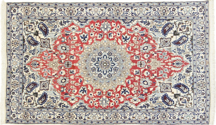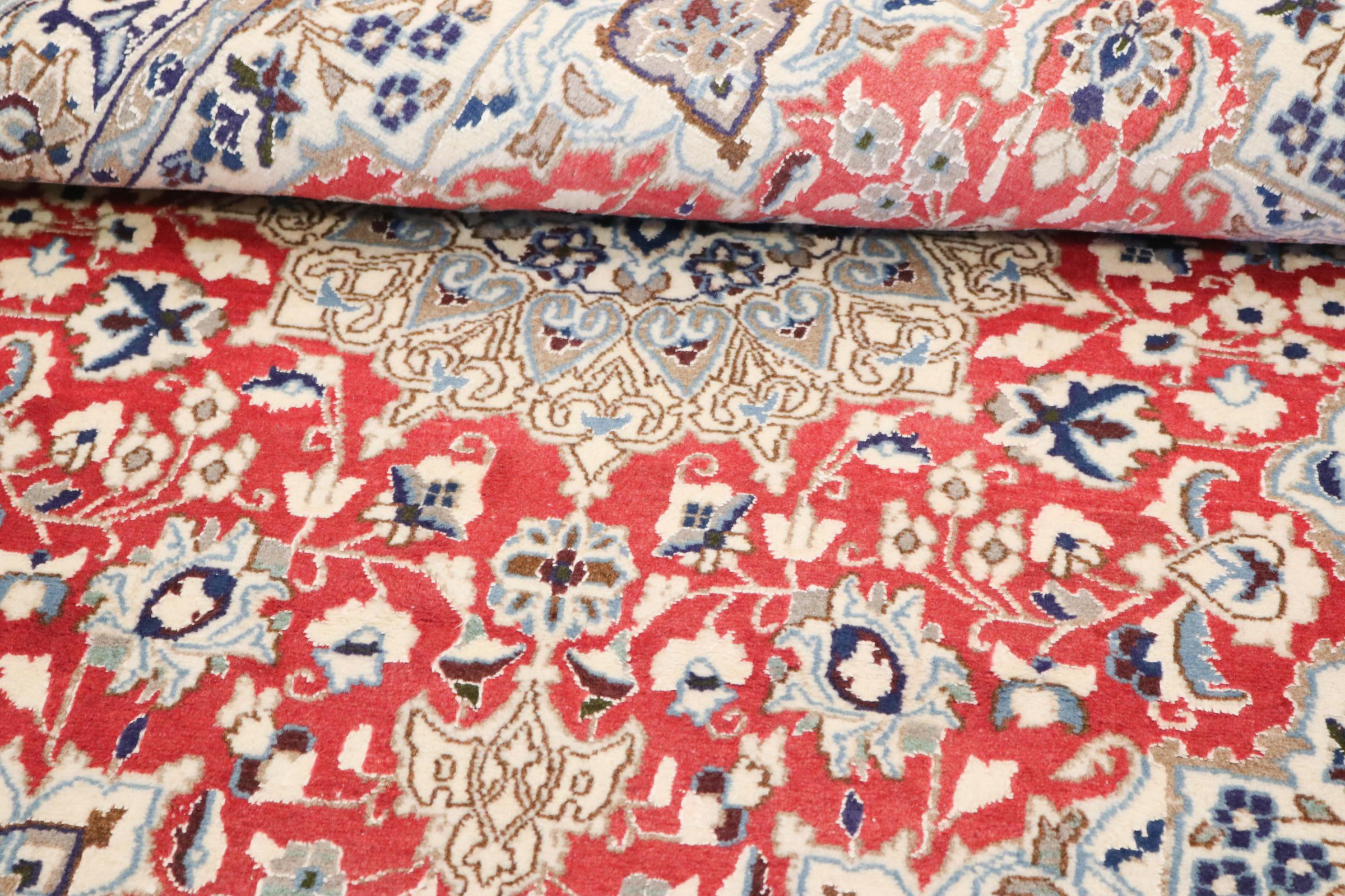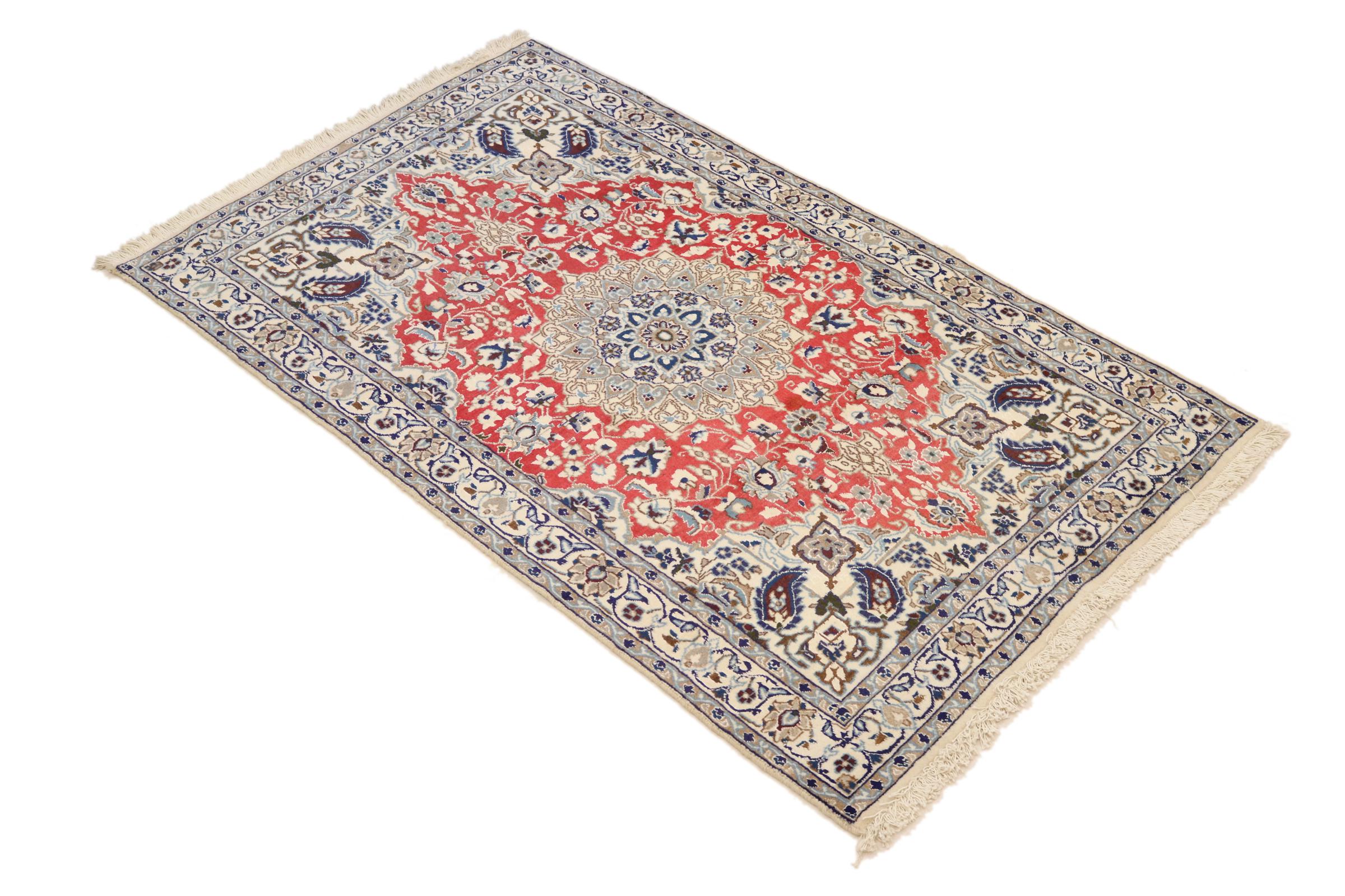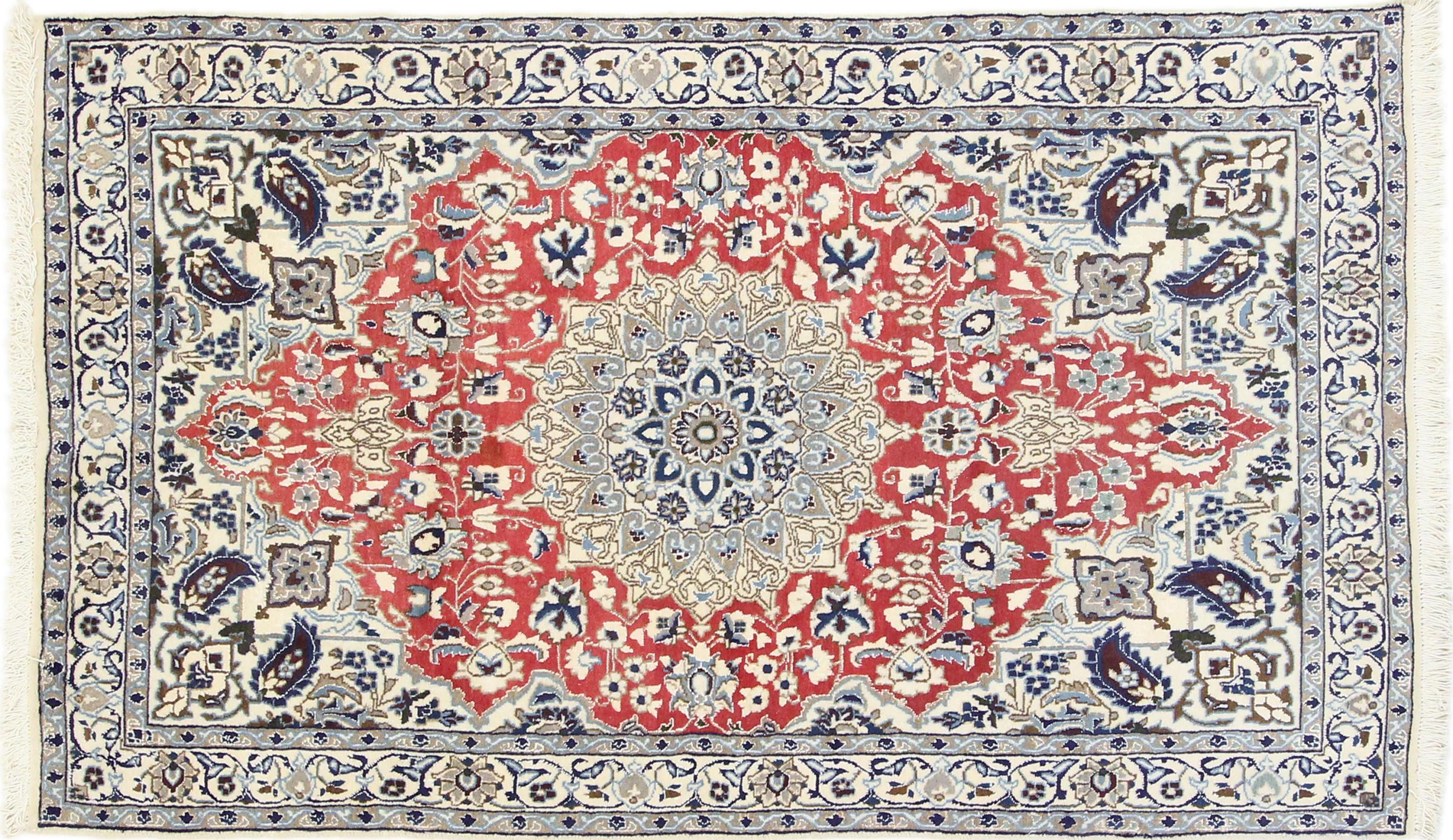 Les tapis de la ville de Nain, à la frontière de l'un des plus grands déserts d'Iran, comptent parmi les plus célèbres tapis persans du monde. Leur design typique est sans équivoque avec des ornements floraux, un médaillon central et des nuances de beige et de rouge ou de bleu. Grâce à leurs désignations 4La, 6La, 9La et 12La, les finesses d'un tapis Nain peuvent être vues d'un seul coup d'œil. Plus le chiffre "La" est bas, plus la densité des nœuds est élevée et donc plus le tapis est fin.