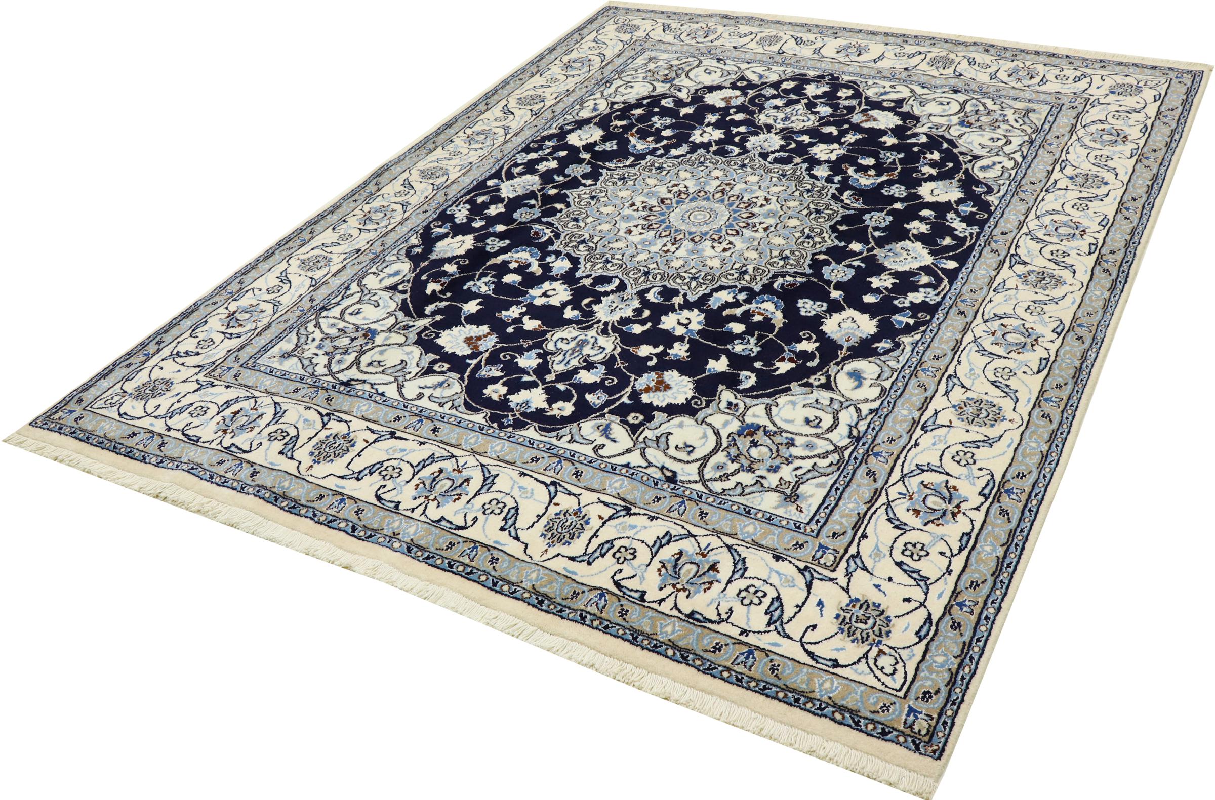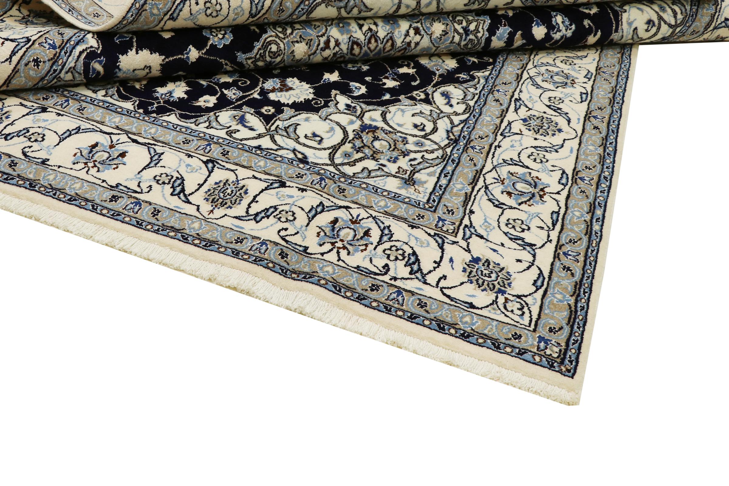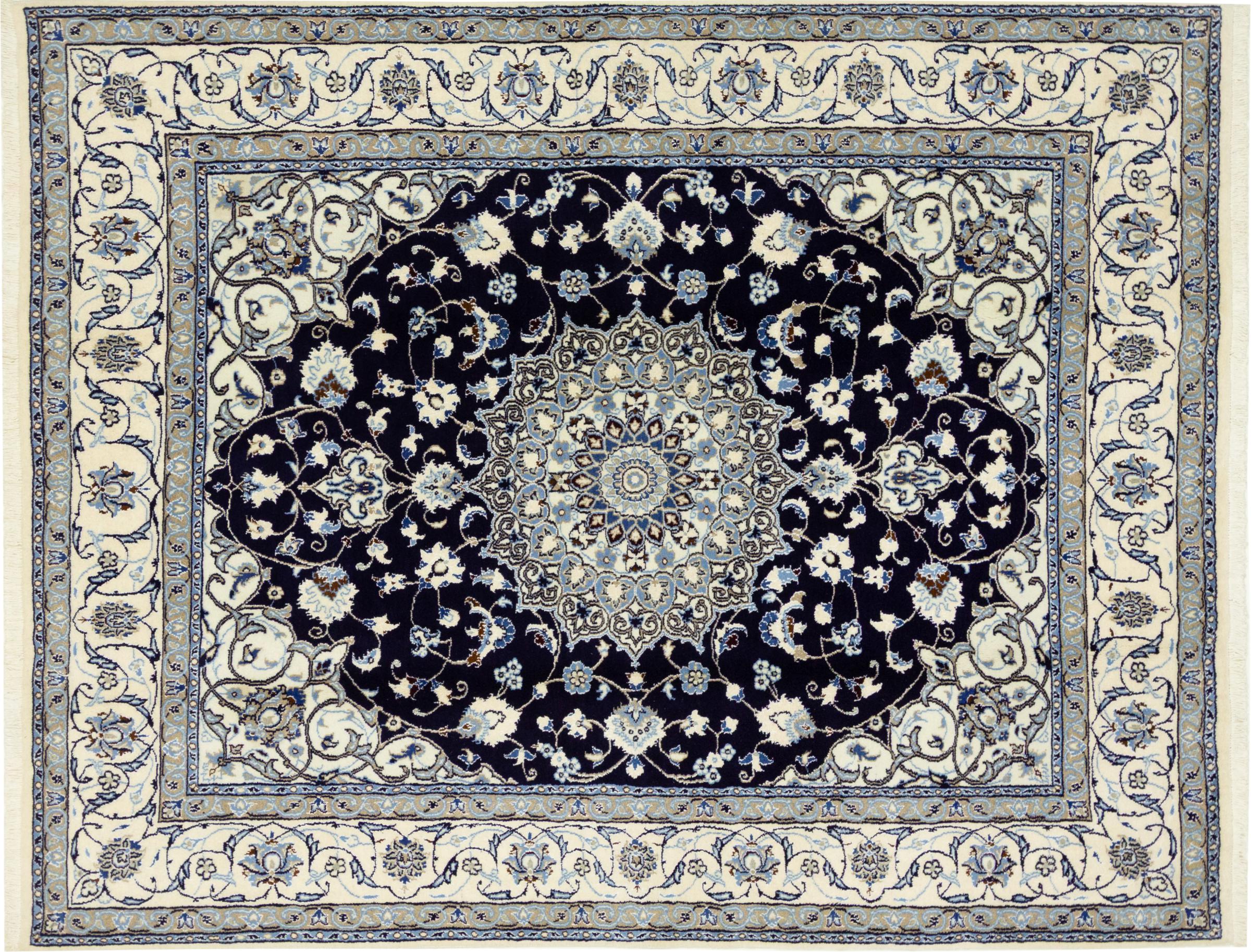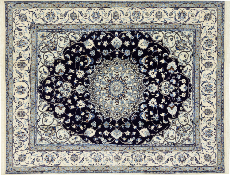 Les tapis de la ville de Nain, à la frontière de l'un des plus grands déserts d'Iran, comptent parmi les plus célèbres tapis persans du monde. Leur design typique est sans équivoque avec des ornements floraux, un médaillon central et des nuances de beige et de rouge ou de bleu. Grâce à leurs désignations 4La, 6La, 9La et 12La, les finesses d'un tapis Nain peuvent être vues d'un seul coup d'œil. Plus le chiffre "La" est bas, plus la densité des nœuds est élevée et donc plus le tapis est fin.