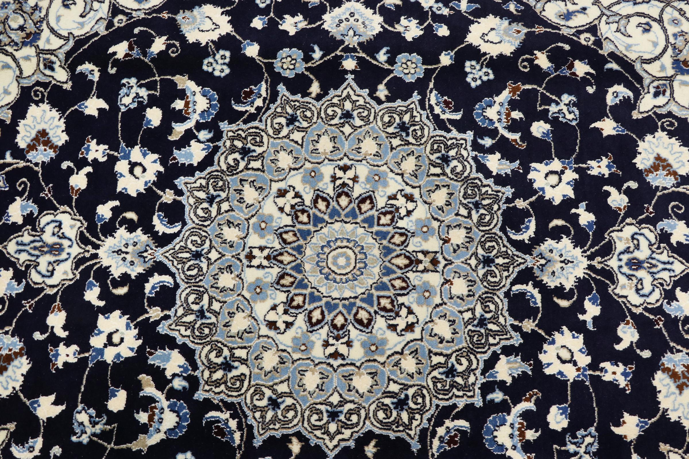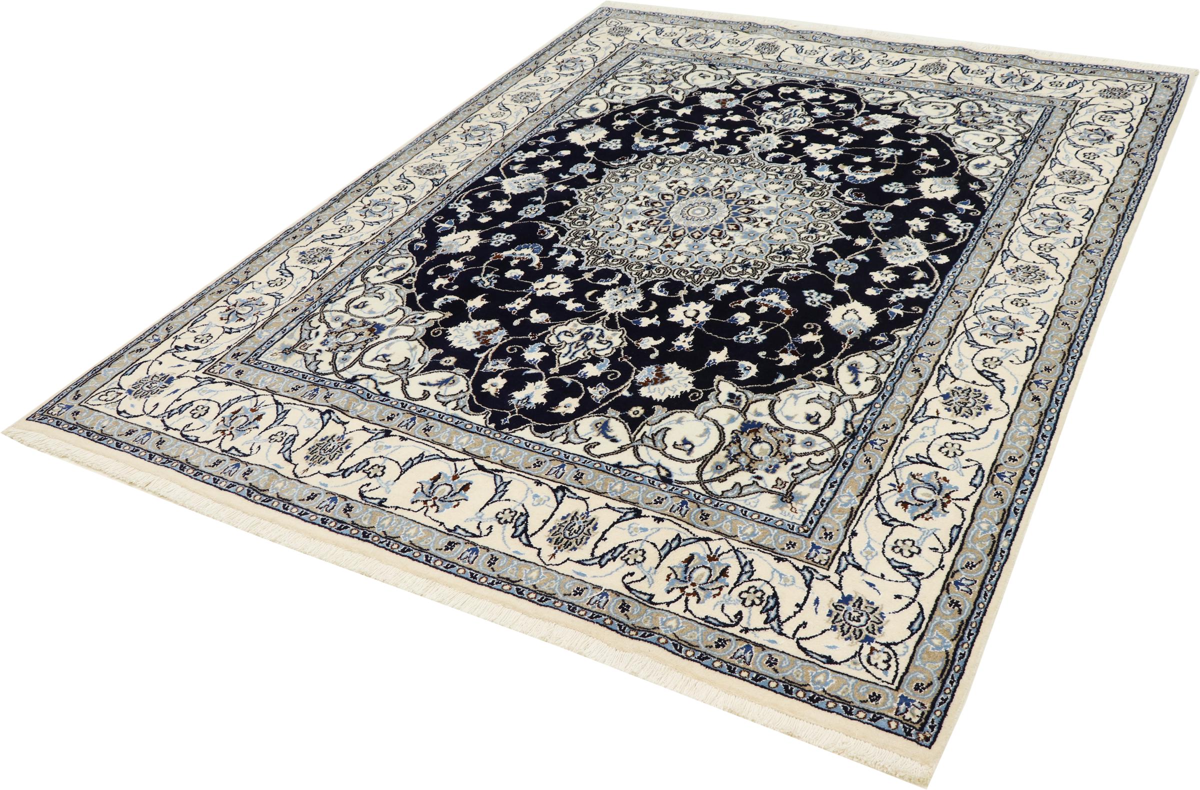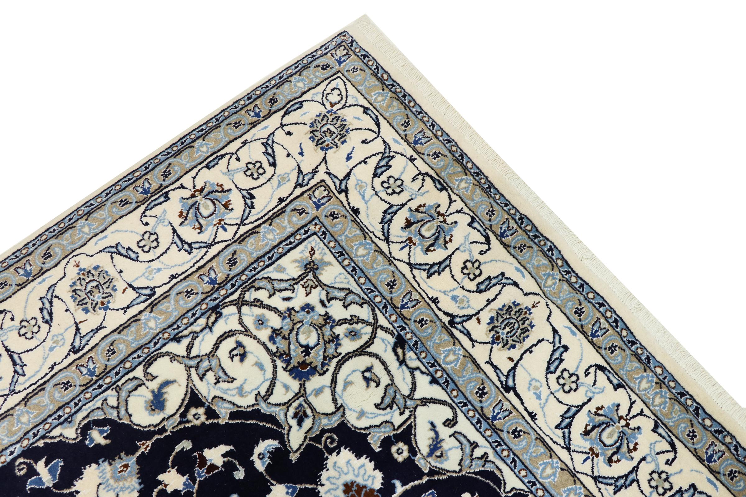 Les tapis de la ville de Nain, à la frontière de l'un des plus grands déserts d'Iran, comptent parmi les plus célèbres tapis persans du monde. Leur design typique est sans équivoque avec des ornements floraux, un médaillon central et des nuances de beige et de rouge ou de bleu. Grâce à leurs désignations 4La, 6La, 9La et 12La, les finesses d'un tapis Nain peuvent être vues d'un seul coup d'œil. Plus le chiffre "La" est bas, plus la densité des nœuds est élevée et donc plus le tapis est fin.