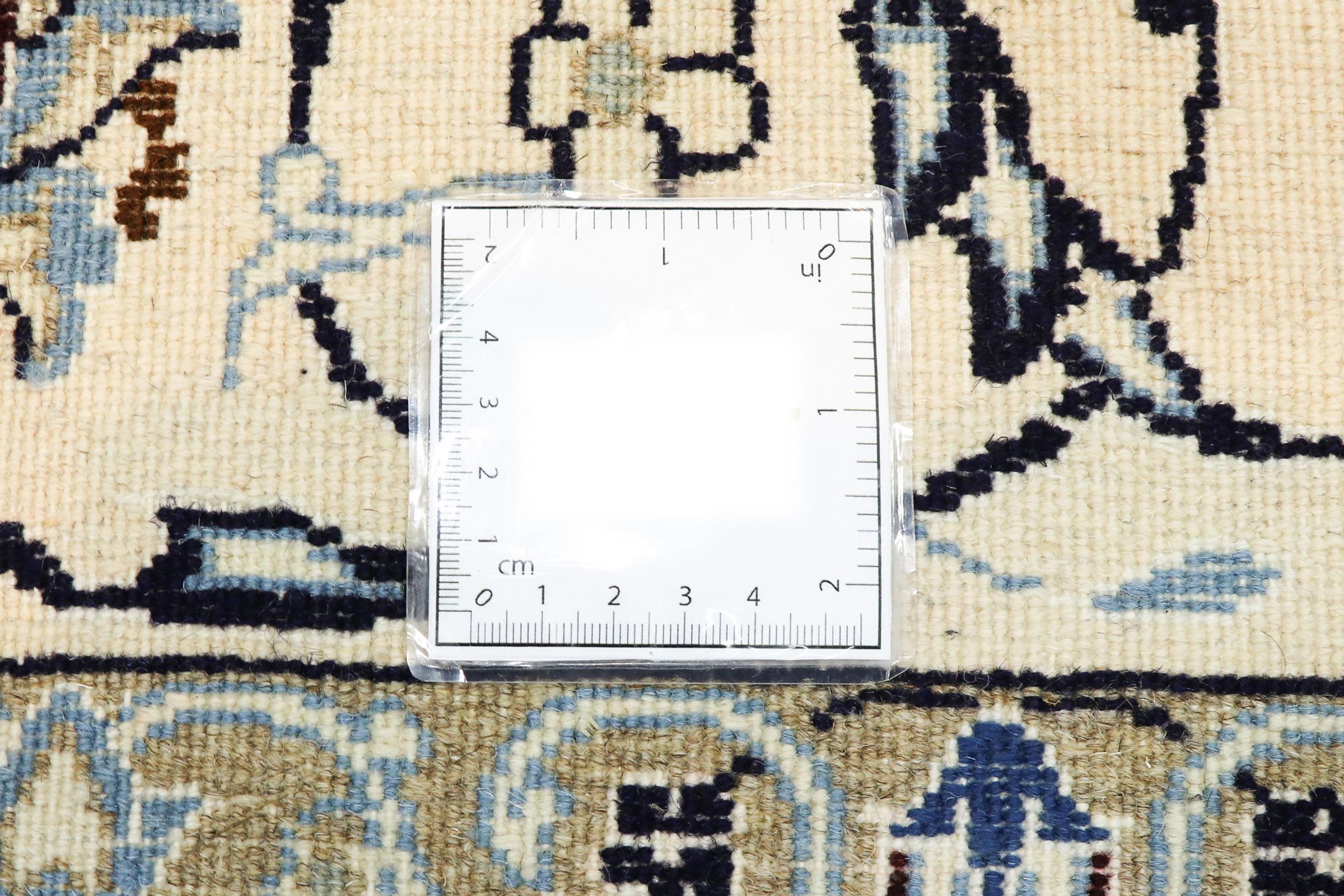 Ce tapis Nain appartient à la classe 12La. Il est élégant et précieux dans sa couleur typique des tapis Nain. Ce tapis persan a été tissé à la main dans la petite ville appelée Nain, qui réside près de la frontière ouest du désert Dascht – e – Kavir, à partir de laine de qualité supérieure et de soie naturelle.