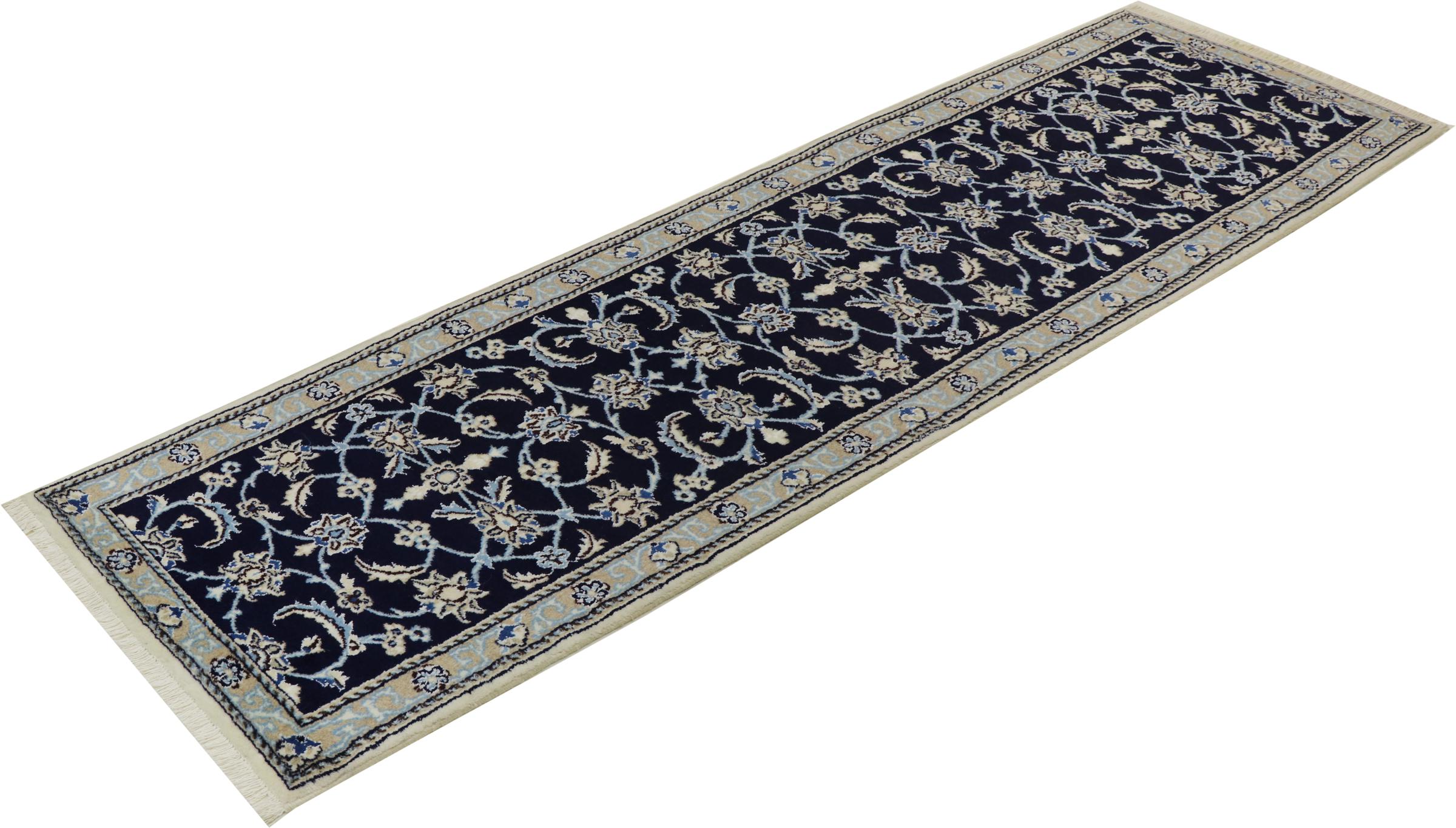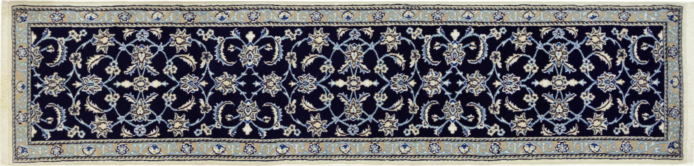 Les tapis de la ville de Nain, à la frontière de l'un des plus grands déserts d'Iran, comptent parmi les plus célèbres tapis persans du monde. Leur design typique est sans équivoque avec des ornements floraux, un médaillon central et des nuances de beige et de rouge ou de bleu. Grâce à leurs désignations 4La, 6La, 9La et 12La, les finesses d'un tapis Nain peuvent être vues d'un seul coup d'œil. Plus le chiffre "La" est bas, plus la densité des nœuds est élevée et donc plus le tapis est fin.