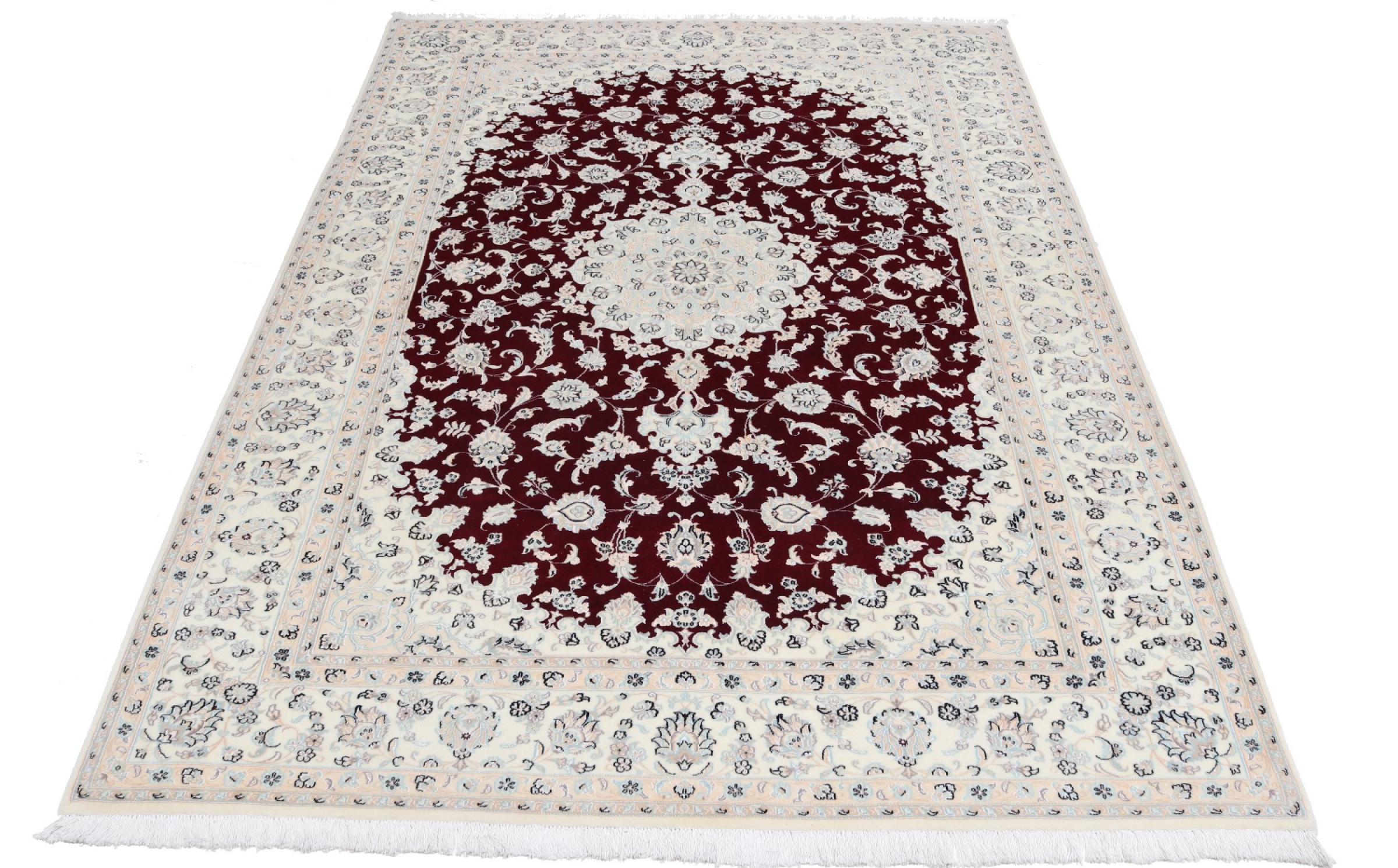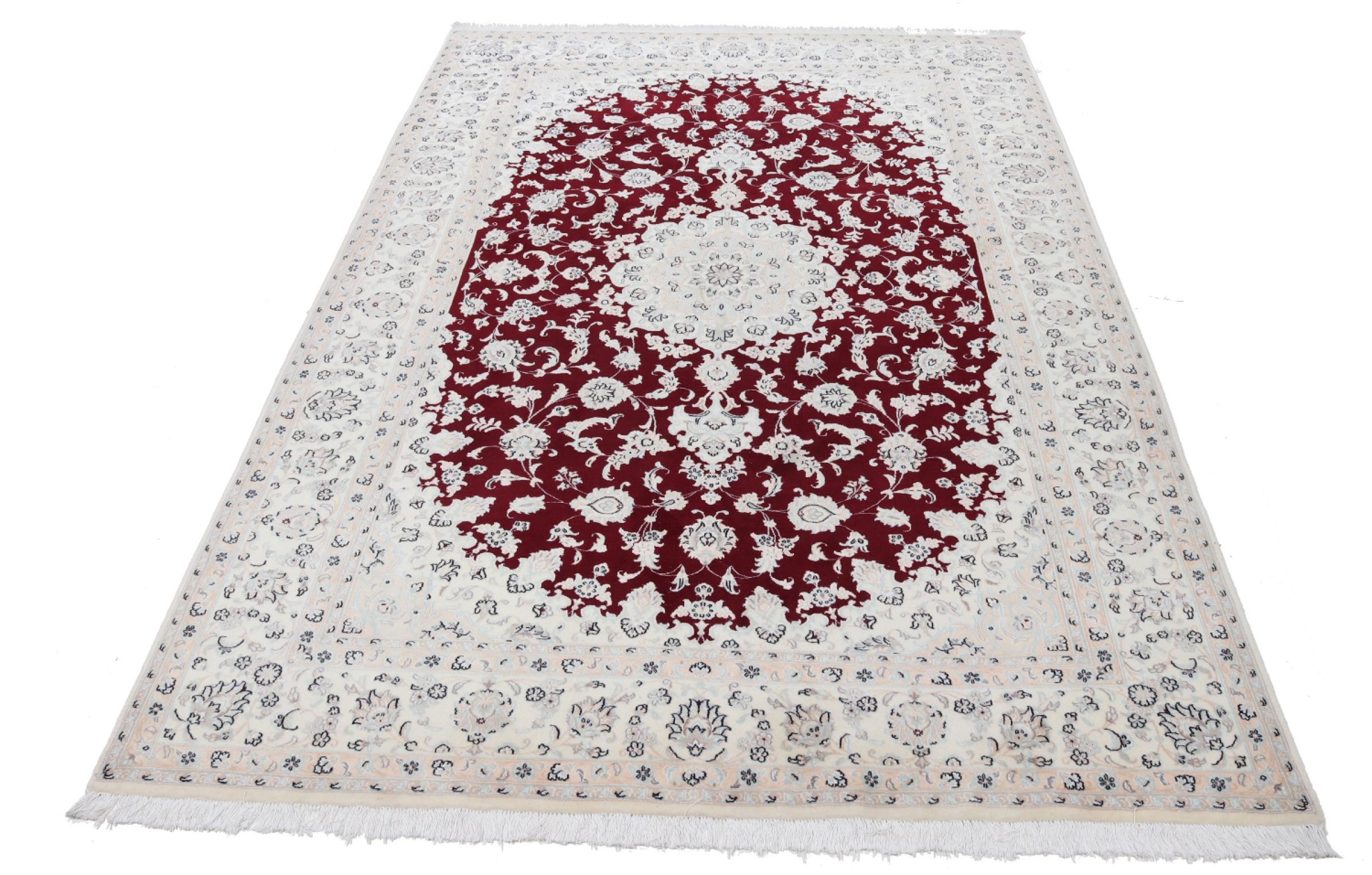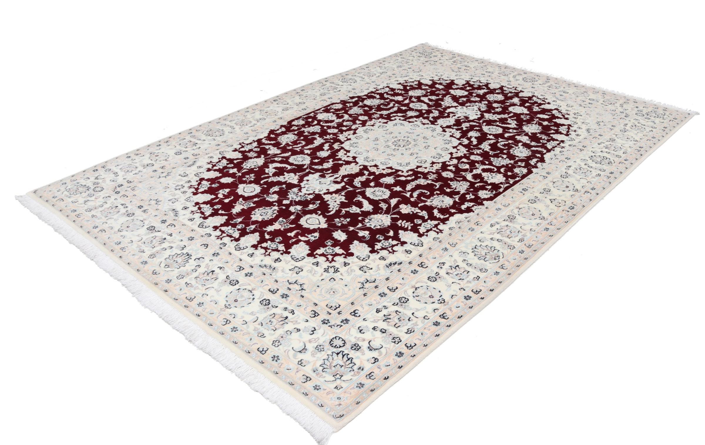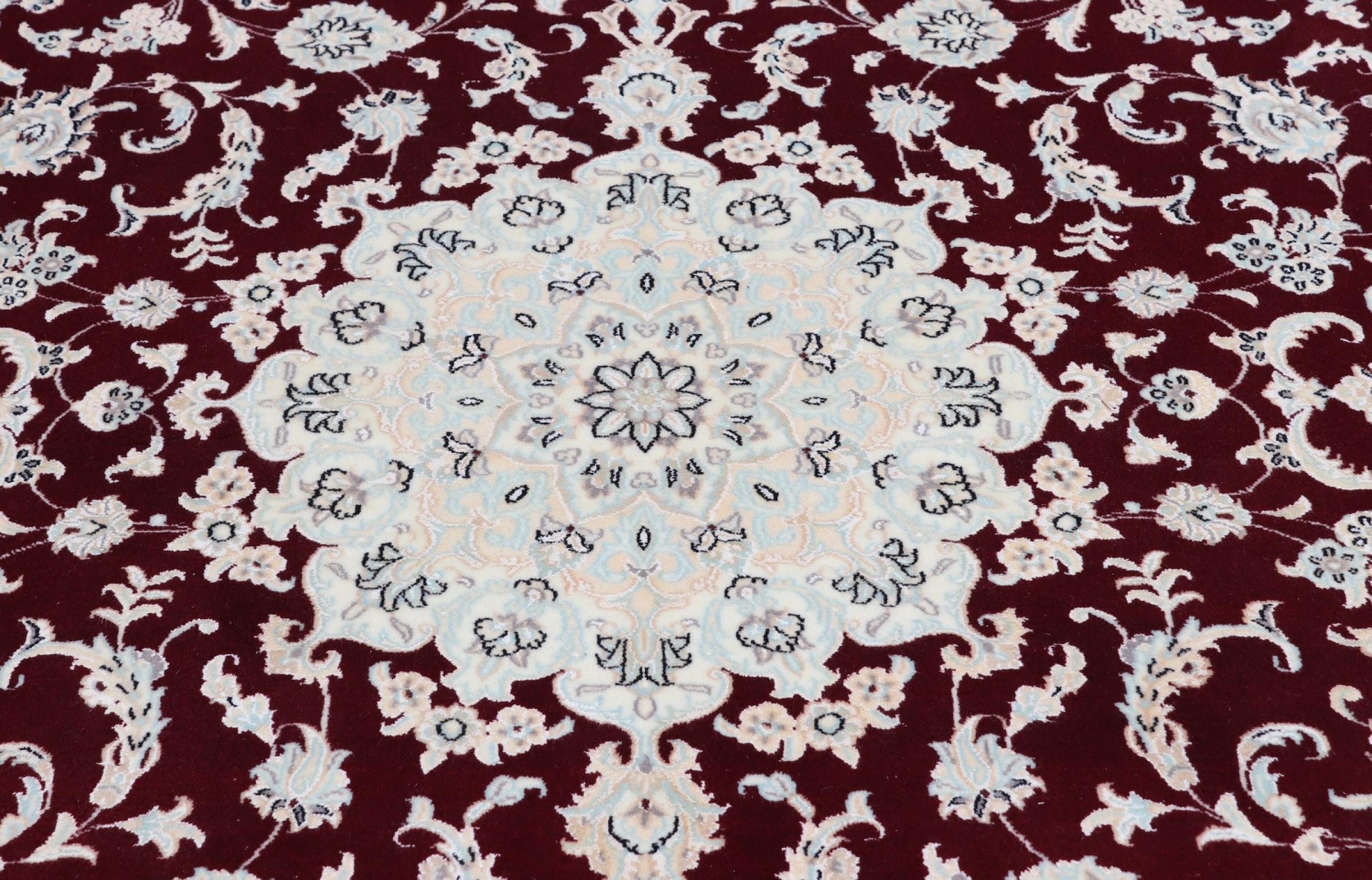 Ce tapis Nain est classifié 9La. La bonne qualité et le splendide design oriental avec ses motifs curvilignes inspirent chacun d’entre nous. Ce tapis persan était noué a la main avec de la laine précieuse et de la soie naturelle à Nain, une ville située à l’extrémité ouest du désert Dasht-e-Kavir.
