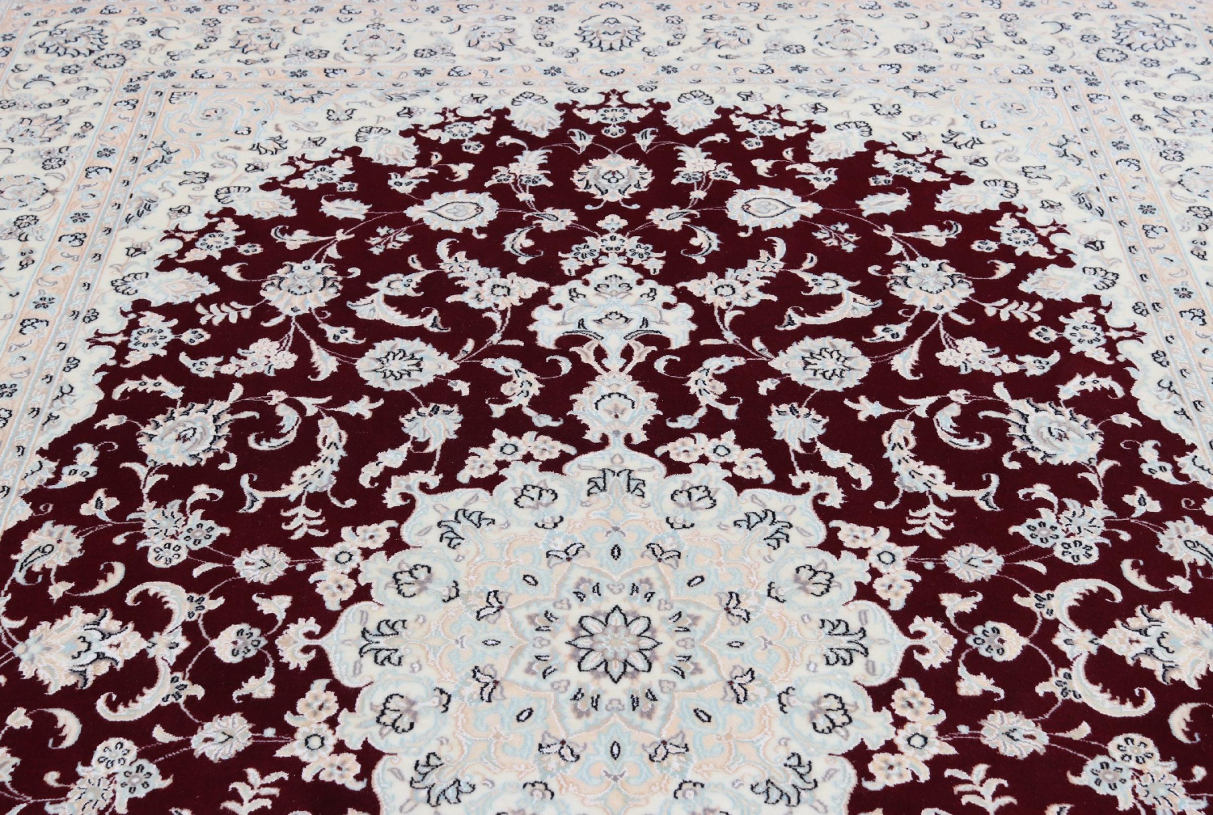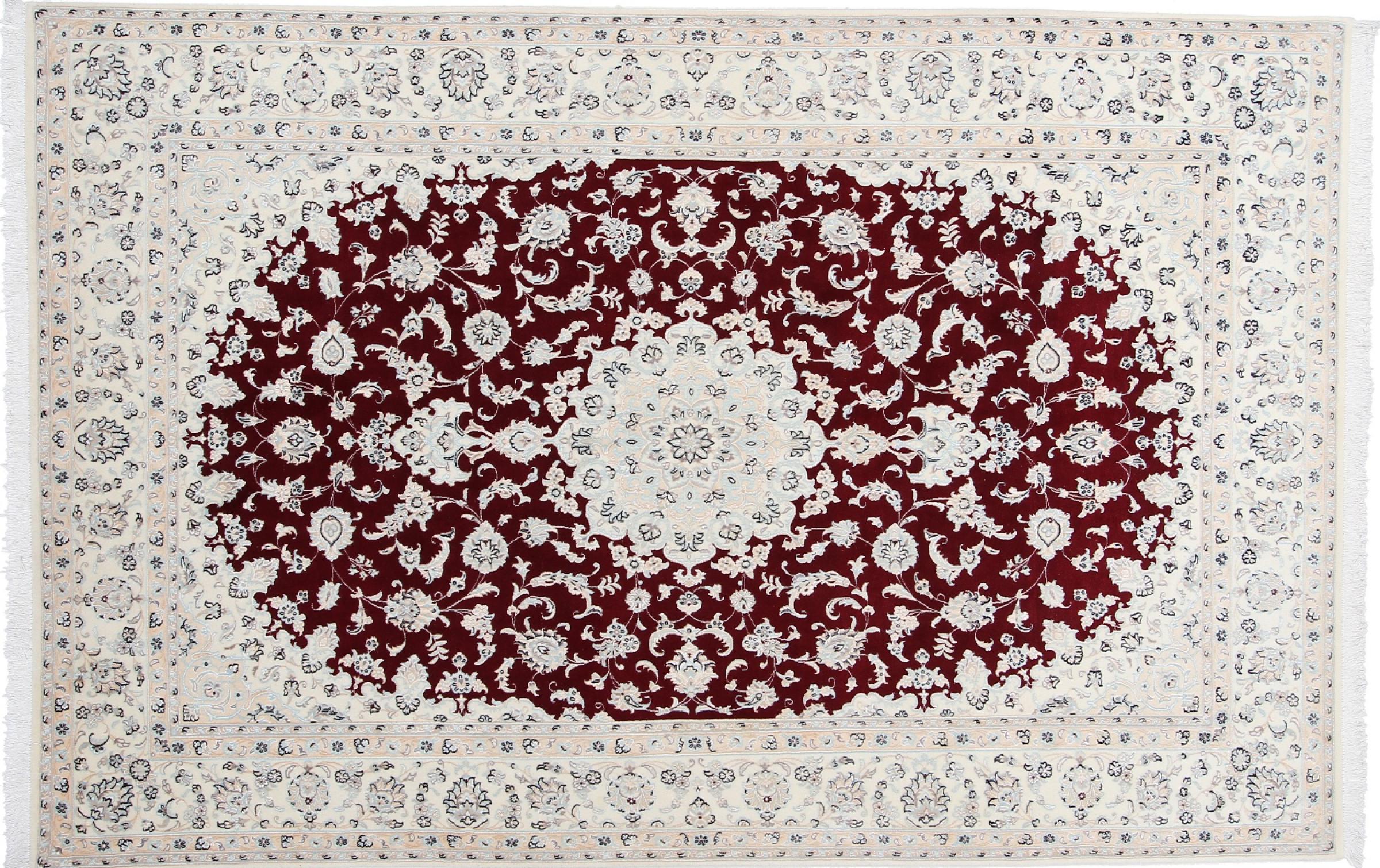 Les tapis de la ville de Nain, à la frontière de l'un des plus grands déserts d'Iran, comptent parmi les plus célèbres tapis persans du monde. Leur design typique est sans équivoque avec des ornements floraux, un médaillon central et des nuances de beige et de rouge ou de bleu. Grâce à leurs désignations 4La, 6La, 9La et 12La, les finesses d'un tapis Nain peuvent être vues d'un seul coup d'œil. Plus le chiffre "La" est bas, plus la densité des nœuds est élevée et donc plus le tapis est fin.