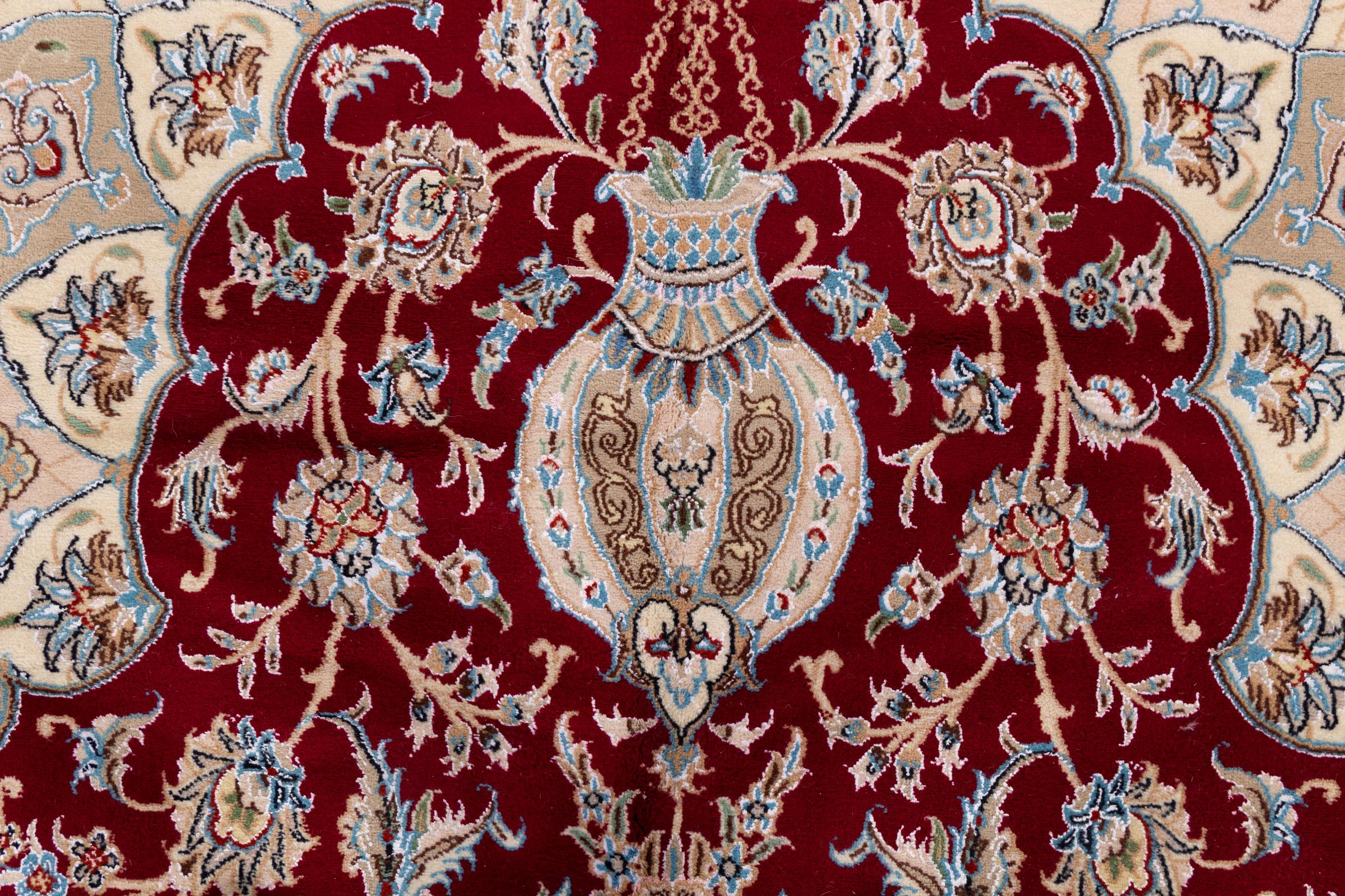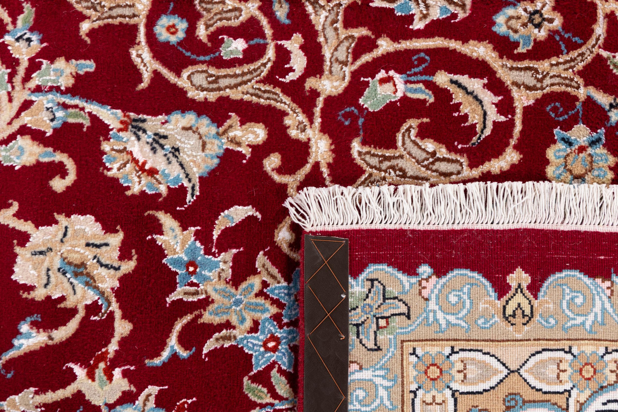 Les tapis de la ville de Nain, à la frontière de l'un des plus grands déserts d'Iran, comptent parmi les plus célèbres tapis persans du monde. Leur design typique est sans équivoque avec des ornements floraux, un médaillon central et des nuances de beige et de rouge ou de bleu. Grâce à leurs désignations 4La, 6La, 9La et 12La, les finesses d'un tapis Nain peuvent être vues d'un seul coup d'œil. Plus le chiffre "La" est bas, plus la densité des nœuds est élevée et donc plus le tapis est fin.