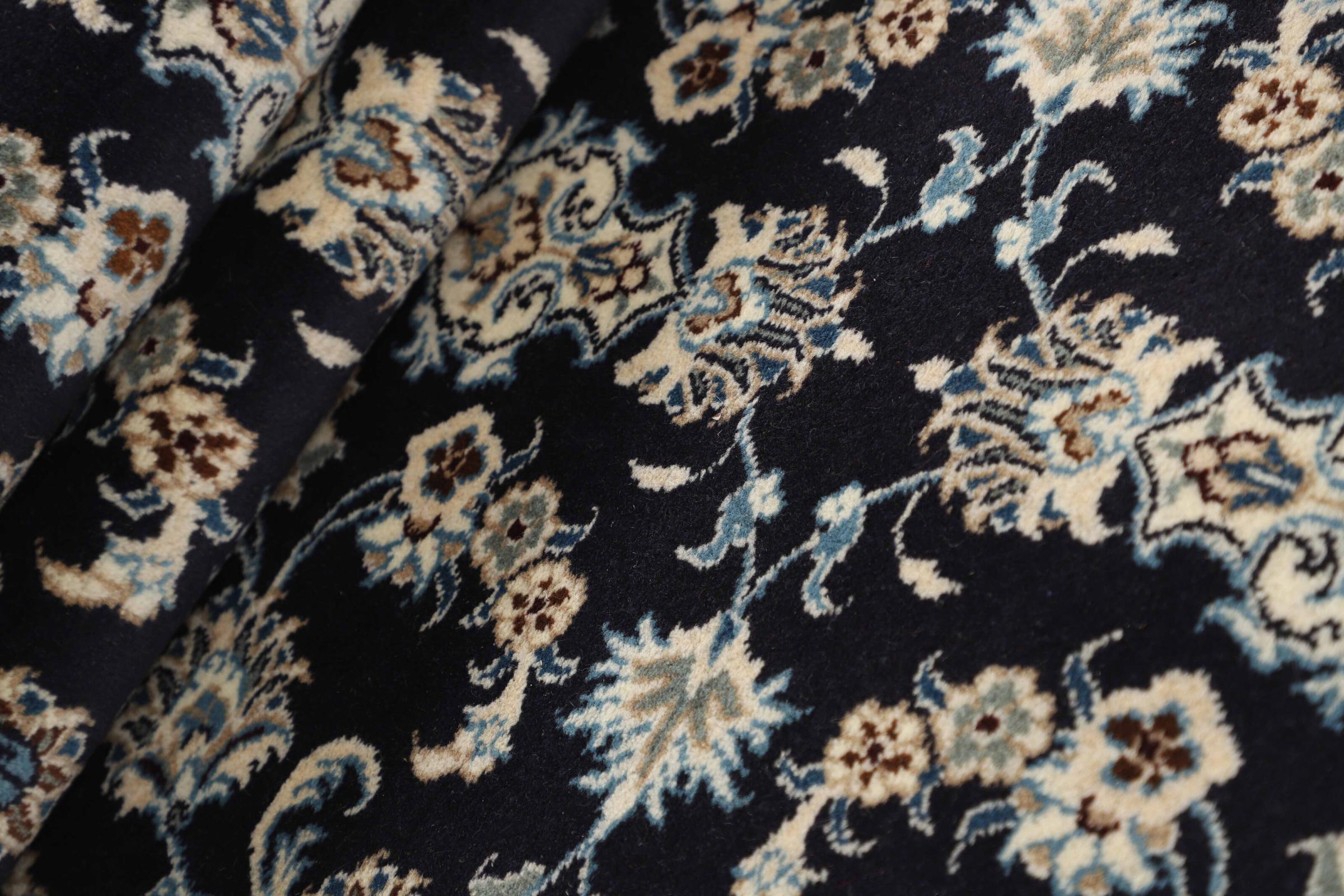 Les tapis de la ville de Nain, à la frontière de l'un des plus grands déserts d'Iran, comptent parmi les plus célèbres tapis persans du monde. Leur design typique est sans équivoque avec des ornements floraux, un médaillon central et des nuances de beige et de rouge ou de bleu. Grâce à leurs désignations 4La, 6La, 9La et 12La, les finesses d'un tapis Nain peuvent être vues d'un seul coup d'œil. Plus le chiffre "La" est bas, plus la densité des nœuds est élevée et donc plus le tapis est fin.