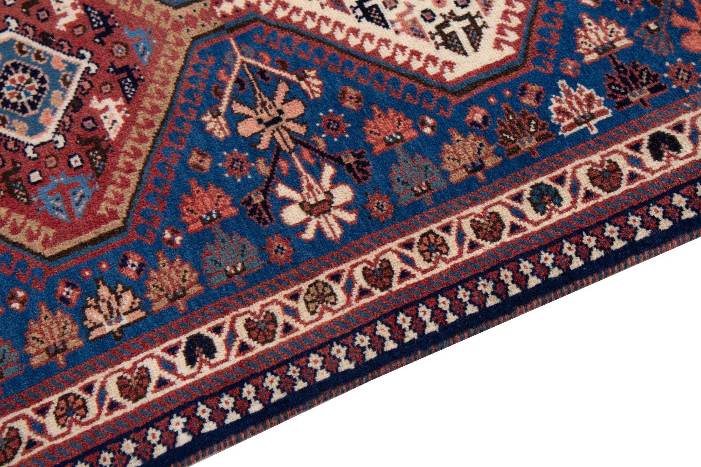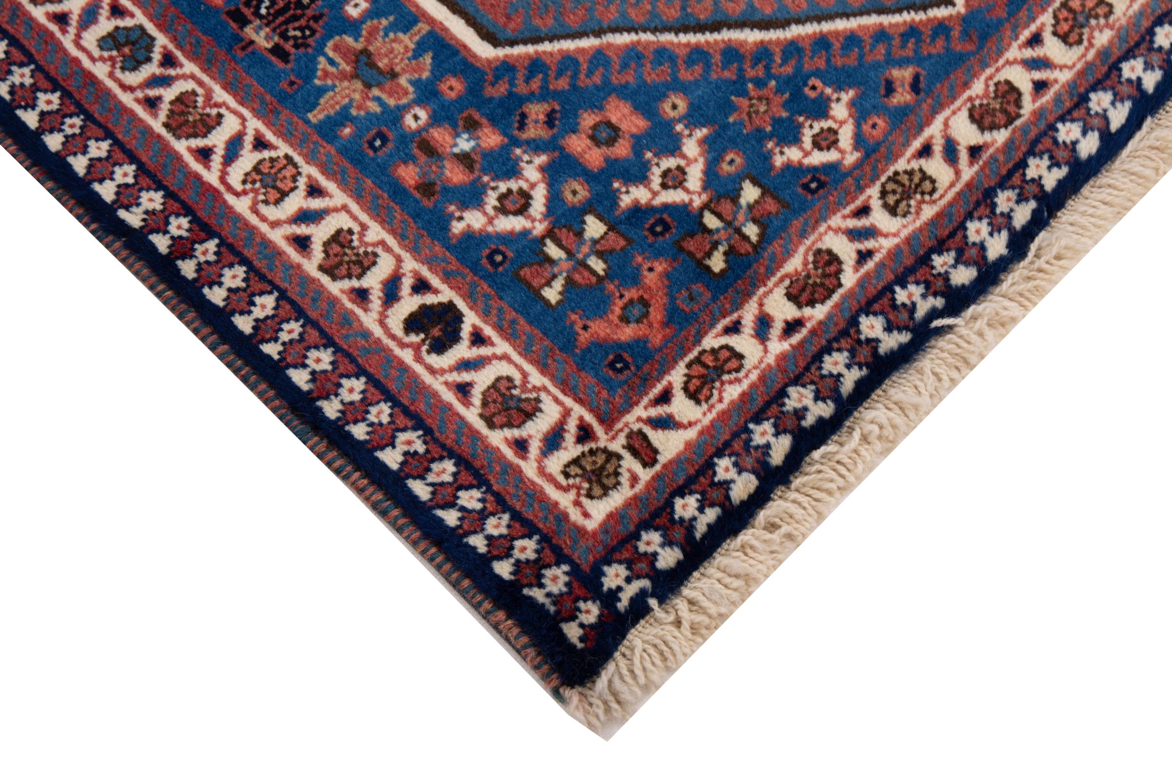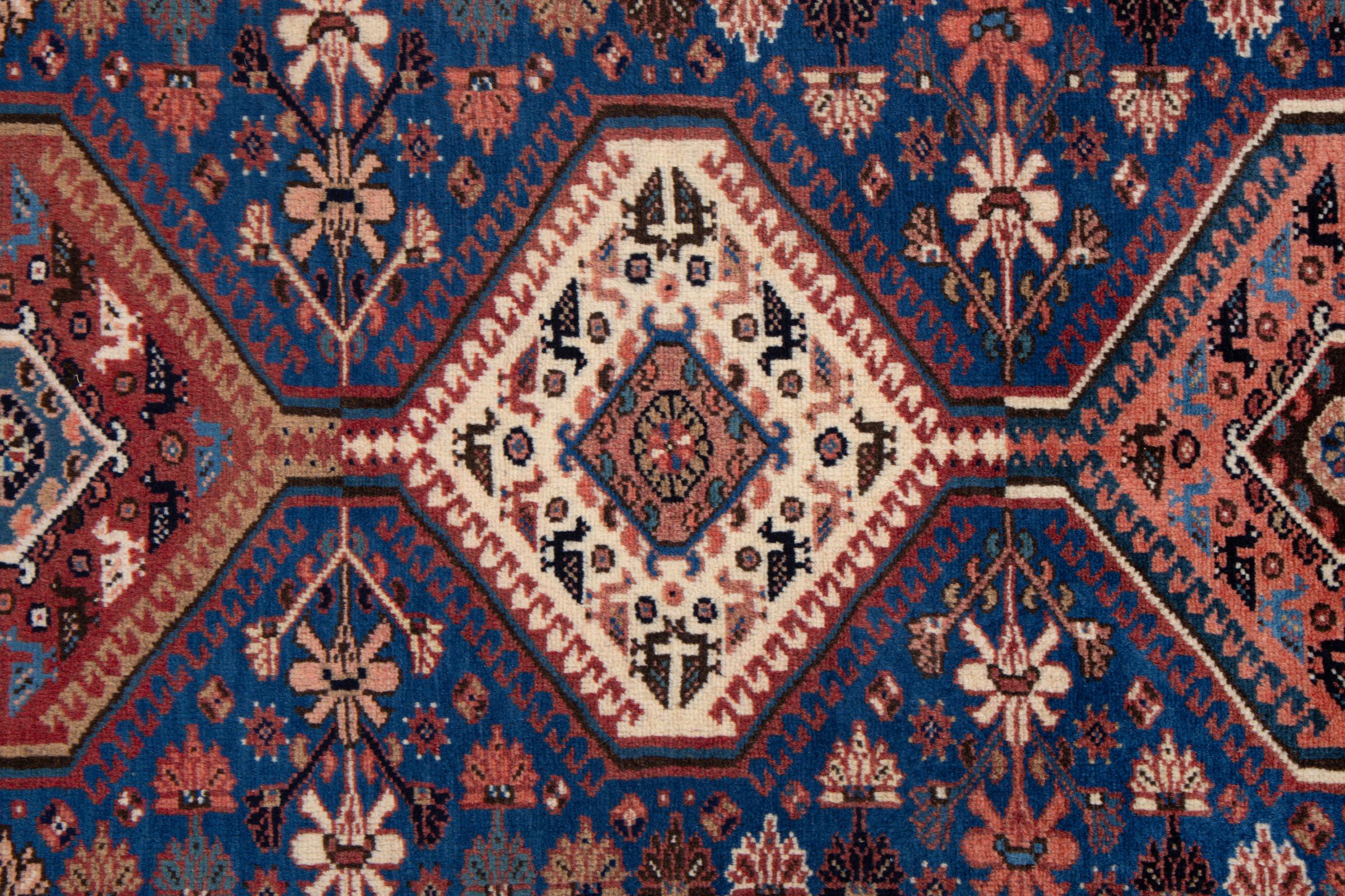 Ce tapis appartient aux tapis de village et de nomade d'Iran, anciennement la Perse. Ce type de tapis est noué à la main dans les petites villes et les villages selon l'ancienne tradition. Même les nomades nouent encore des tapis persans en plein air. Les tapis sont noués sans schéma et entièrement à partir de la tête. Ils se caractérisent par des ornements classiques, qui sont disposés en motifs droits et géométriques. Grâce à leur origine culturelle et traditionnelle, ces tapis ont un caractère unique qui incarne la Perse ancienne.