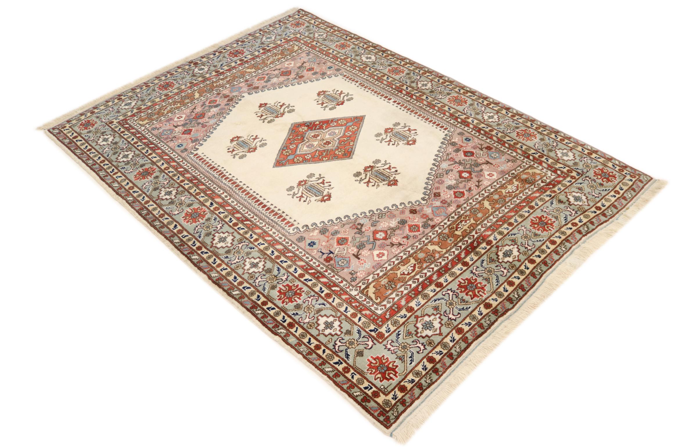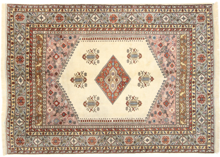 Ce tapis appartient aux tapis de village et de nomade d'Iran, anciennement la Perse. Ce type de tapis est noué à la main dans les petites villes et les villages selon l'ancienne tradition. Même les nomades nouent encore des tapis persans en plein air. Les tapis sont noués sans schéma et entièrement à partir de la tête. Ils se caractérisent par des ornements classiques, qui sont disposés en motifs droits et géométriques. Grâce à leur origine culturelle et traditionnelle, ces tapis ont un caractère unique qui incarne la Perse ancienne.