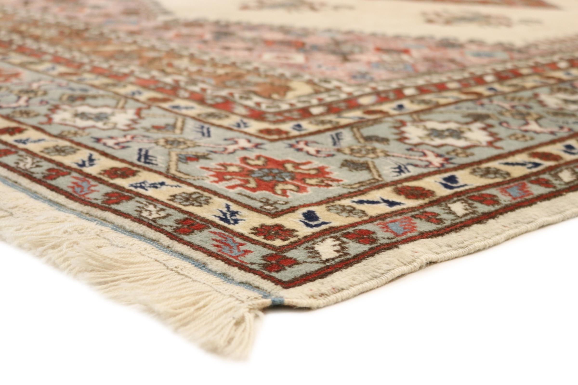 Ce tapis Heris est un parfait exemple de l’artisanat persan. Son design rustique garantit sa durabilité. Il est fabriqué dans la ville de Heris, près de la ville de Tebruz au nord-ouest de l’Iran. Evidemment, il est noué à la main. Quiconque recherchant un tapis persan durable dans le temps trouvera son bonheur avec un tapis Heris. Cmmandez ce tapis directement et laissez l’Orient entrer chez vous.