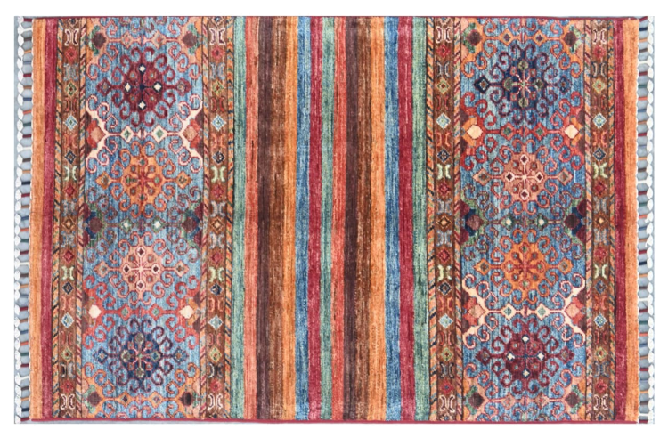 Réf. Article: 305771002979353 Taille: 127x80 cm Épaisseur: ap. 5 mm Densité de nouage: 144 000 - 180 000 / m² Fabrication: Noué à la main Velours: Laine filée à la main Chaîne: Coton Origine: Pakistan Âge: Nouveau Poids: ap. 4 kg Nombre en stock: Unique - Seulement 1 en stock