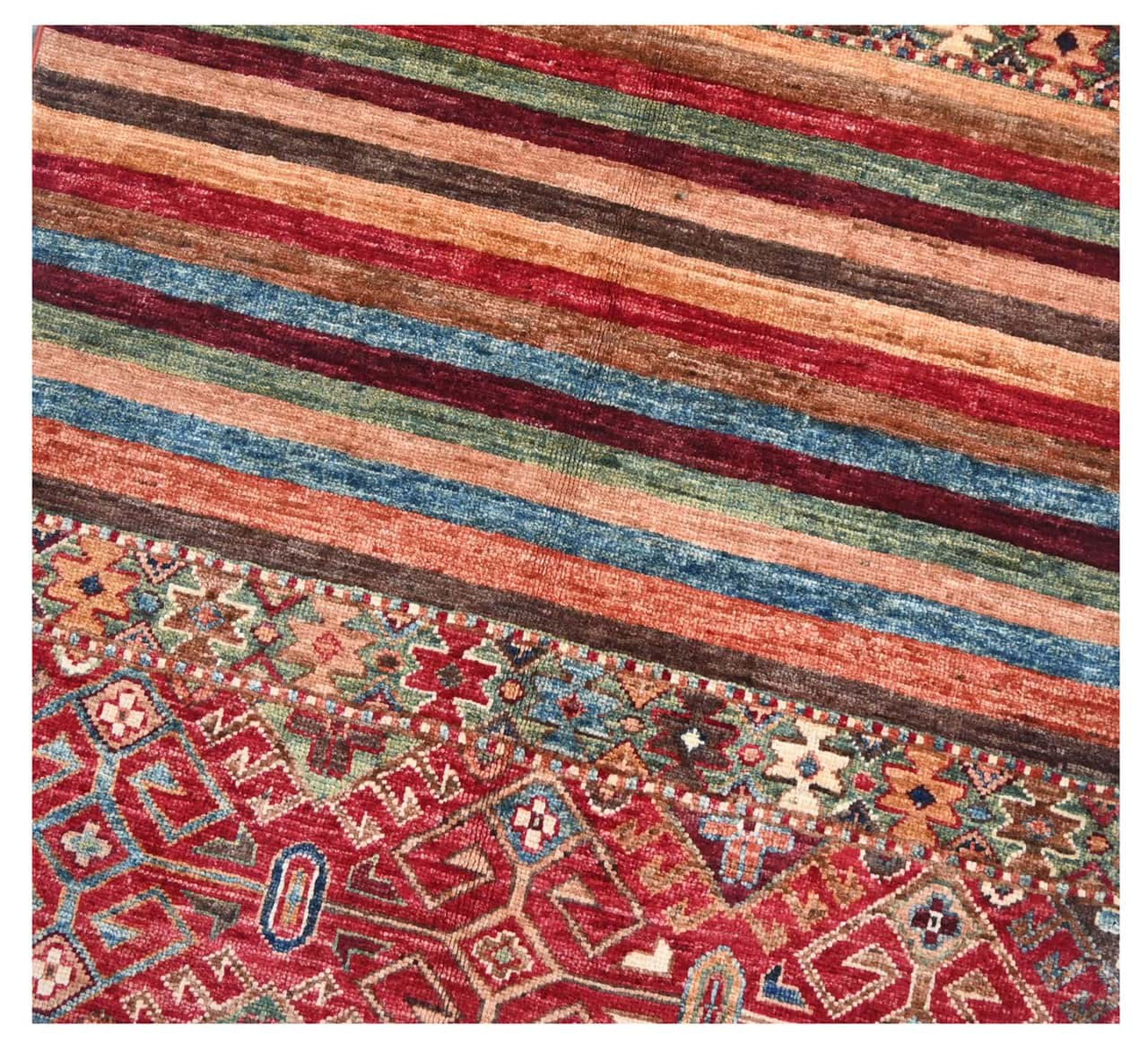 Ce tapis Arijana Shaal a été noué à la main au Pakistan avec le meilleur savoir-faire. Il promet une très grande qualité et offre donc un plaisir durable. Le motif en rayures est varié et passionnant. Il s'inspire du célèbre dessin de Moharamati. Si les tapis monochromes sont trop ennuyeux pour vous, vous serez certainement ravi de cette Arijana Shaal.