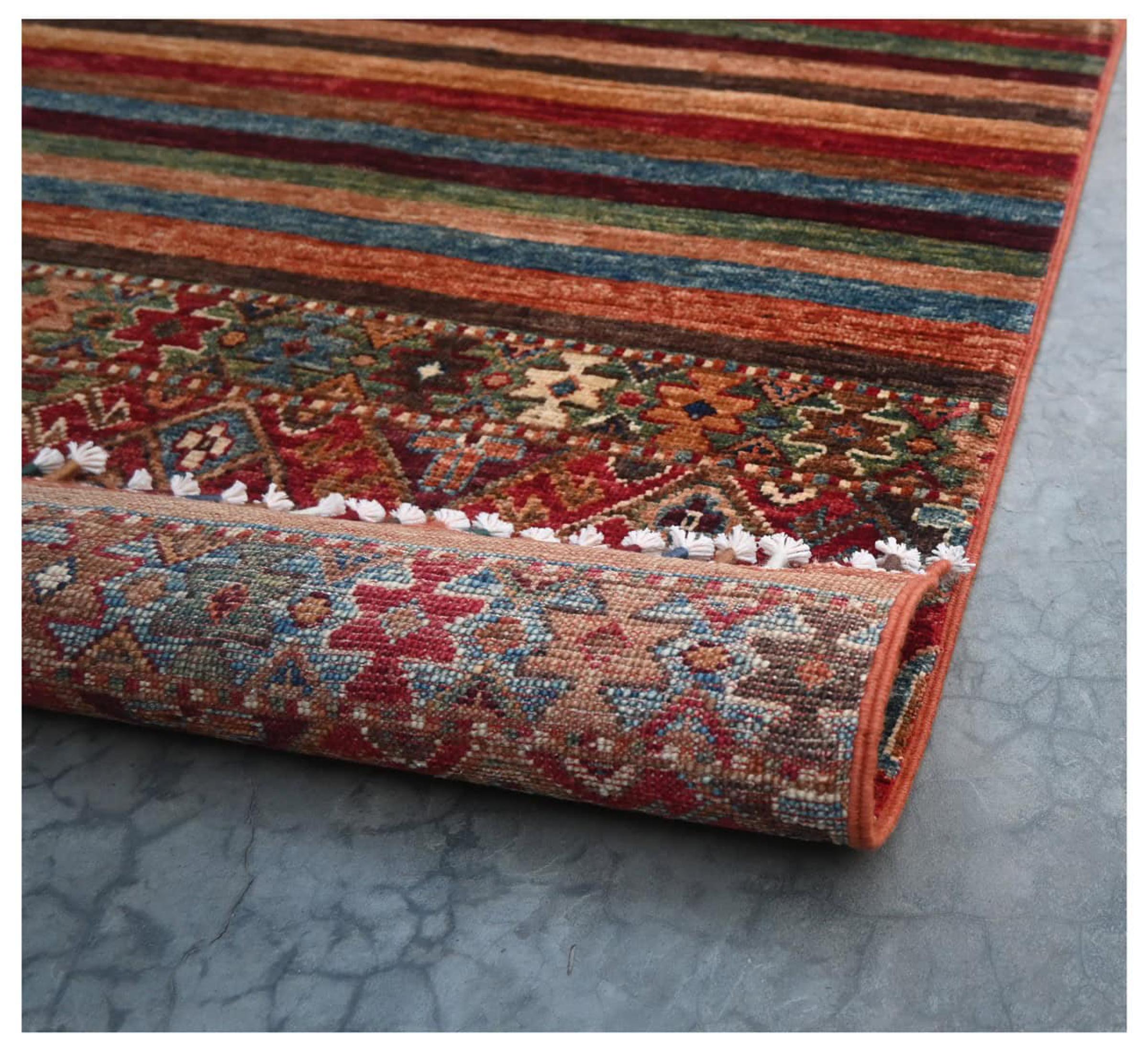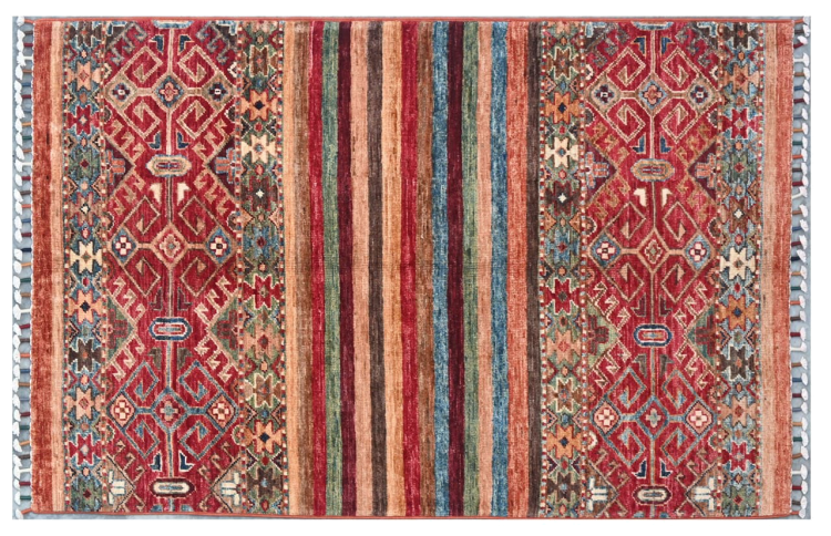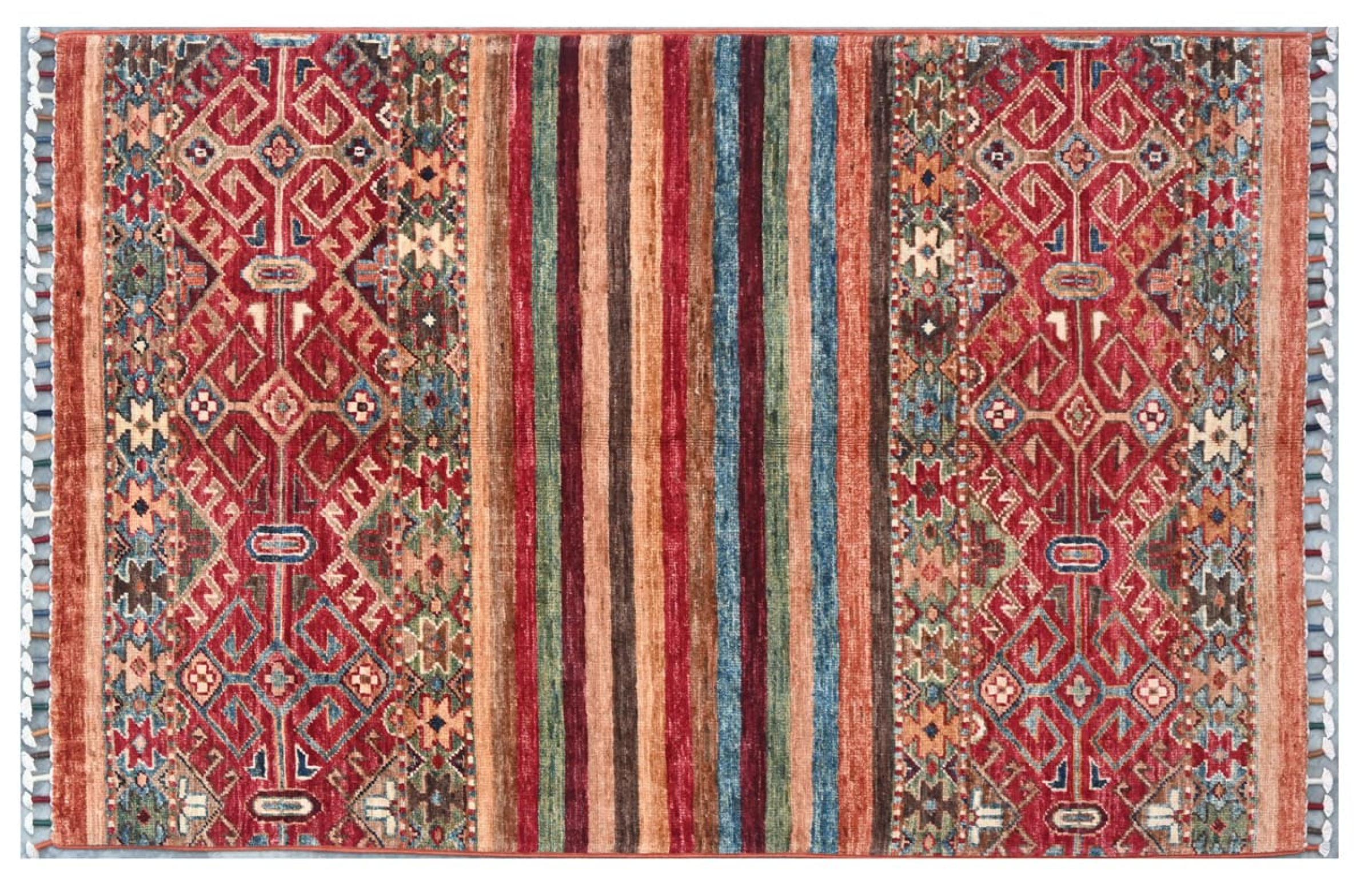 Réf. Article: 305772009019168 Taille: 129x81 cm Épaisseur: ap. 5 mm Densité de nouage: 144 000 - 180 000 / m² Fabrication: Noué à la main Velours: Laine filée à la main Chaîne: Coton Origine: Pakistan Âge: Nouveau Poids: ap. 4 kg Nombre en stock: Unique - Seulement 1 en stock