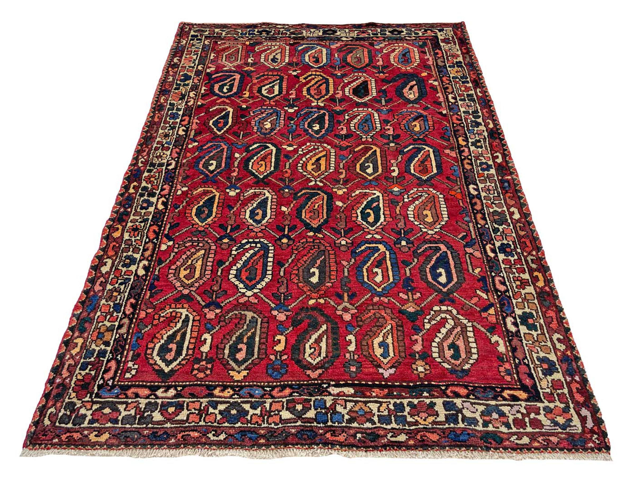 Réf. Article: 318642003498707 Taille: 229x157 cm Épaisseur: ap. 12 mm Densité de nouage: 128 000 - 160 000 / m² Fabrication: Noué à la main Velours: Laine filée à la main Chaîne: Coton Origine: Persie / Iran Âge: Nouveau Poids: ap. 14 kg Également connu sous Baktjar Nombre en stock: Unique - Seulement 1 en stock