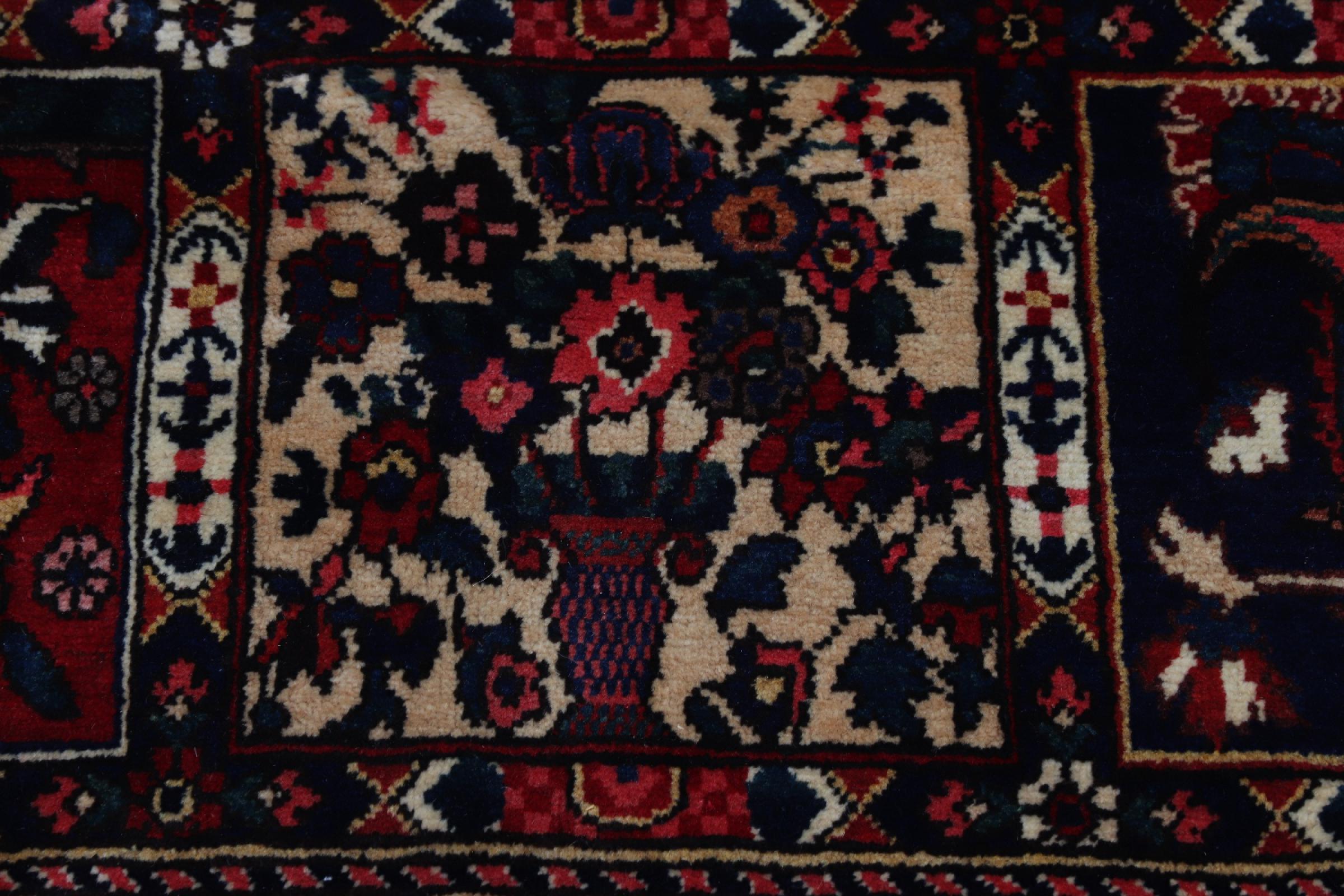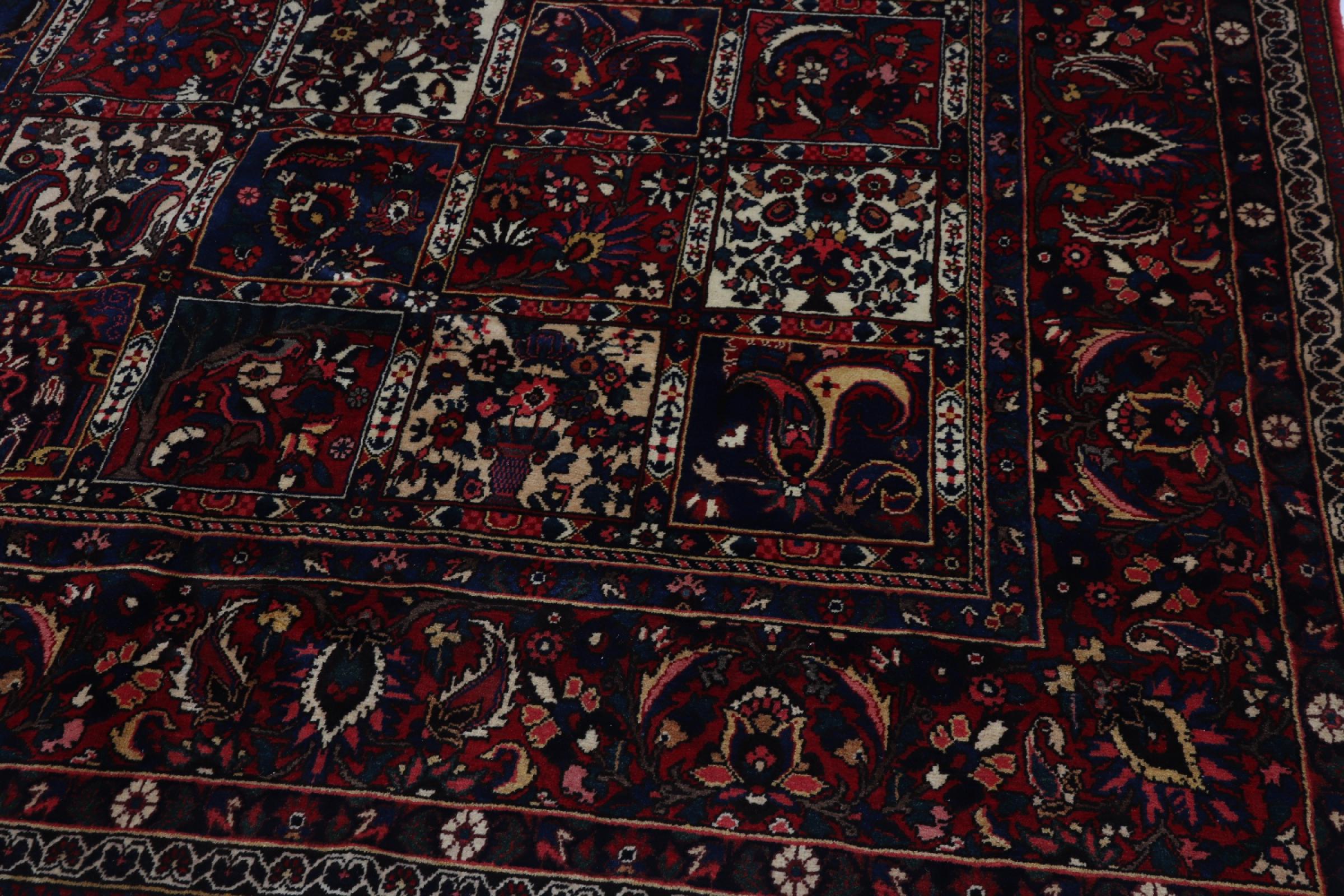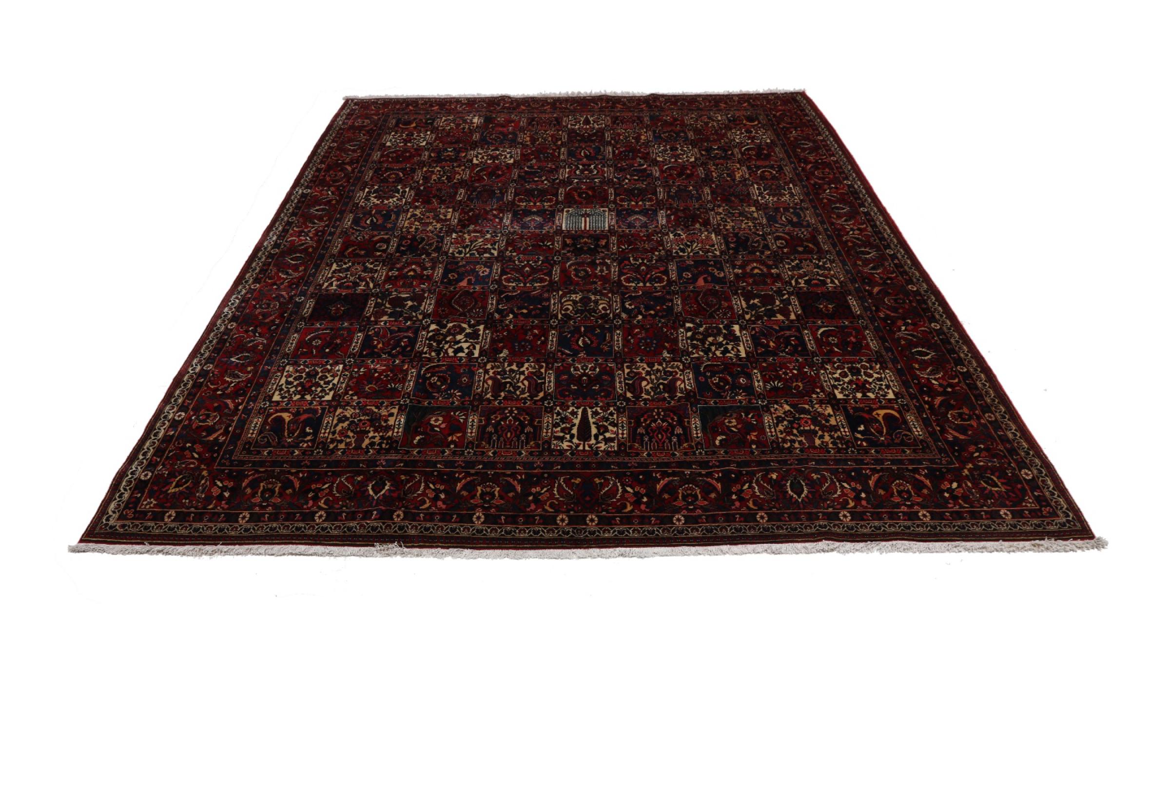 Ce Bakhtiar persan a été noué à la main par les nomades de la tribu Bakhtiari. Ce tapis persan joue avec les couleurs de l'Orient dans les plus beaux motifs. Le design de ses ornements s'inspire des jardins persans. Au fil des ans, la conception dite traditionnelle des jardins a gagné en popularité dans le monde occidental. Sa haute densité de nouage, combinée à la solidité du fil, promet un plaisir durable de l'art du tapis persan.