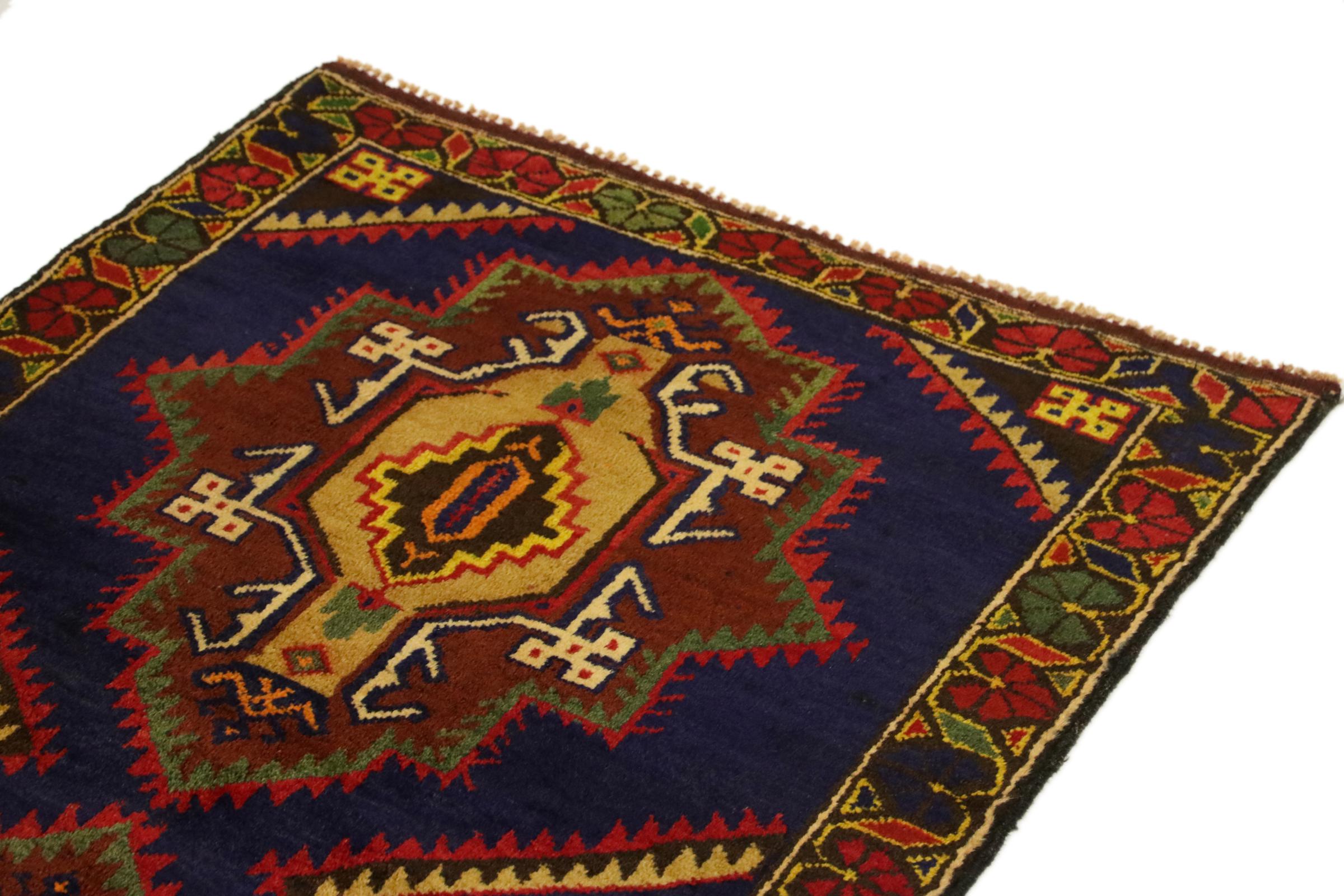 Ce tapis appartient aux tapis de village et de nomade d'Iran, anciennement la Perse. Ce type de tapis est noué à la main dans les petites villes et les villages selon l'ancienne tradition. Même les nomades nouent encore des tapis persans en plein air. Les tapis sont noués sans schéma et entièrement à partir de la tête. Ils se caractérisent par des ornements classiques, qui sont disposés en motifs droits et géométriques. Grâce à leur origine culturelle et traditionnelle, ces tapis ont un caractère unique qui incarne la Perse ancienne.