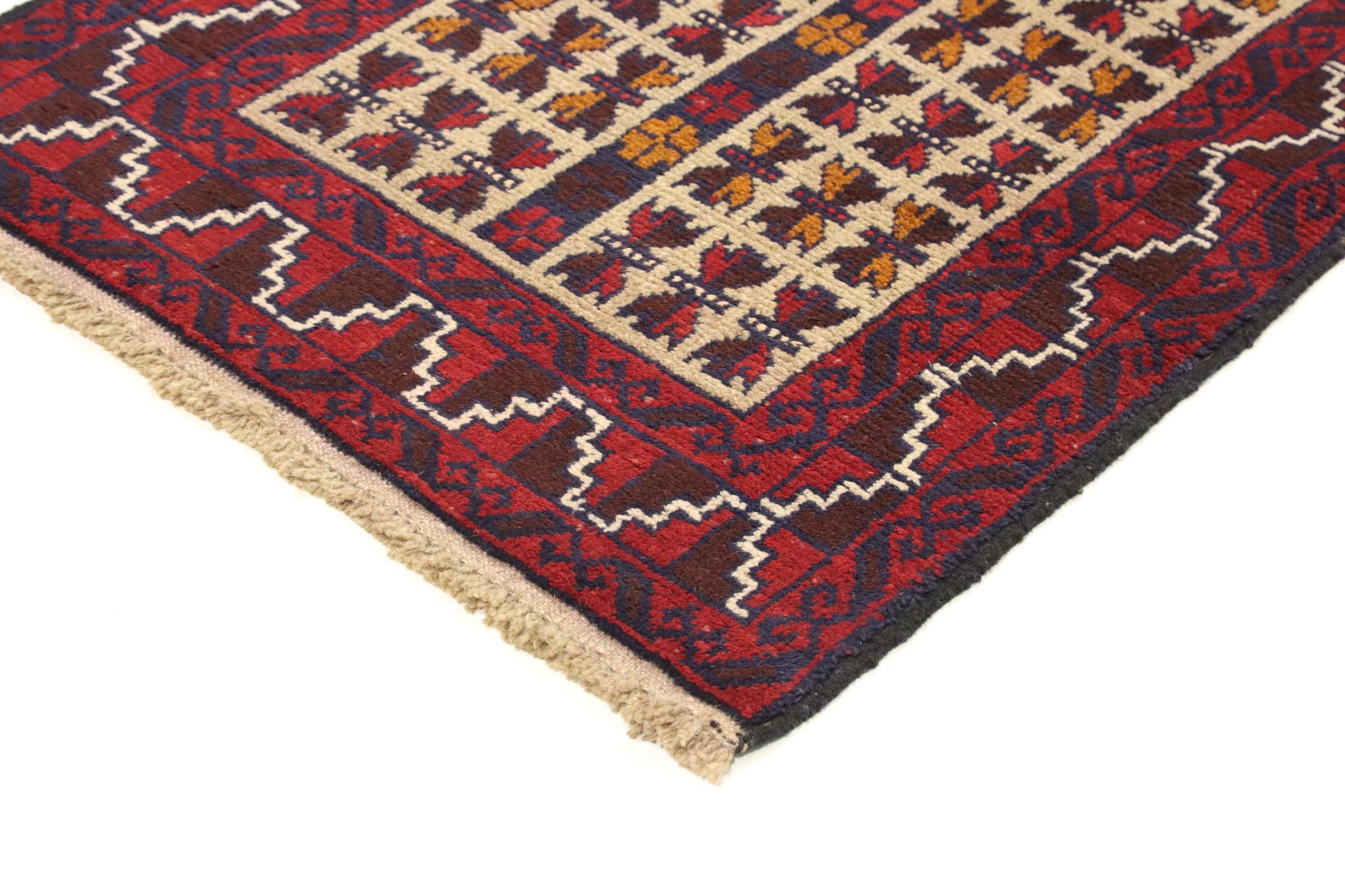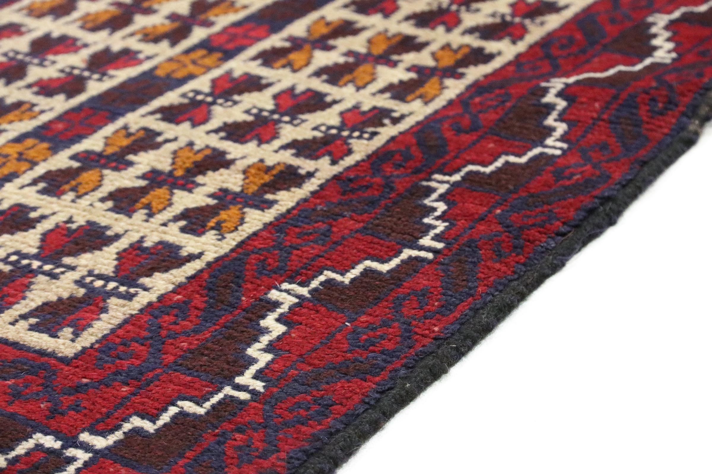 Ce tapis Baluch est un incroyable exemple de l’authentique art nomade. Ce tapis persan, fait au niveau de la frontière entre l’Iran et l’Afghanistan, sait comment vous convaincre grâce à son nouage dense et asymétrique. Les motifs vivants le rendent incroyable. Son merveilleux fil est la preuve de sa qualité et lui permet de résister au temps.