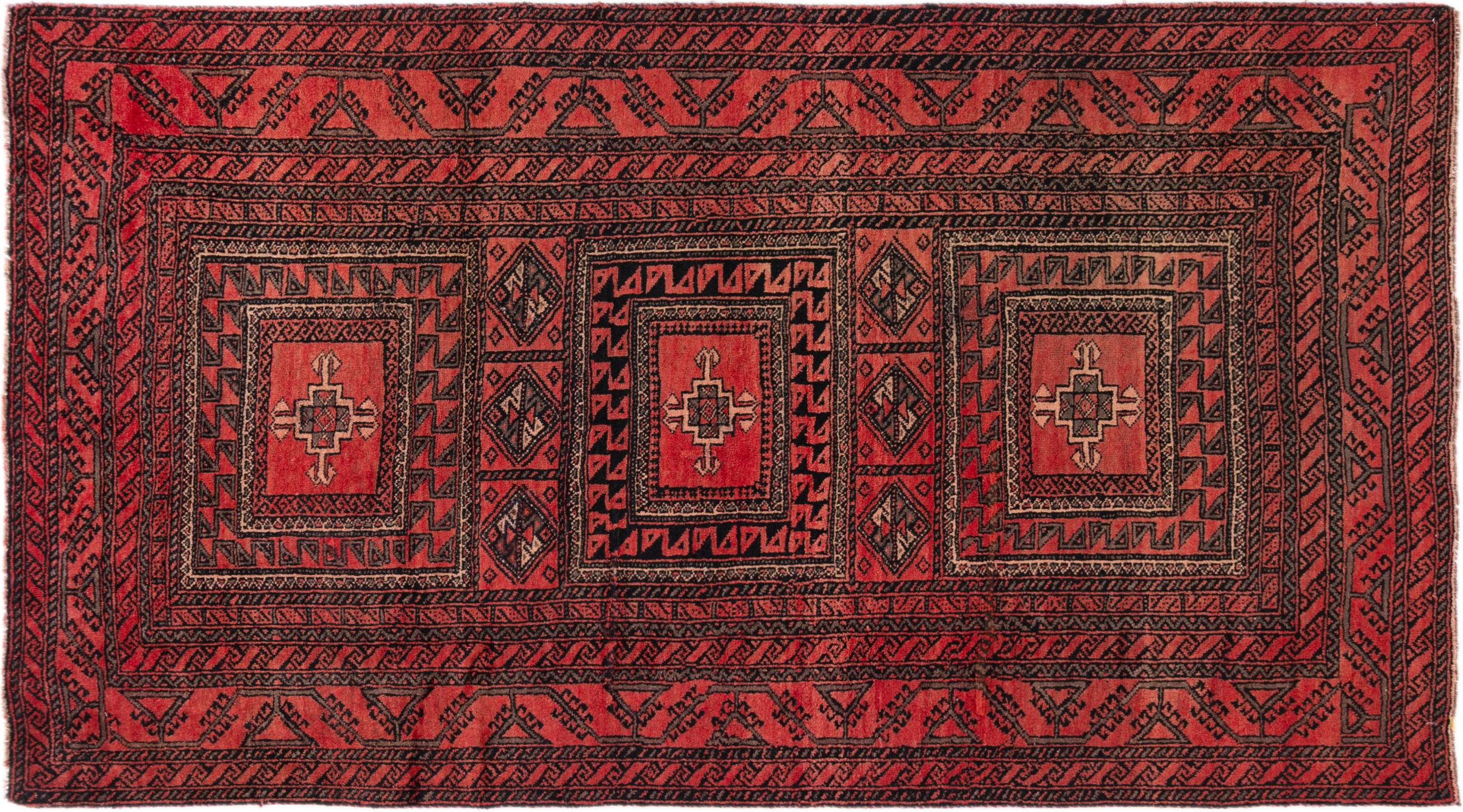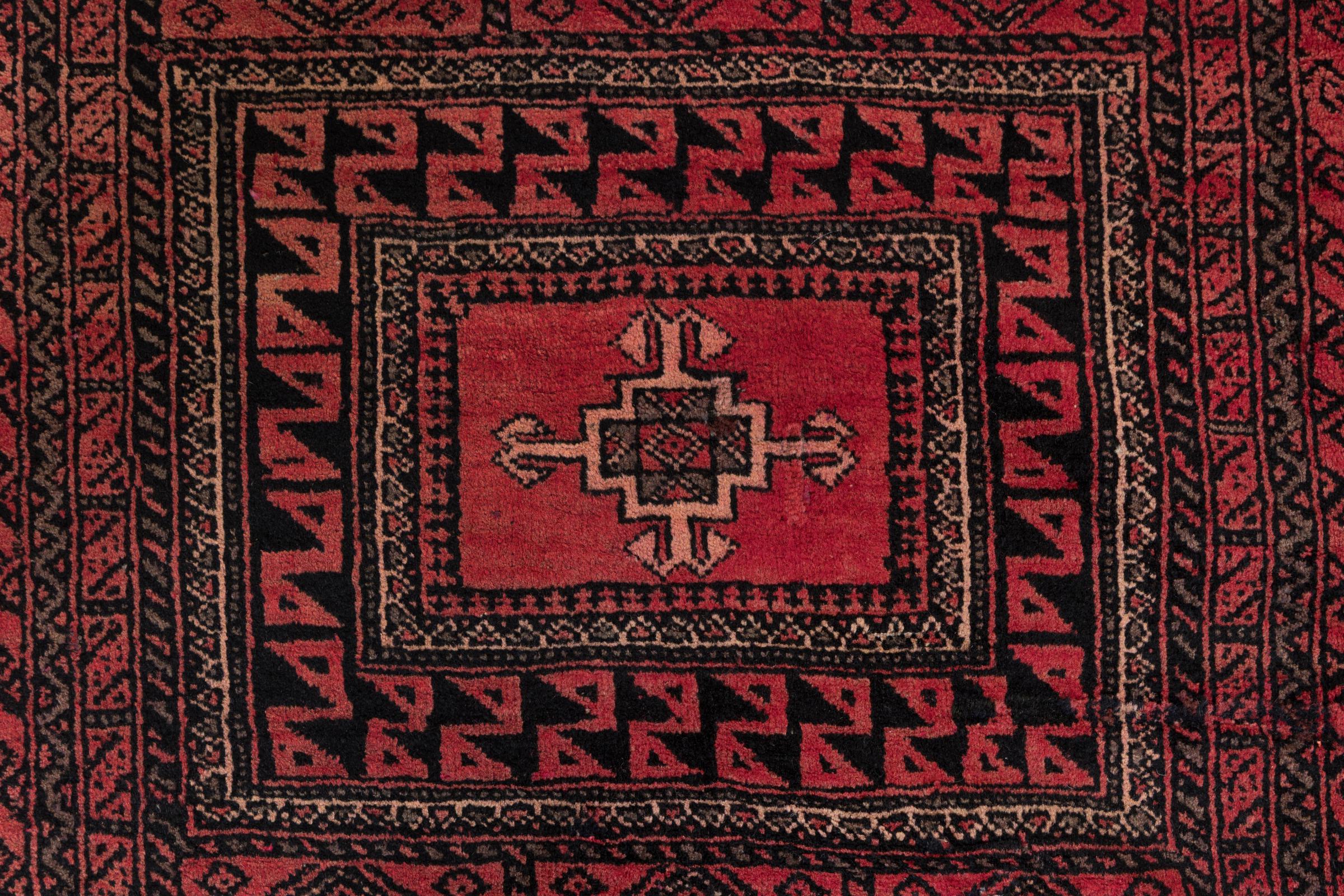 Ce tapis Baluch est un incroyable exemple de l’authentique art nomade. Ce tapis persan, fait au niveau de la frontière entre l’Iran et l’Afghanistan, sait comment vous convaincre grâce à son nouage dense et asymétrique. Les motifs vivants le rendent incroyable. Son merveilleux fil est la preuve de sa qualité et lui permet de résister au temps.