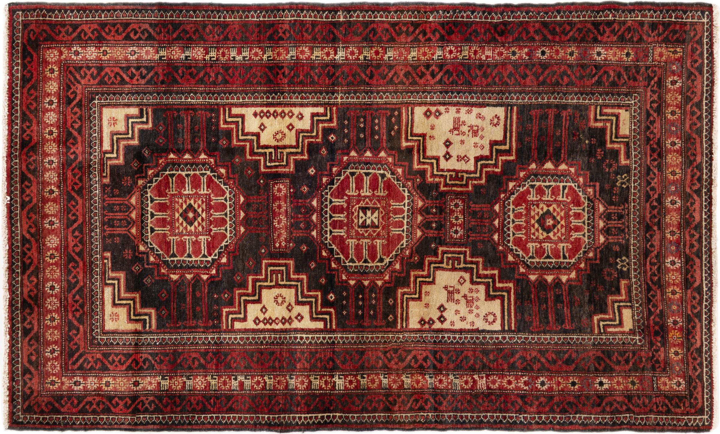 Ce tapis appartient aux tapis de village et de nomade d'Iran, anciennement la Perse. Ce type de tapis est noué à la main dans les petites villes et les villages selon l'ancienne tradition. Même les nomades nouent encore des tapis persans en plein air. Les tapis sont noués sans schéma et entièrement à partir de la tête. Ils se caractérisent par des ornements classiques, qui sont disposés en motifs droits et géométriques. Grâce à leur origine culturelle et traditionnelle, ces tapis ont un caractère unique qui incarne la Perse ancienne.