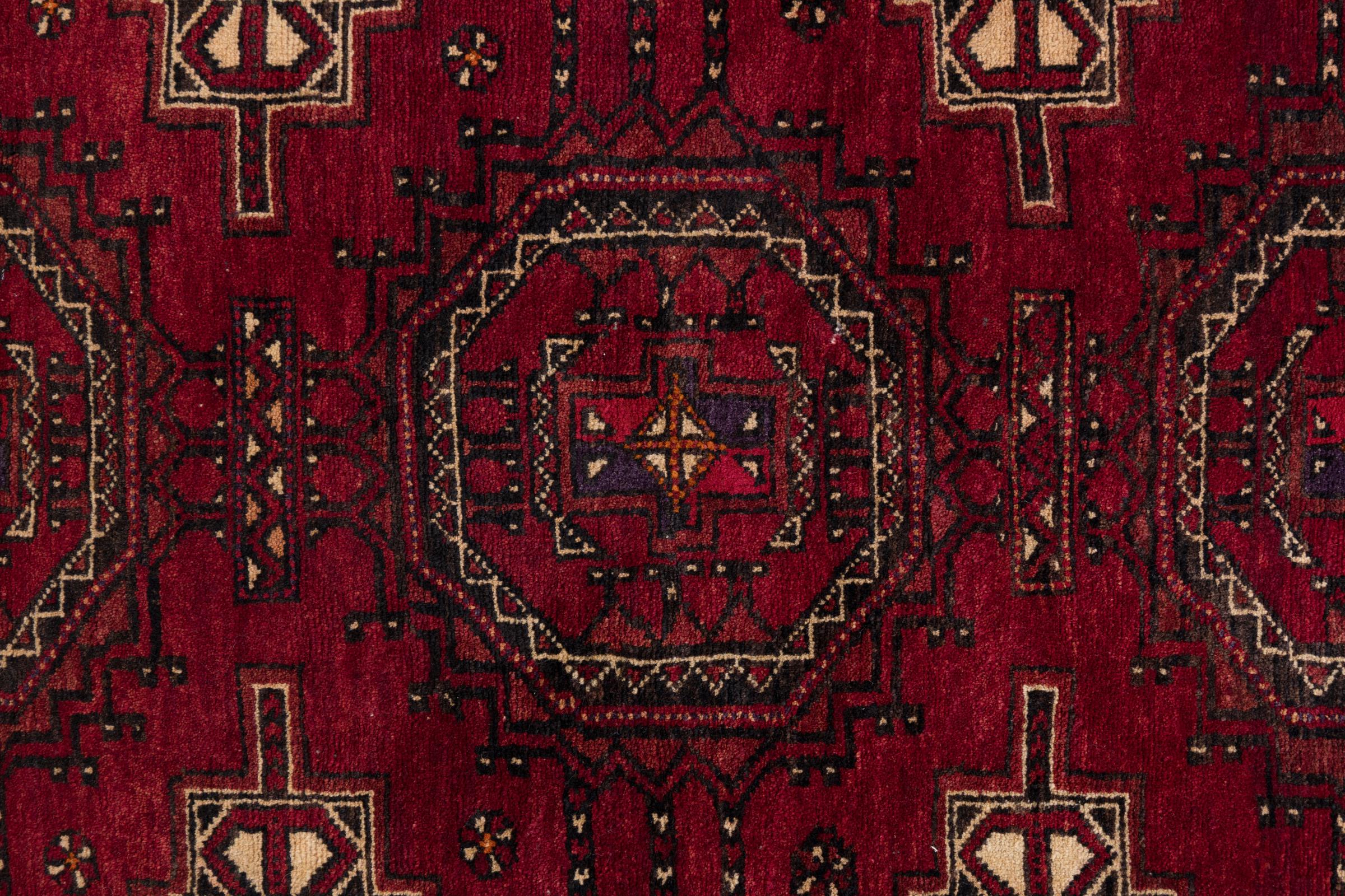 Ce tapis appartient aux tapis de village et de nomade d'Iran, anciennement la Perse. Ce type de tapis est noué à la main dans les petites villes et les villages selon l'ancienne tradition. Même les nomades nouent encore des tapis persans en plein air. Les tapis sont noués sans schéma et entièrement à partir de la tête. Ils se caractérisent par des ornements classiques, qui sont disposés en motifs droits et géométriques. Grâce à leur origine culturelle et traditionnelle, ces tapis ont un caractère unique qui incarne la Perse ancienne.