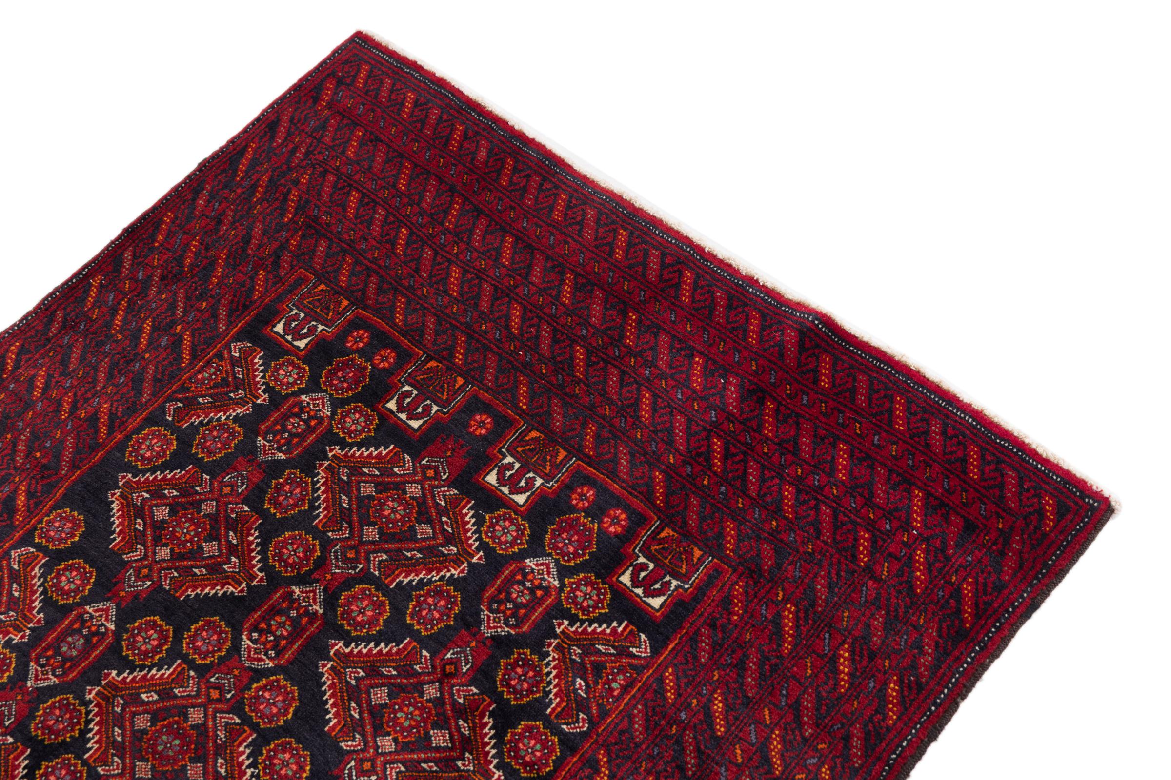 Ce tapis Baluch est un incroyable exemple de l’authentique art nomade. Ce tapis persan, fait au niveau de la frontière entre l’Iran et l’Afghanistan, sait comment vous convaincre grâce à son nouage dense et asymétrique. Les motifs vivants le rendent incroyable. Son merveilleux fil est la preuve de sa qualité et lui permet de résister au temps.