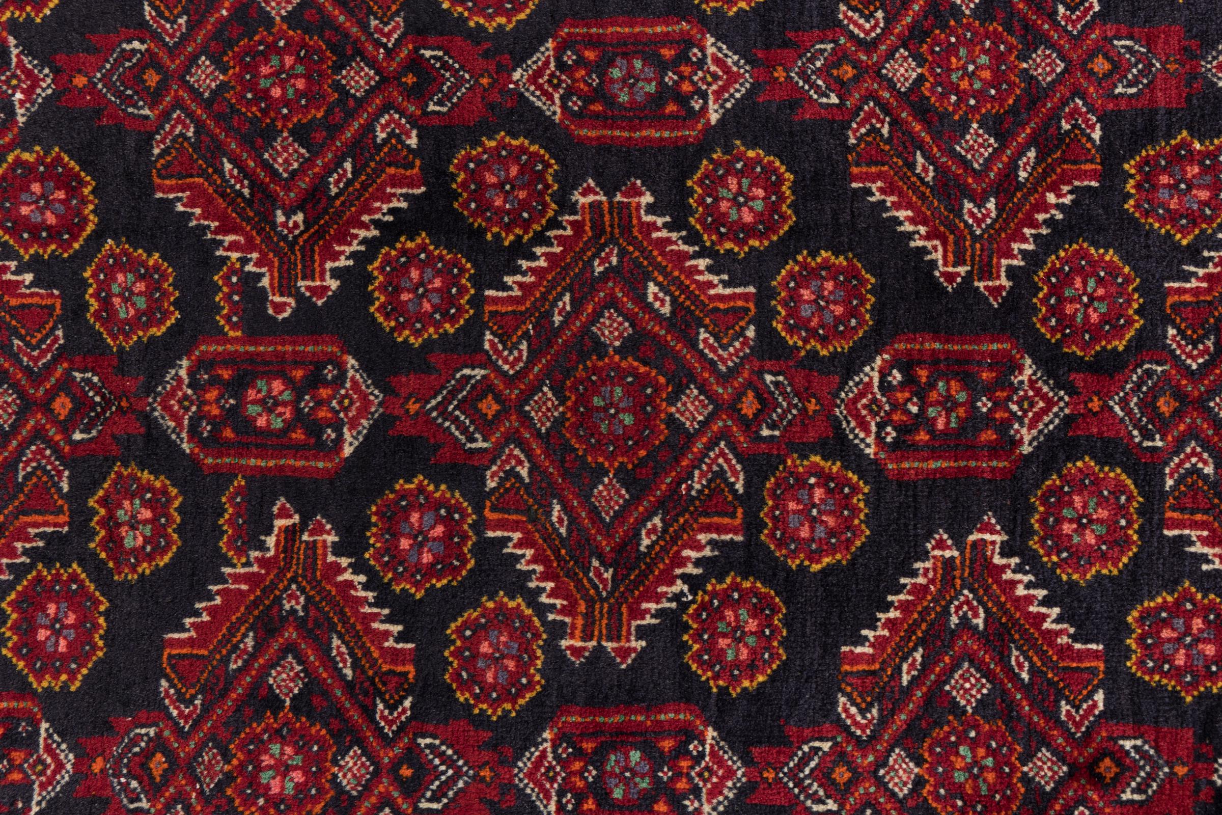 Ce tapis appartient aux tapis de village et de nomade d'Iran, anciennement la Perse. Ce type de tapis est noué à la main dans les petites villes et les villages selon l'ancienne tradition. Même les nomades nouent encore des tapis persans en plein air. Les tapis sont noués sans schéma et entièrement à partir de la tête. Ils se caractérisent par des ornements classiques, qui sont disposés en motifs droits et géométriques. Grâce à leur origine culturelle et traditionnelle, ces tapis ont un caractère unique qui incarne la Perse ancienne.