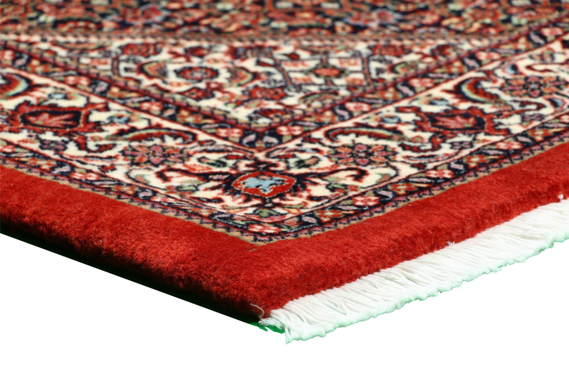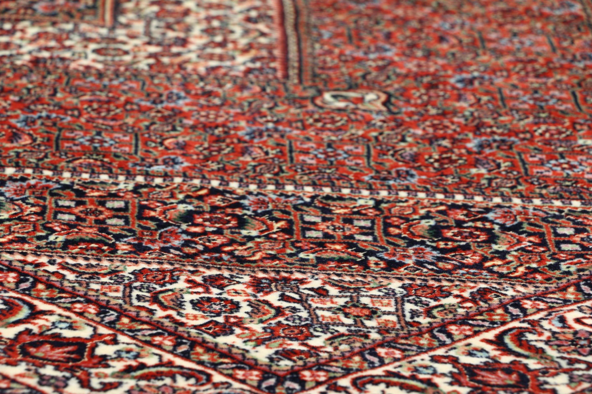 Ce tapis persan a été fabriqué dans une petite commune kurde à l’ouest de l’Iran. Les tapis Bidjar représentent la qualité. Son velours compact convainc de part sa densité importante et sa forte résistance. Vous pouvez en être certain : le tapis kurde est parfait. Et ce pour l’éternité.