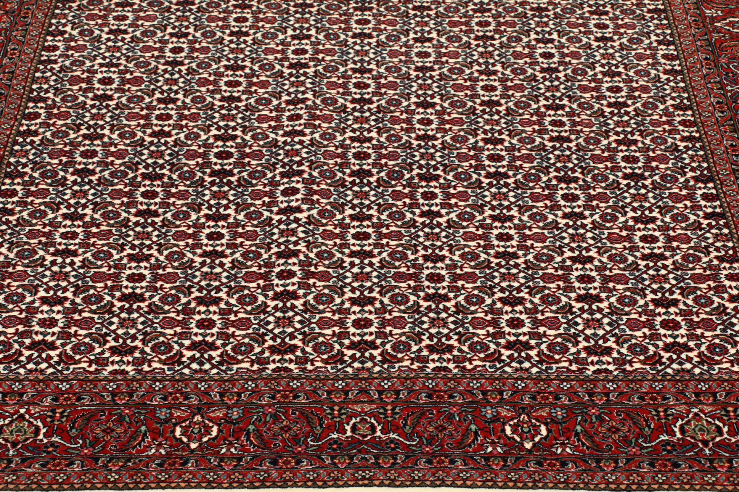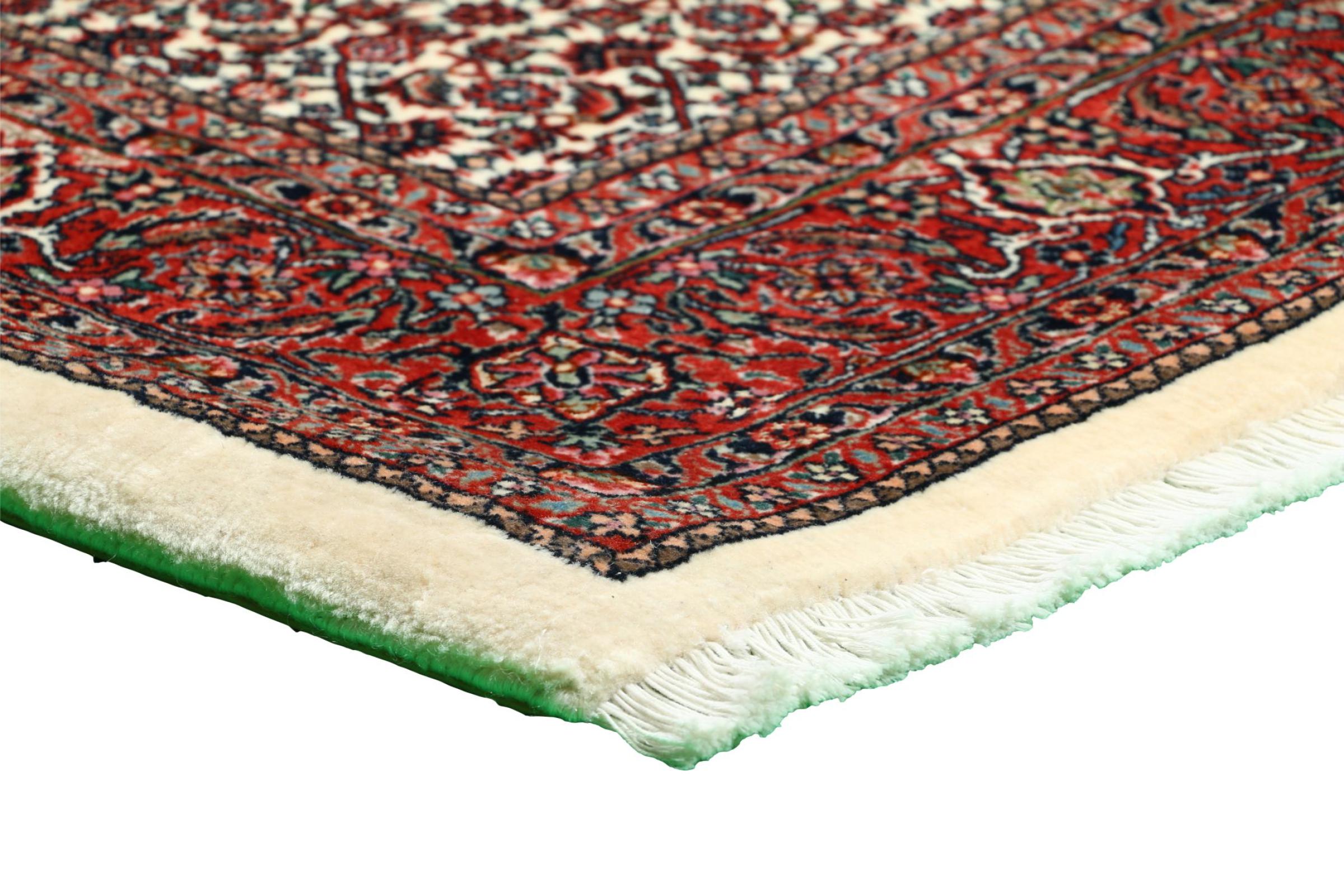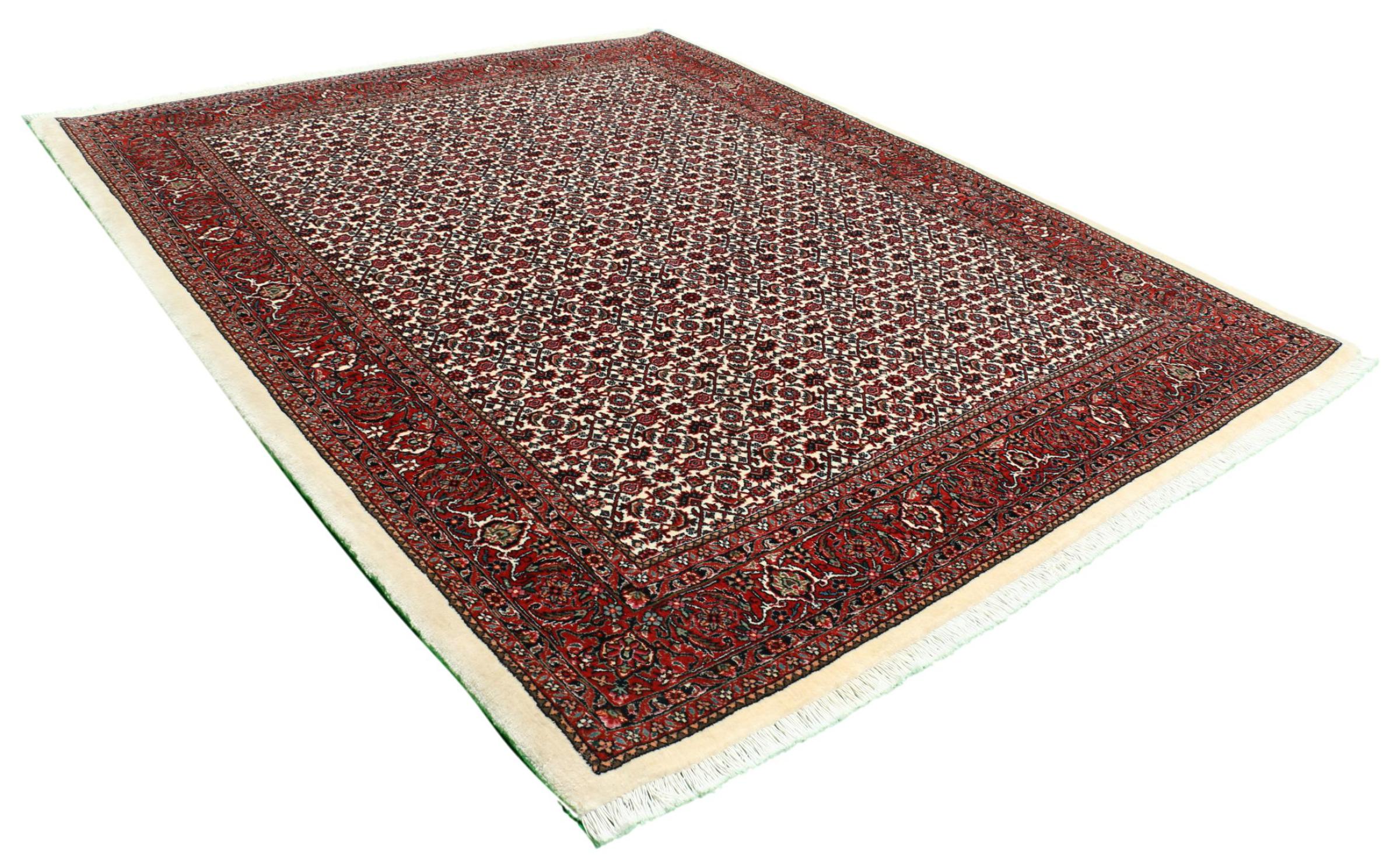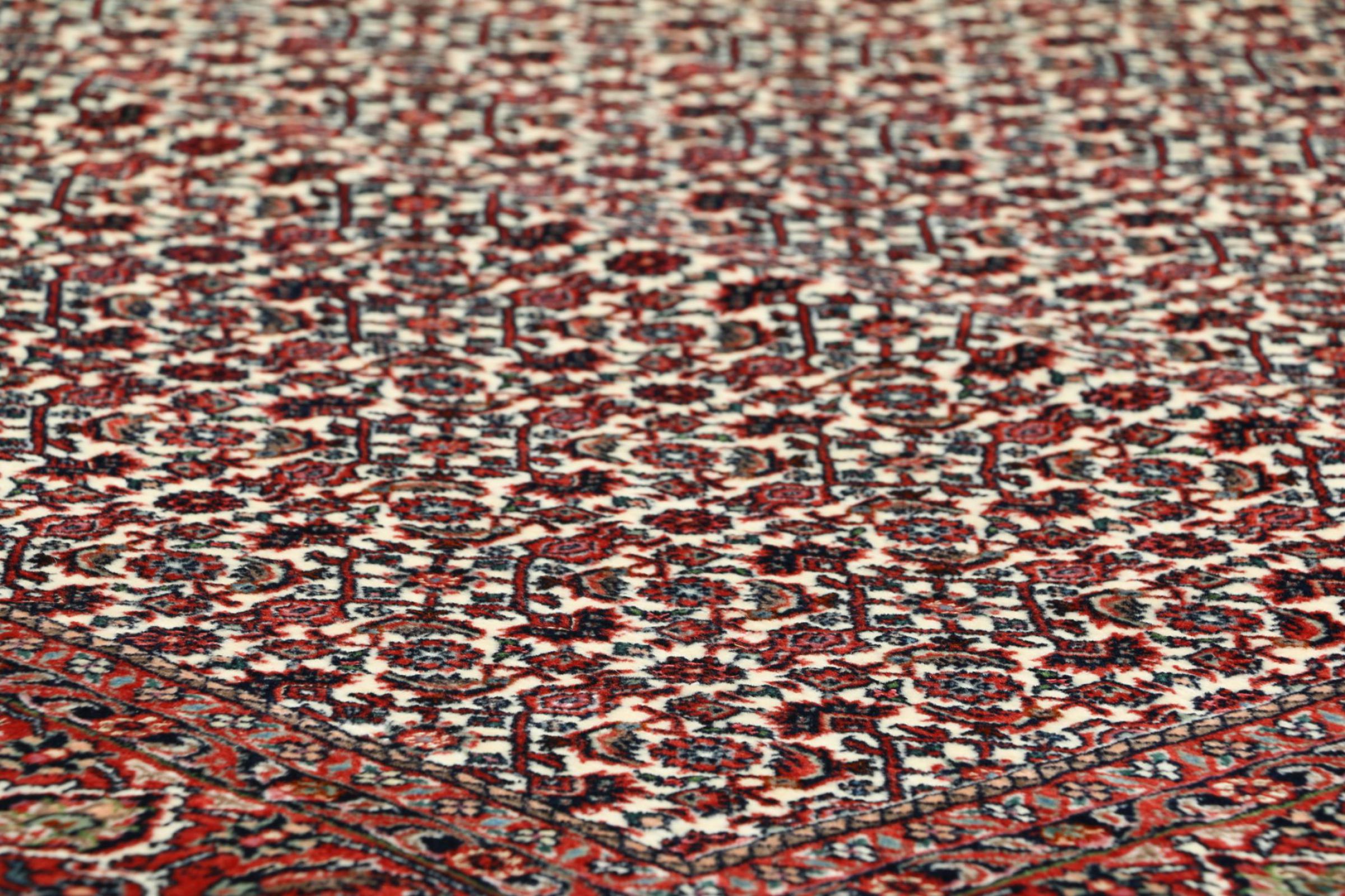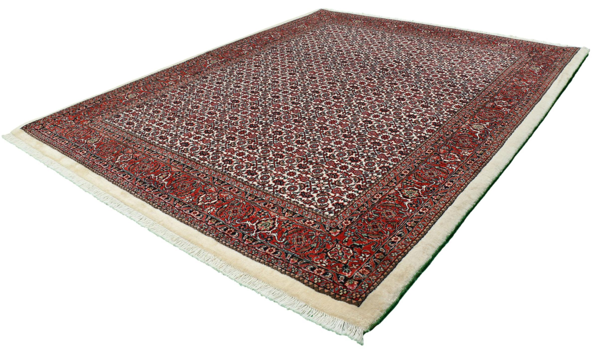 Ce tapis persan a été fabriqué dans une petite commune kurde à l’ouest de l’Iran. Les tapis Bidjar représentent la qualité. Son velours compact convainc de part sa densité importante et sa forte résistance. Vous pouvez en être certain : le tapis kurde est parfait. Et ce pour l’éternité.