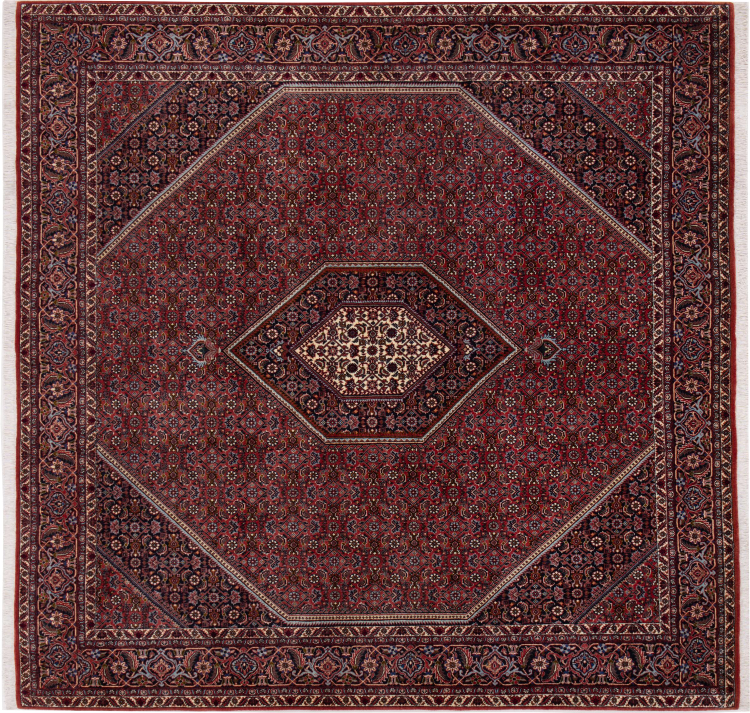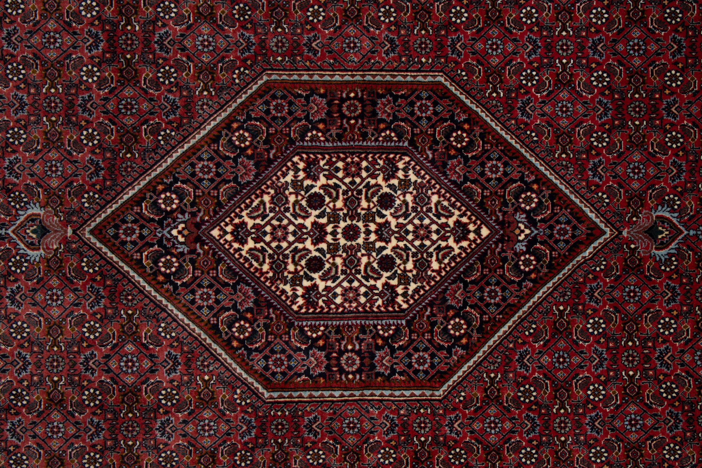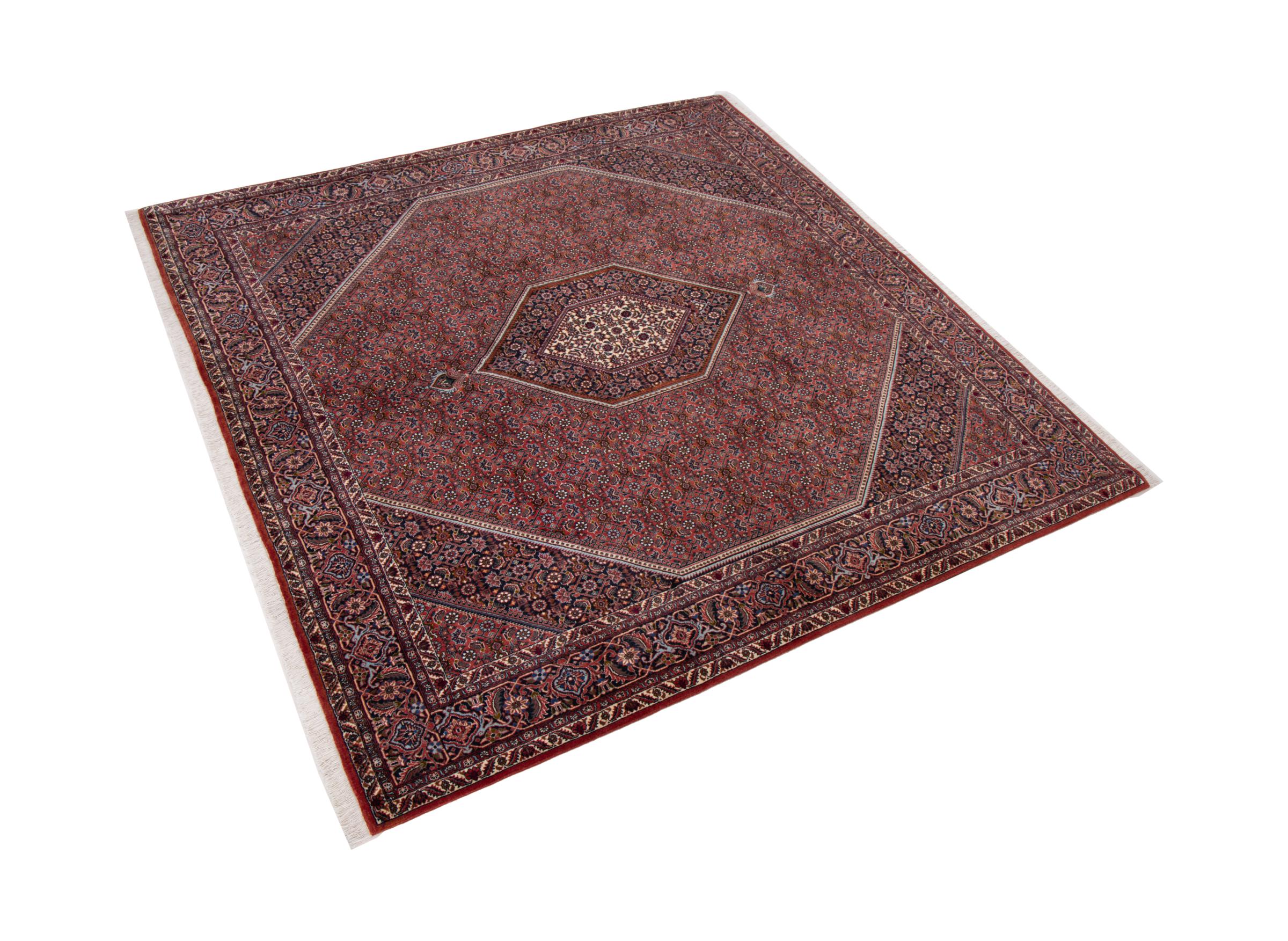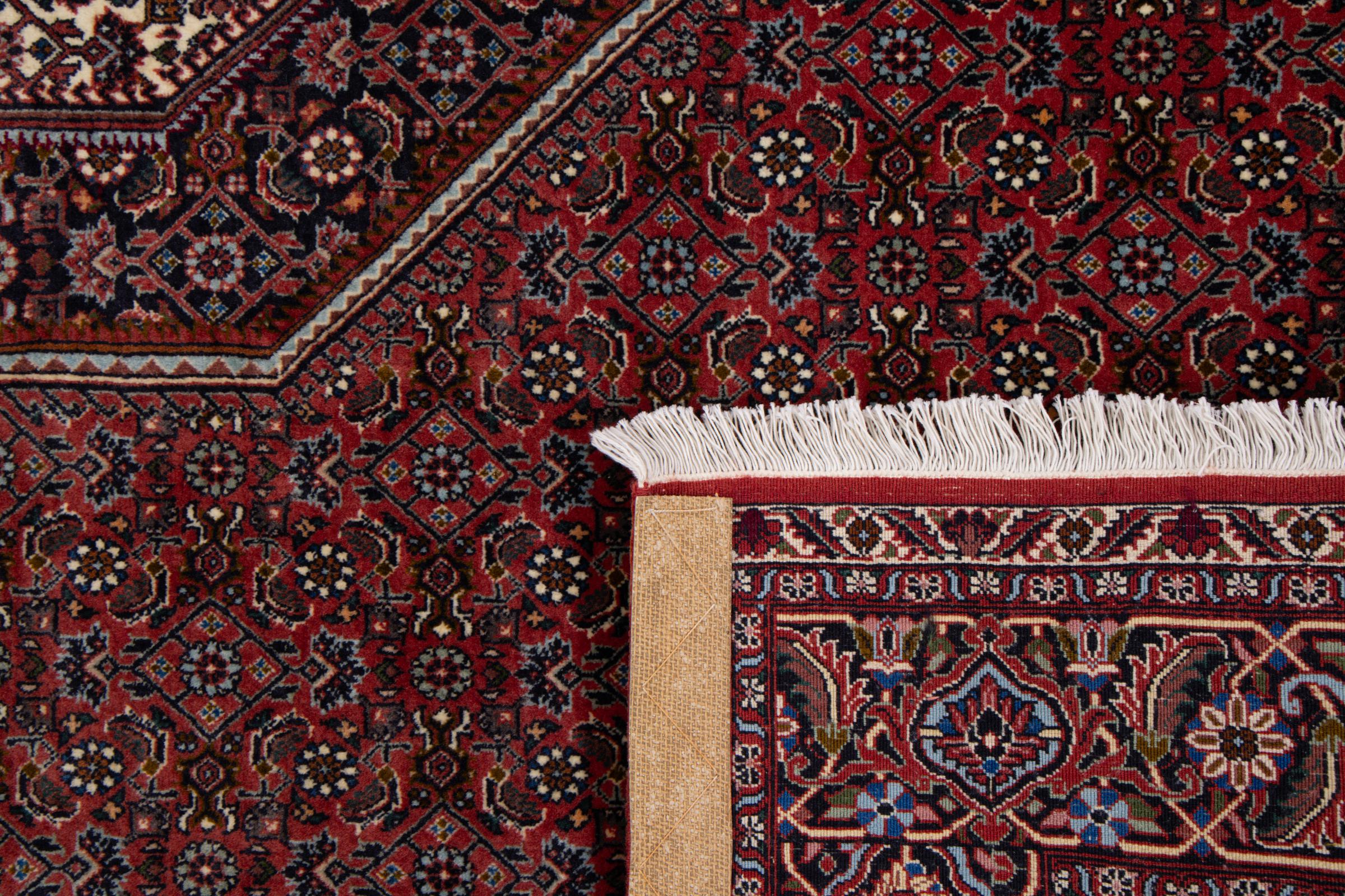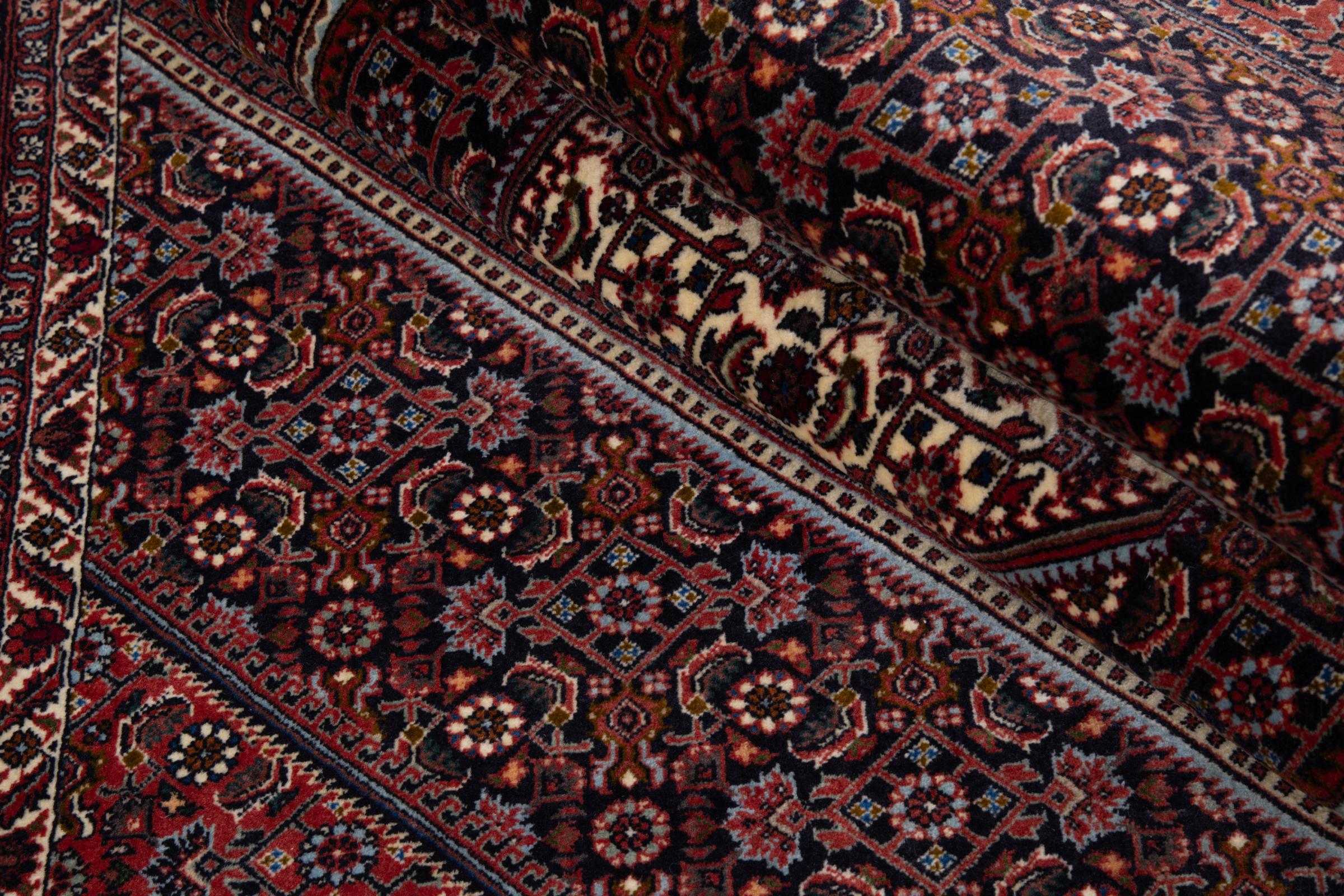 Ce tapis persan a été fabriqué dans une petite commune kurde à l’ouest de l’Iran. Les tapis Bidjar représentent la qualité. Son velours compact convainc de part sa densité importante et sa forte résistance. Vous pouvez en être certain : le tapis kurde est parfait. Et ce pour l’éternité.