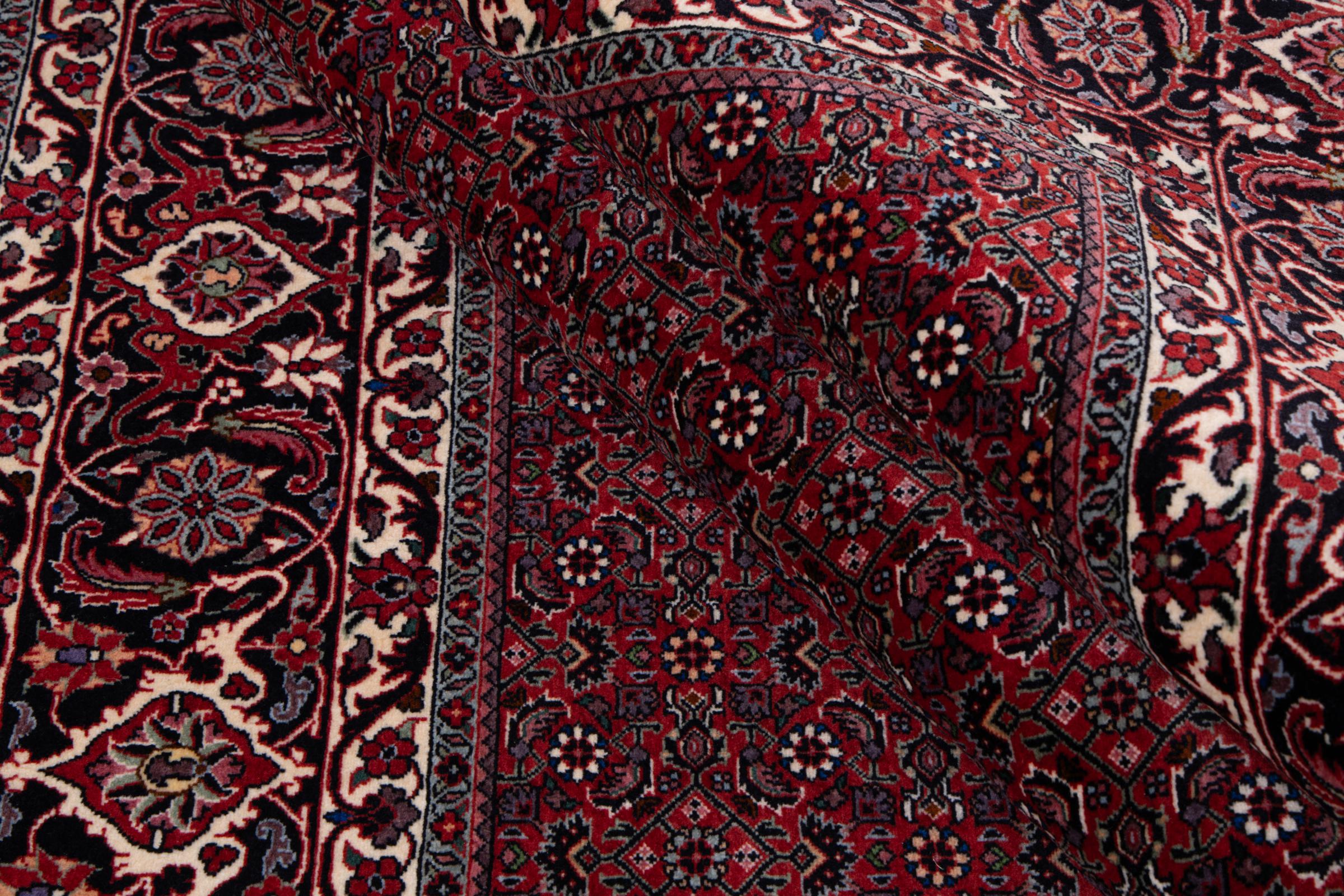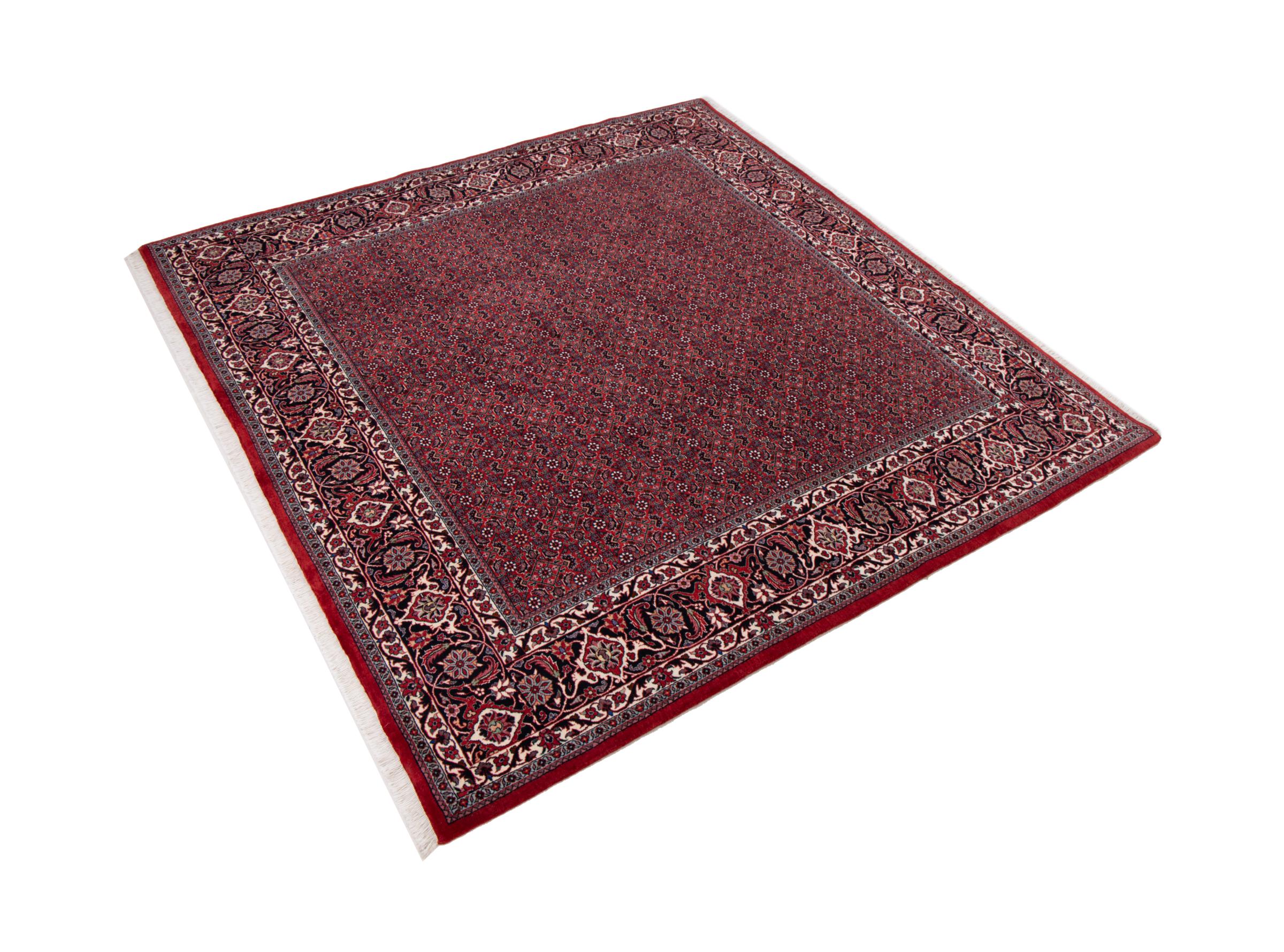 Ce tapis persan a été fabriqué dans une petite commune kurde à l’ouest de l’Iran. Les tapis Bidjar représentent la qualité. Son velours compact convainc de part sa densité importante et sa forte résistance. Vous pouvez en être certain : le tapis kurde est parfait. Et ce pour l’éternité.