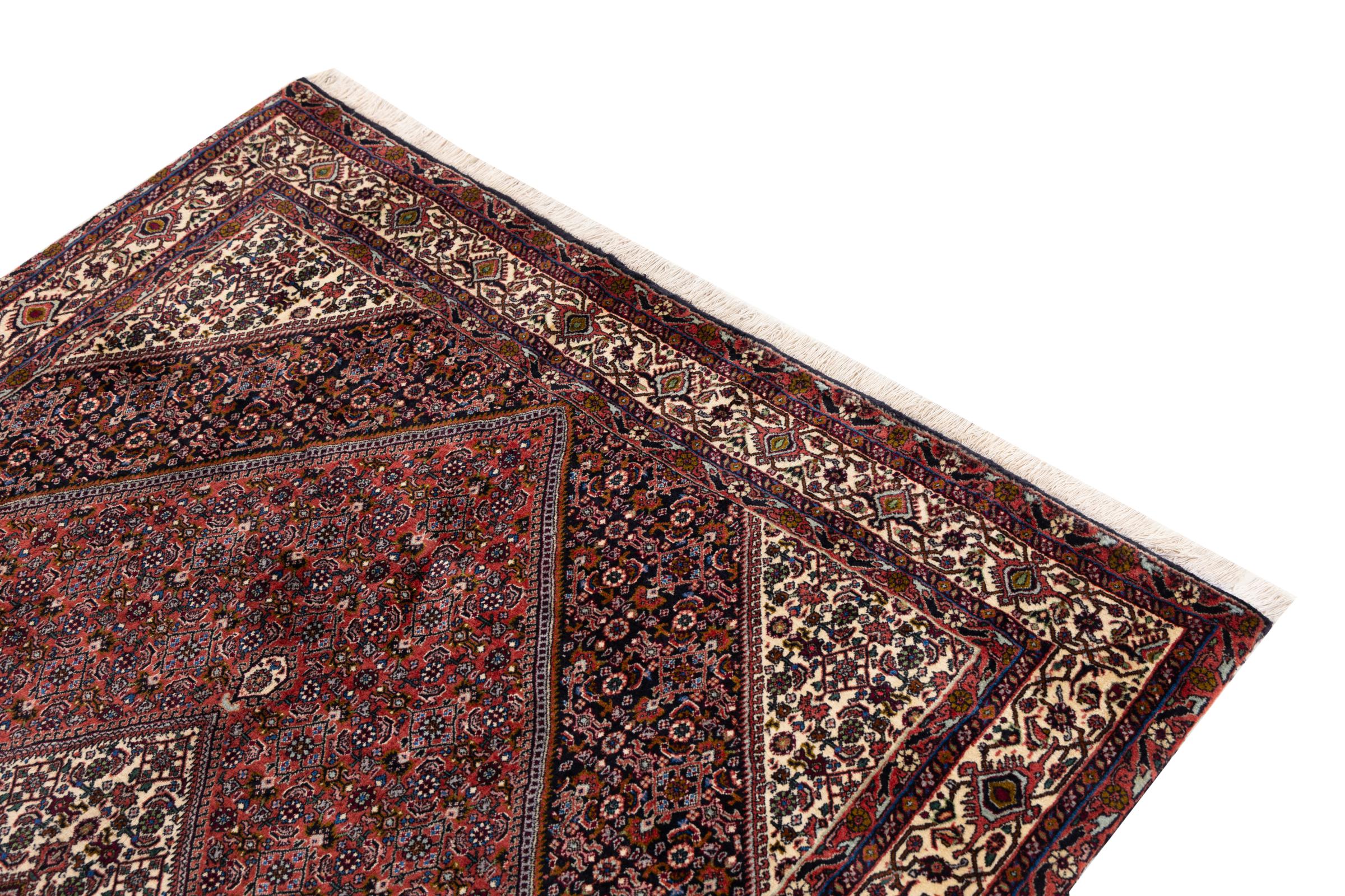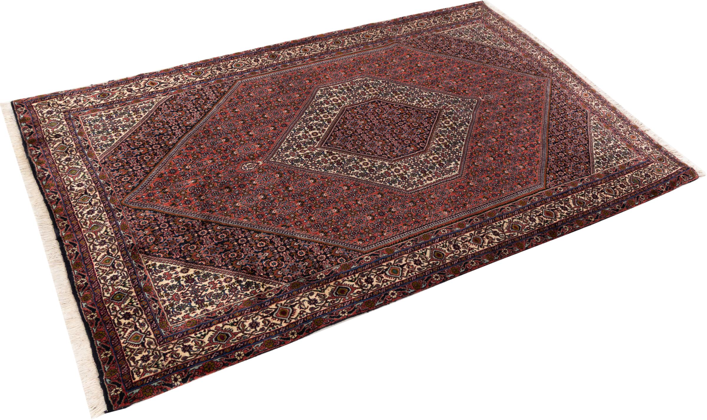 Ce tapis persan a été fabriqué dans une petite commune kurde à l’ouest de l’Iran. Les tapis Bidjar représentent la qualité. Son velours compact convainc de part sa densité importante et sa forte résistance. Vous pouvez en être certain : le tapis kurde est parfait. Et ce pour l’éternité.