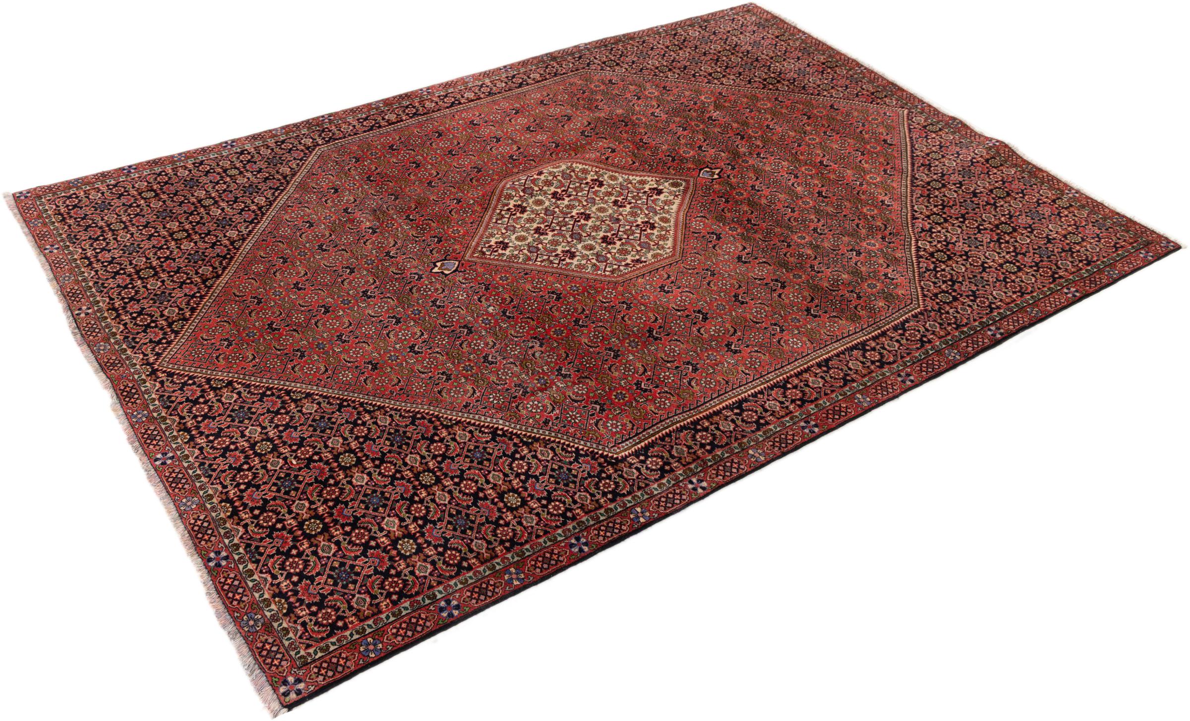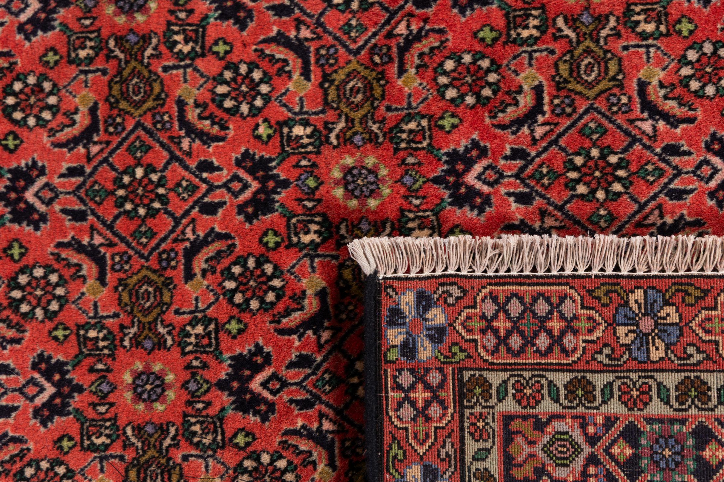 Ce tapis persan a été fabriqué dans une petite commune kurde à l’ouest de l’Iran. Les tapis Bidjar représentent la qualité. Son velours compact convainc de part sa densité importante et sa forte résistance. Vous pouvez en être certain : le tapis kurde est parfait. Et ce pour l’éternité.