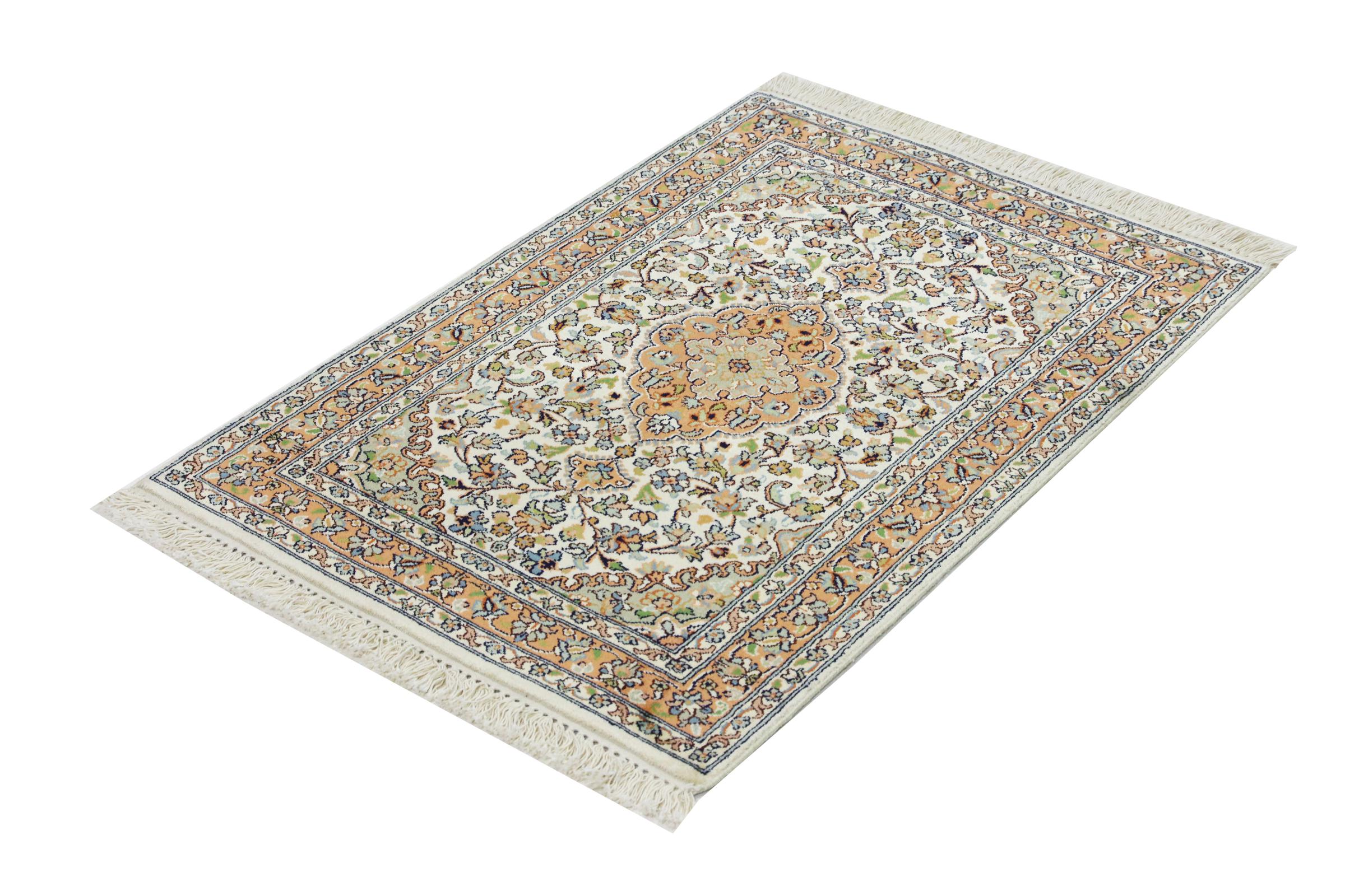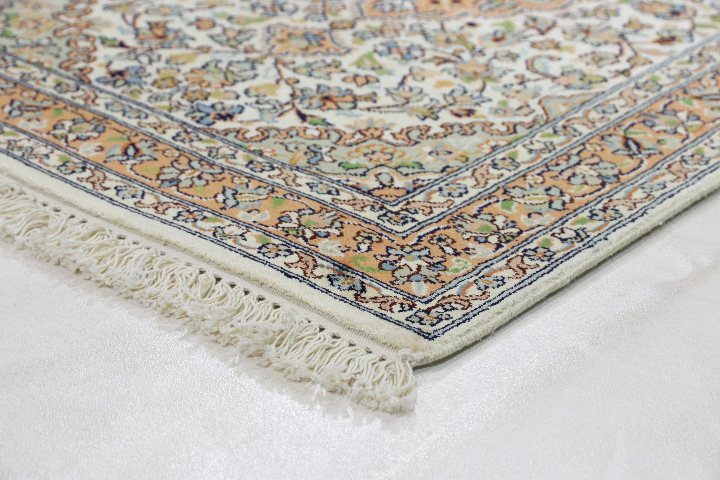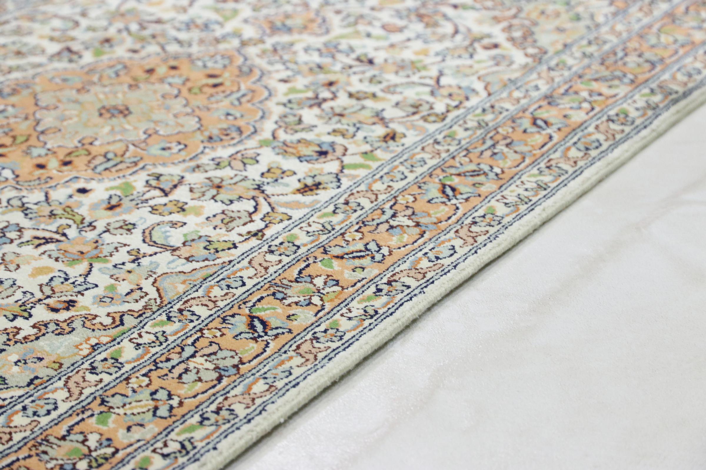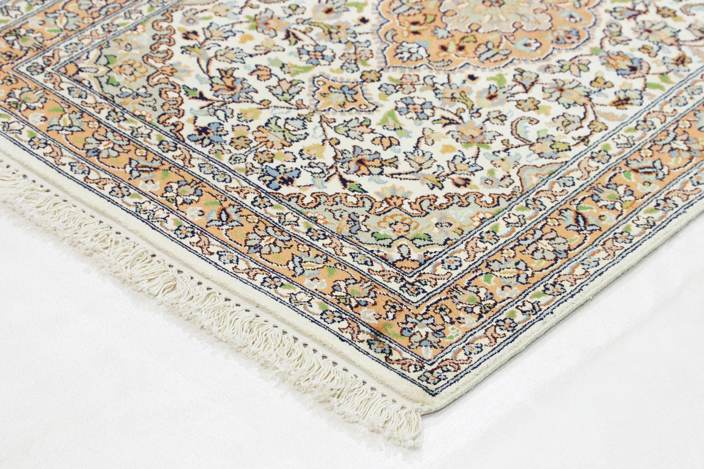 Ce splendide tapis de soie noué à la main originaire de Kashmir reflète le savoir-faire des noueurs de tapis indiens, qui utilisent les meilleurs matériaux pour former des motifs à couper le soufflé. Une pièce de luxe, juste pour vous.