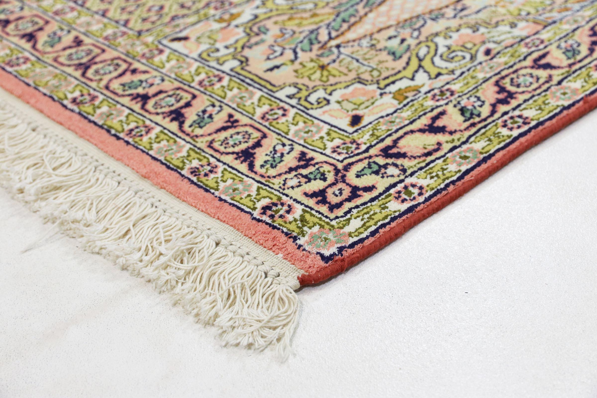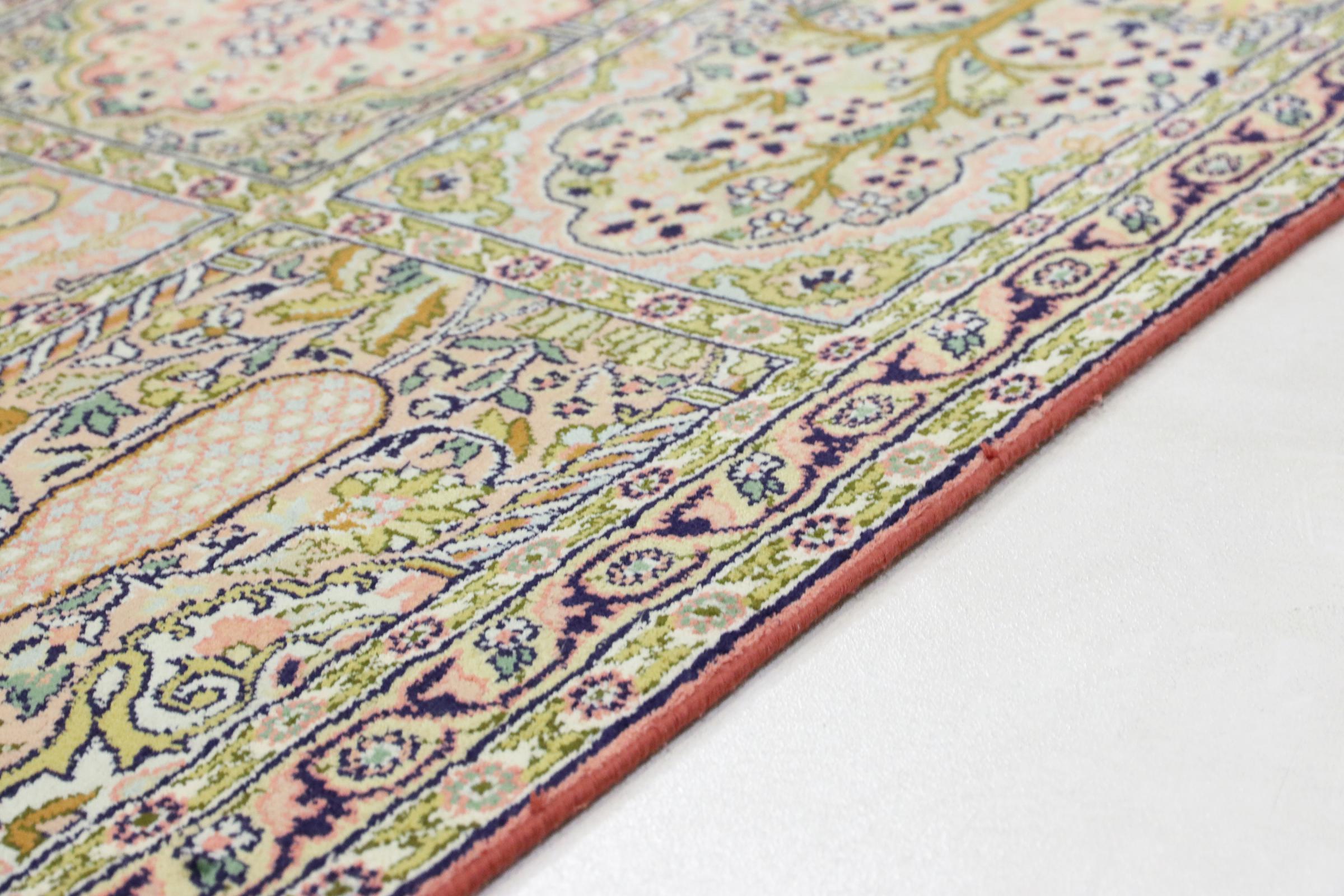 Ce splendide tapis de soie noué à la main originaire de Kashmir reflète le savoir-faire des noueurs de tapis indiens, qui utilisent les meilleurs matériaux pour former des motifs à couper le soufflé. Une pièce de luxe, juste pour vous.