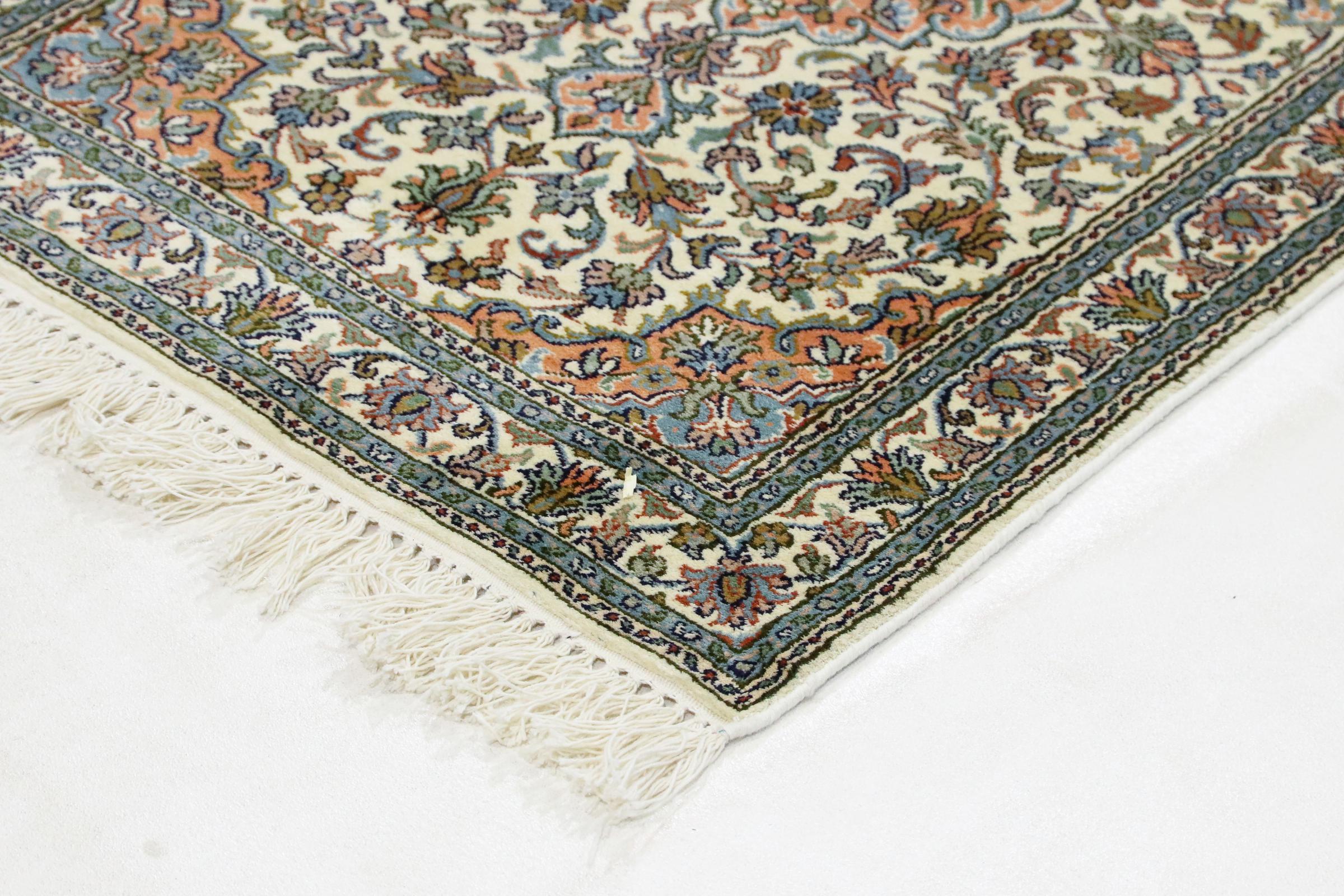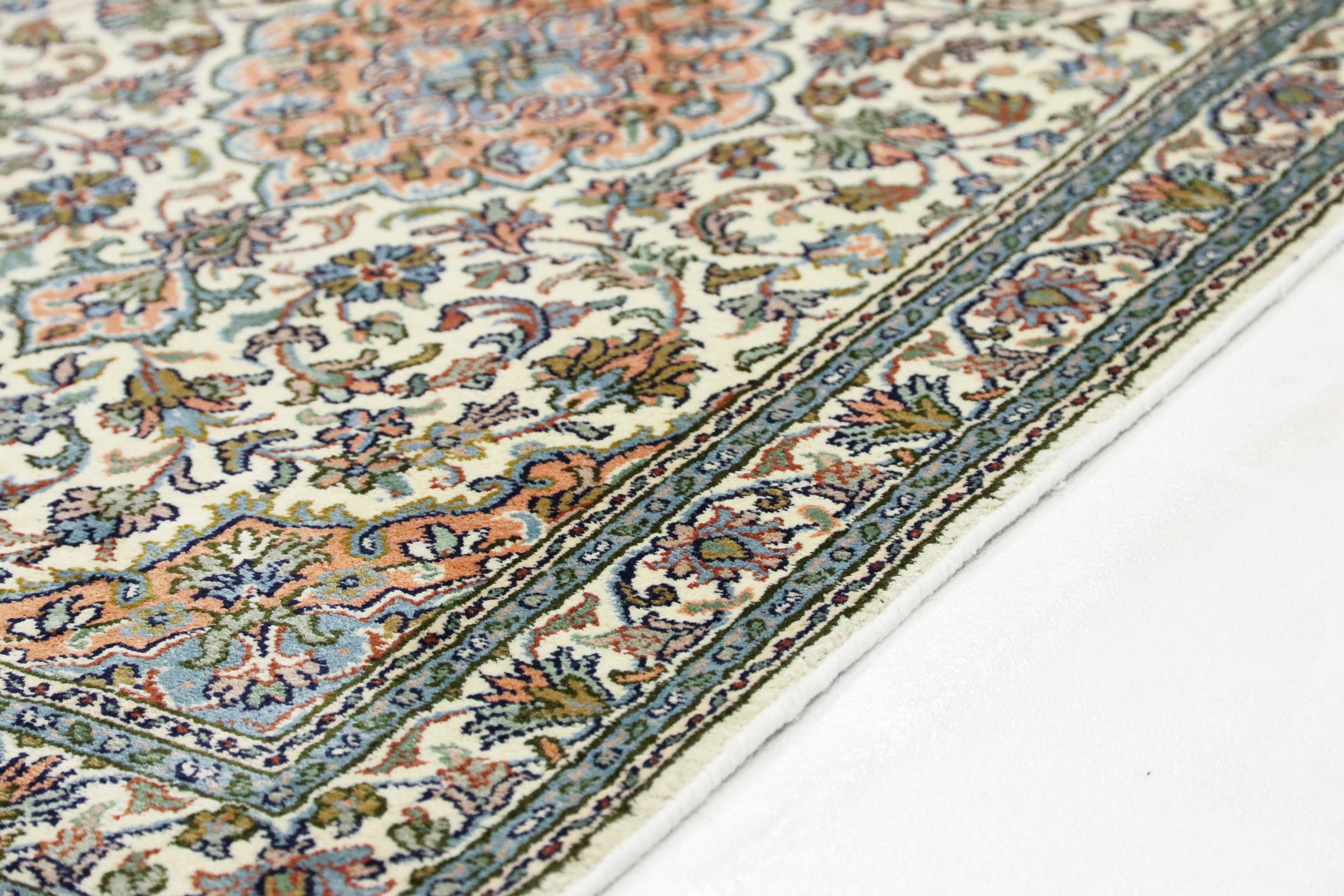 Les noueurs de tapis de l'ancienne Perse sont venus en Inde il y a des siècles pour exercer leur métier. Ainsi, l'Inde a aujourd'hui une tradition de nouage de tapis d'une grande portée. Les motifs et les ornements sont souvent basés sur les motifs bien connus des tapis persans. De nombreux tapis orientaux noués à la main viennent du nord du pays. Les tapis en soie du Cachemire, par exemple, proviennent de la région du Cachemire, qui est directement voisine du Pakistan.